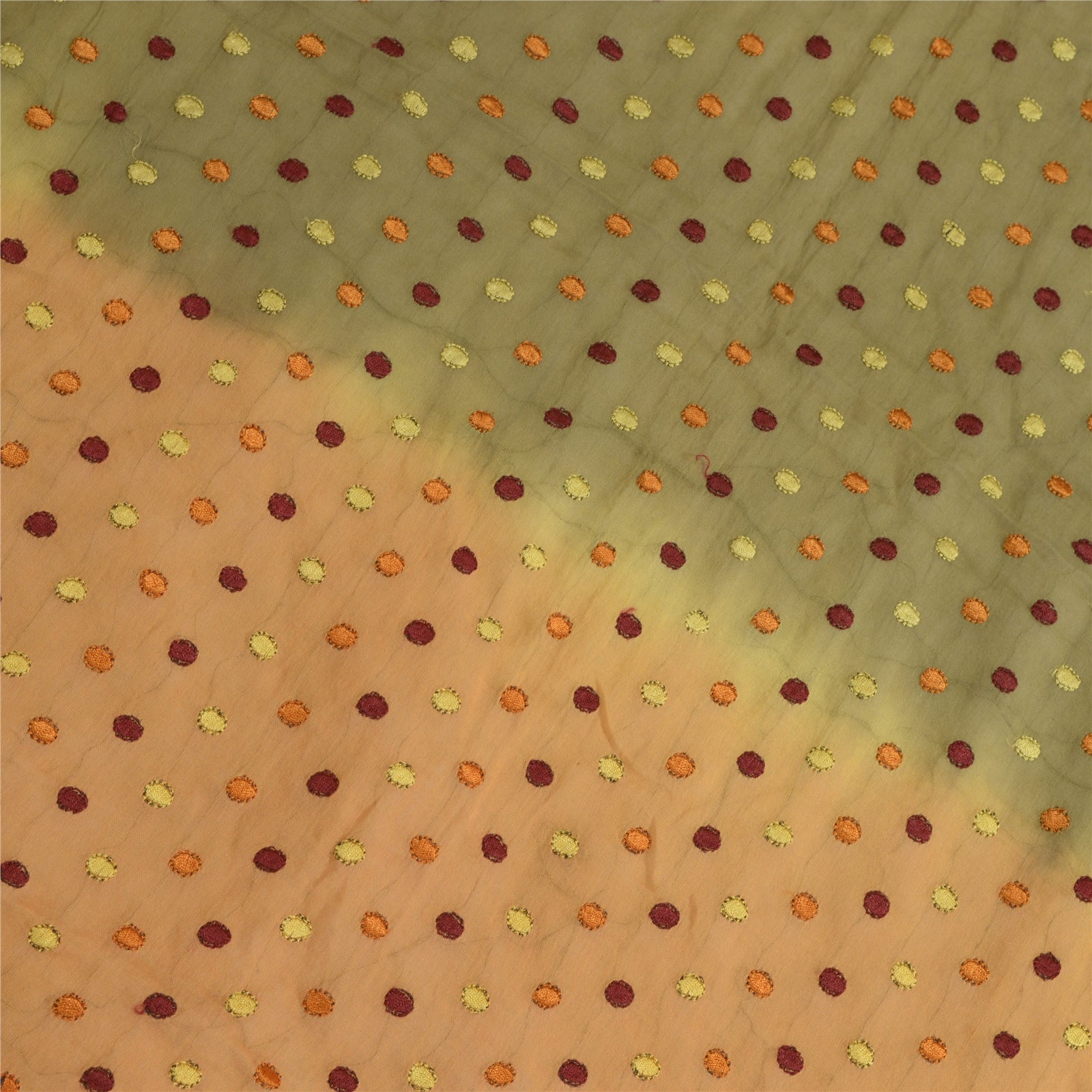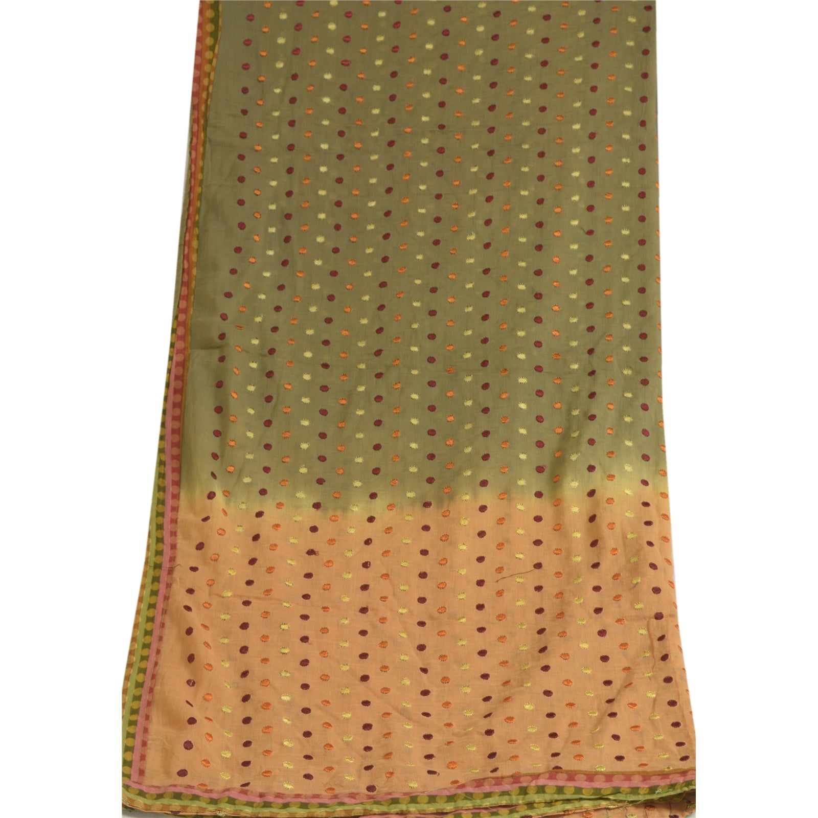 Sanskriti Vintage Dupatta Green/brown Long Stole Pure Cotton Embroidered Hijab