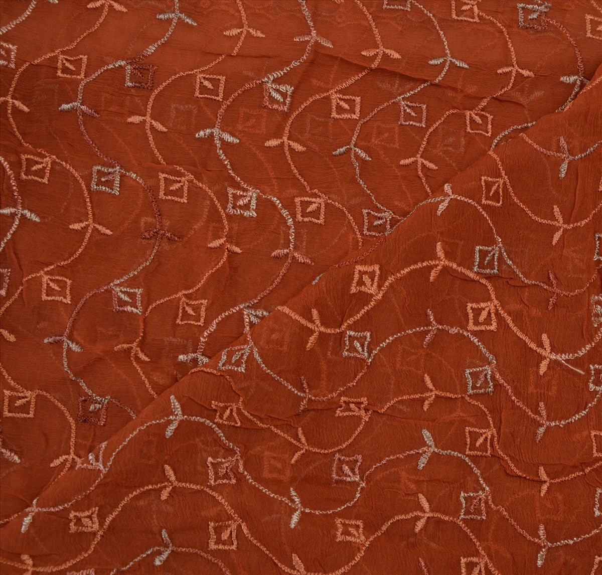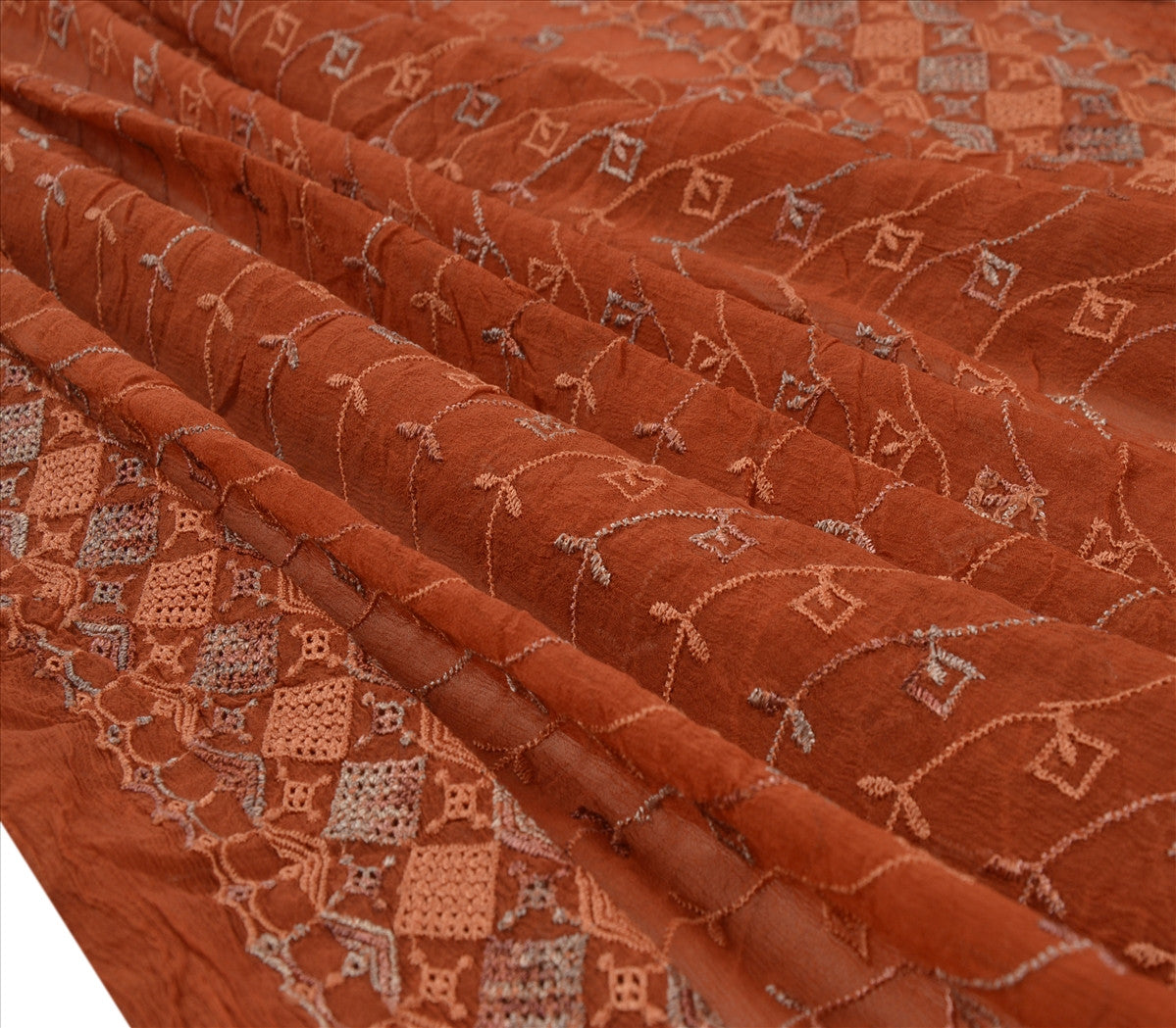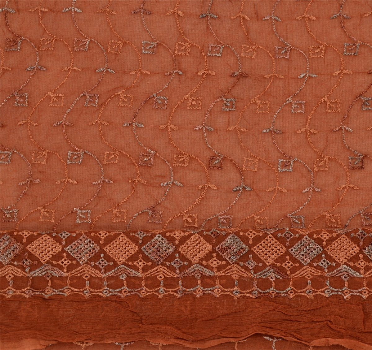 Sanskriti Vintage Dupatta Long Stole Chiffon Silk Brown Embroidered Wrap Hijab