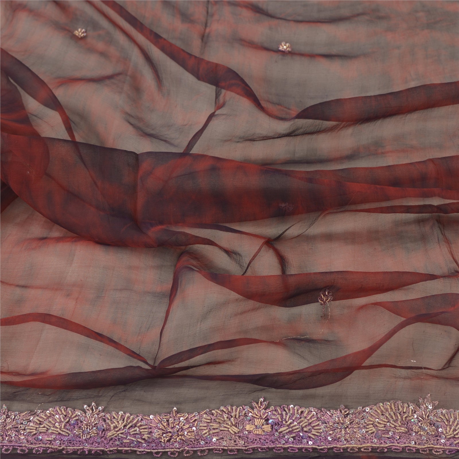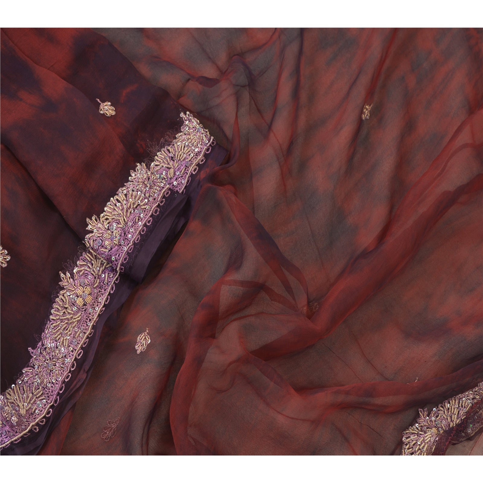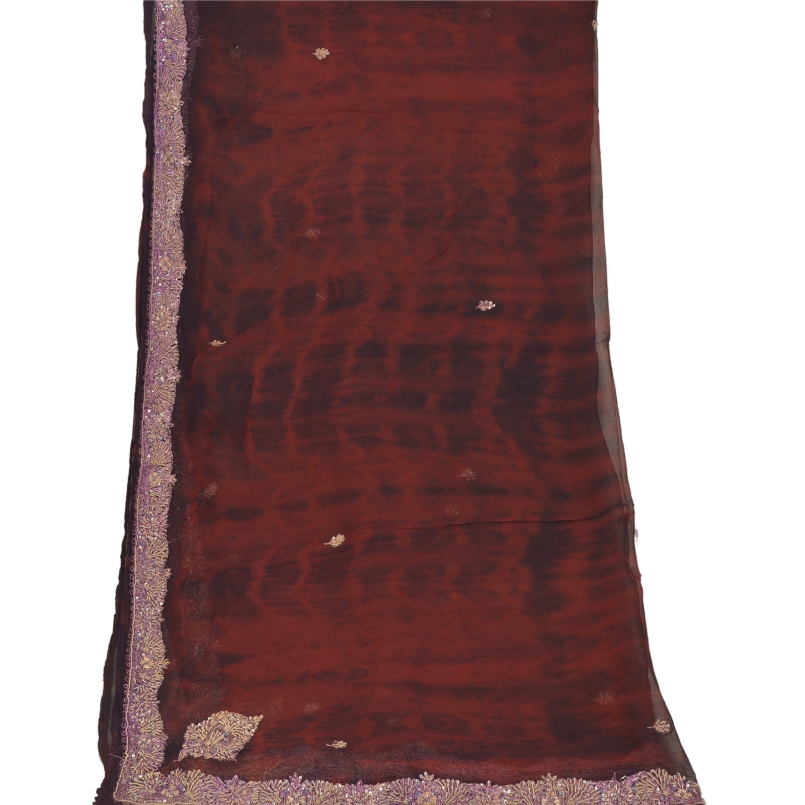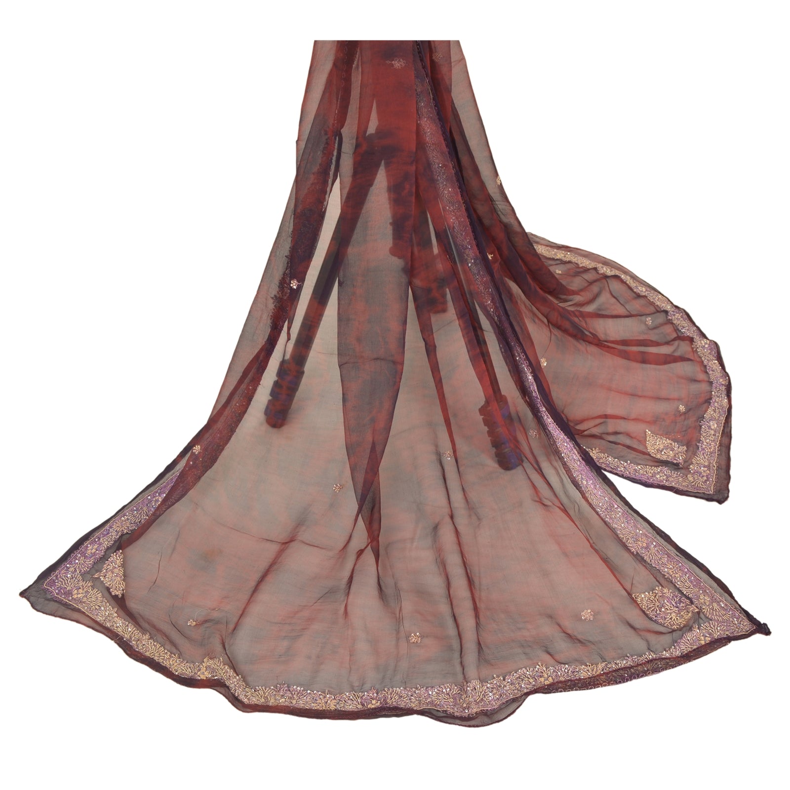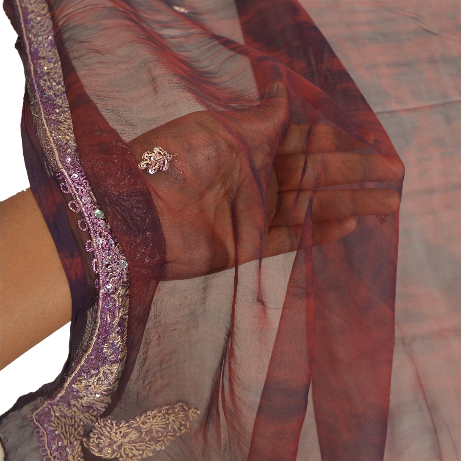 Beautiful Dark Red & Purple Colored 100% Pure Chiffon Silk Hand Embroidered Tie & Dye Long Scarf/Dupatta. Central part of dupatta has tie & dye work with sequins work. Border has floral design embroidered with golden/purple zari work, golden zardozi/dabka work embellished silver designing sequins work. A truly awesome dupatta.!!!! As the item is Vintage, some minor stains and defects are expected.