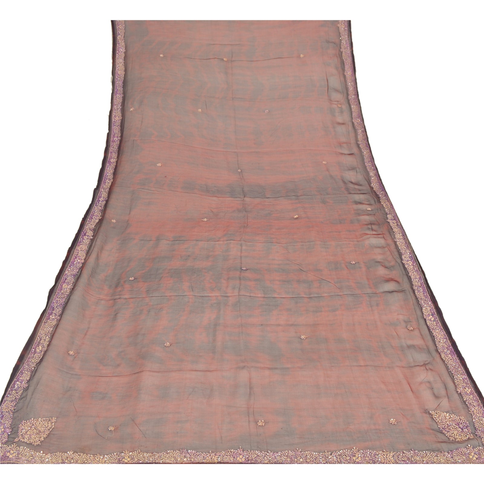 Sanskriti Vintage Dupatta Long Stole Pure Chiffon Silk Hand Beaded Tie- Dye Veil