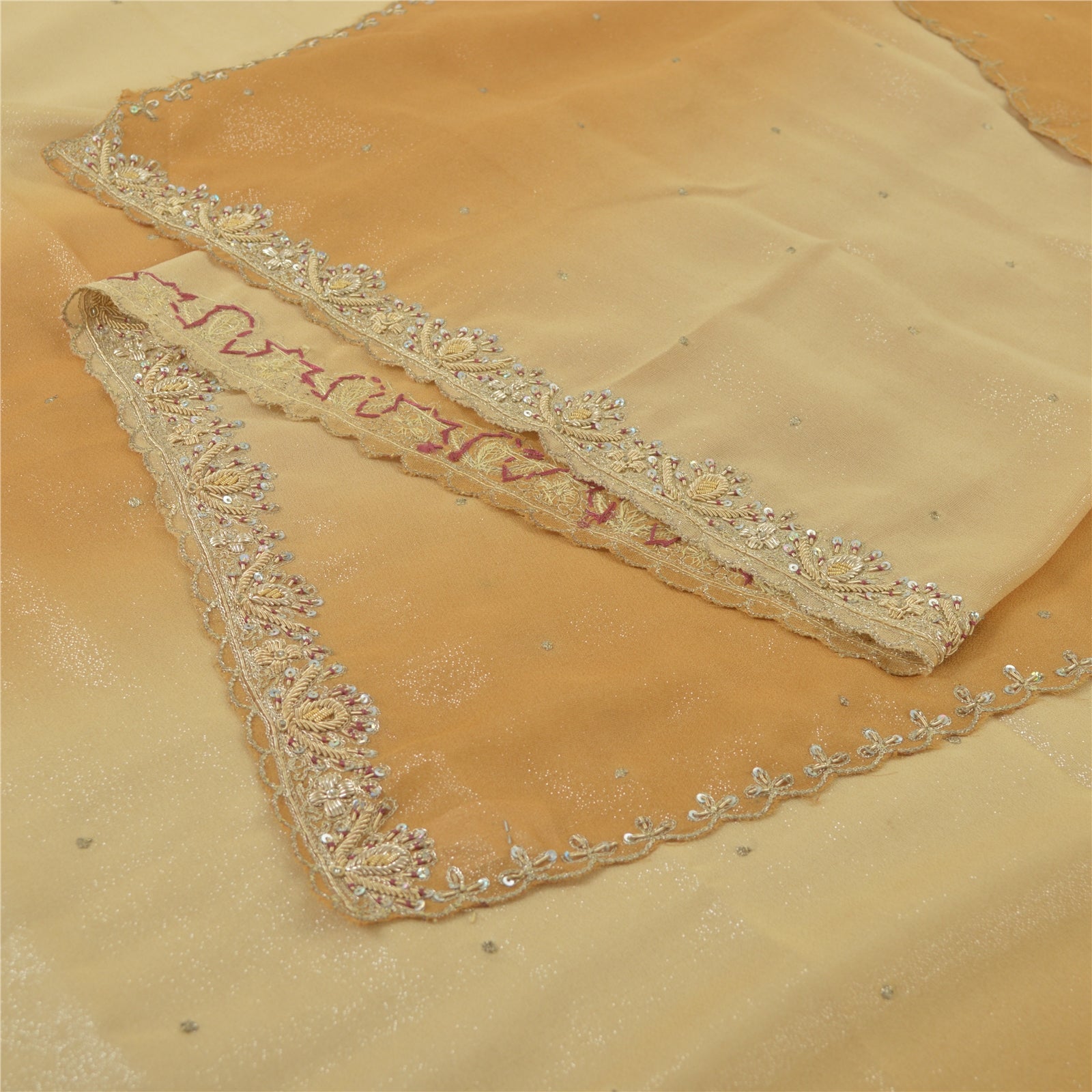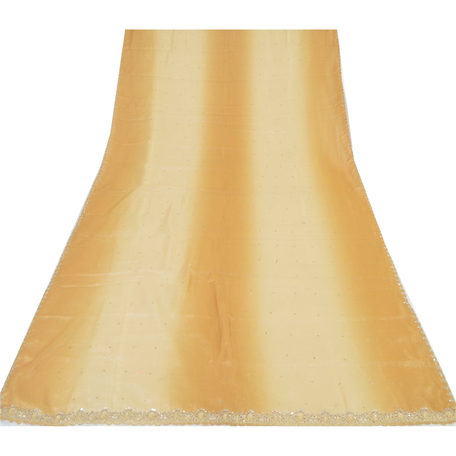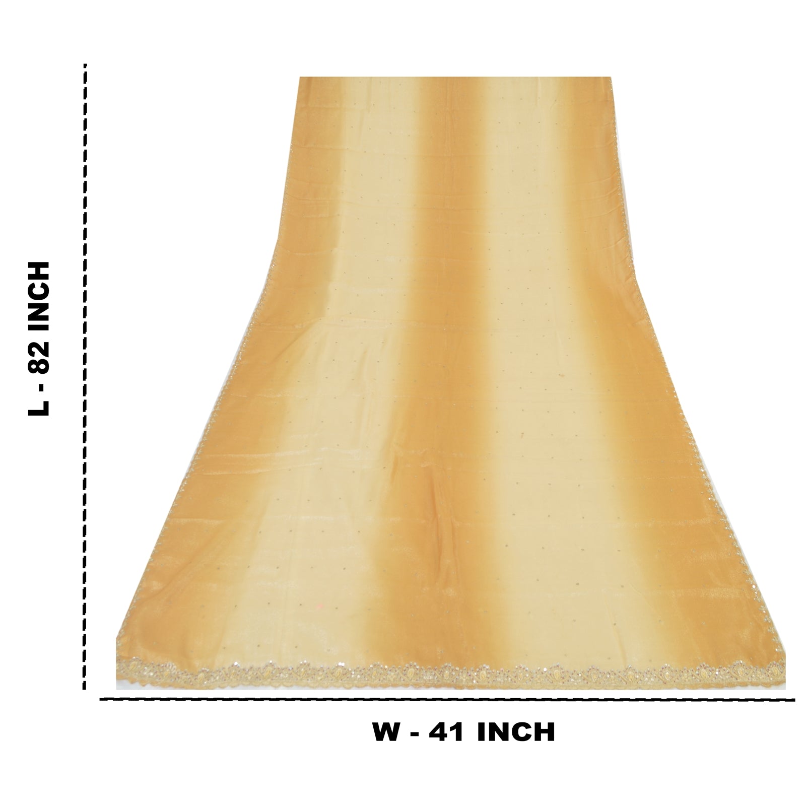 Sanskriti Vintage Golden & Cream Dupatta Long Stole Art Silk Hand Bead Wrap Veil