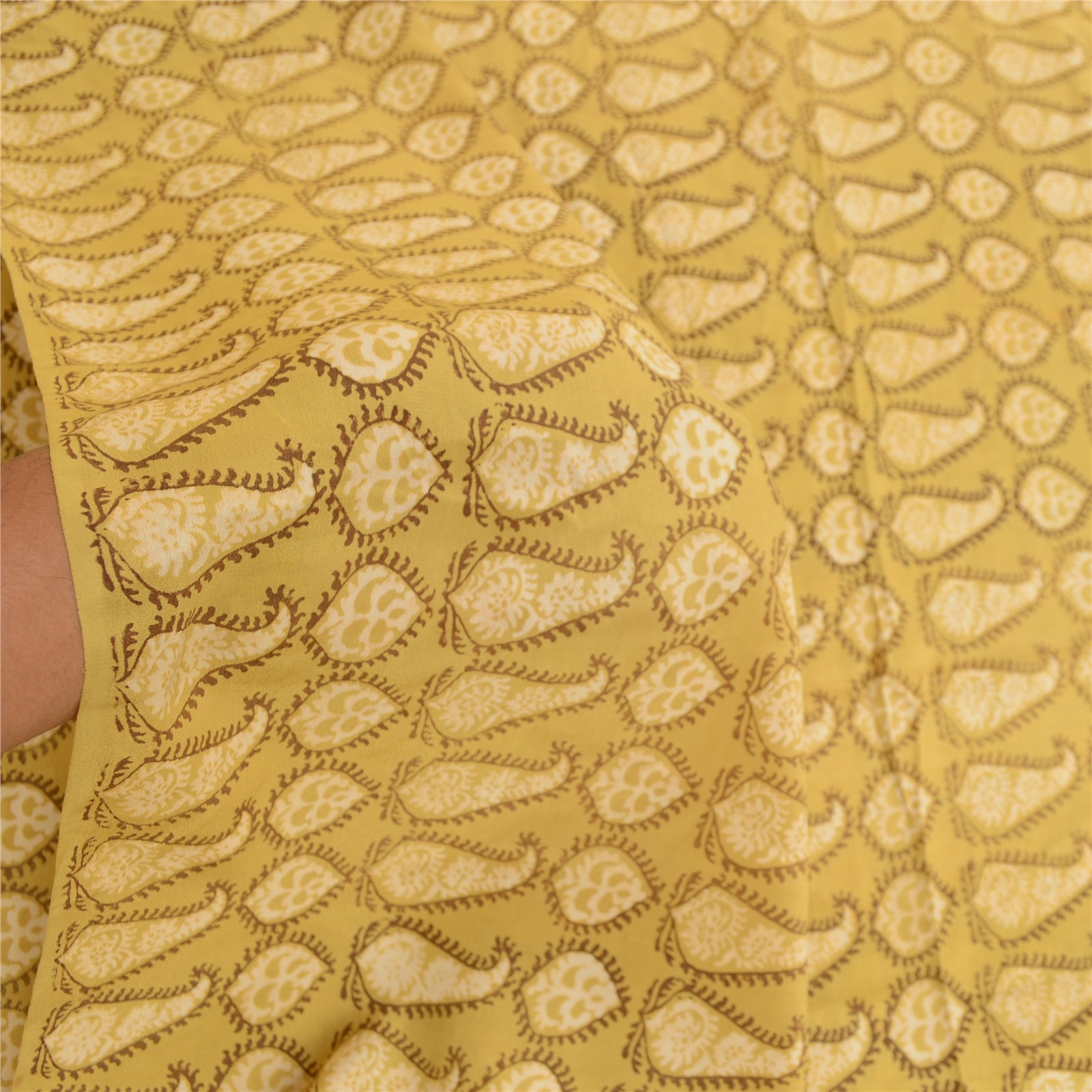 Sanskriti Vintage Green From India Printed Sarees Pure Crepe Silk Sari Sustainable Fabric