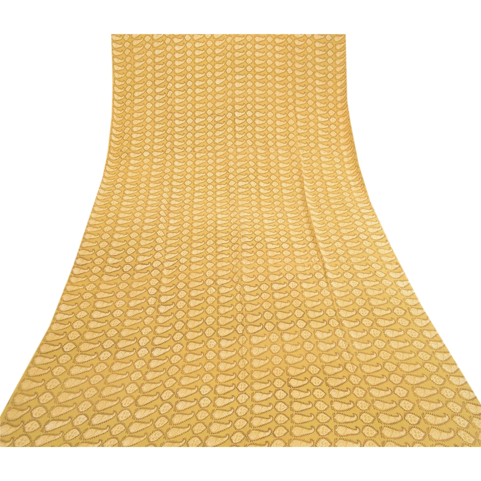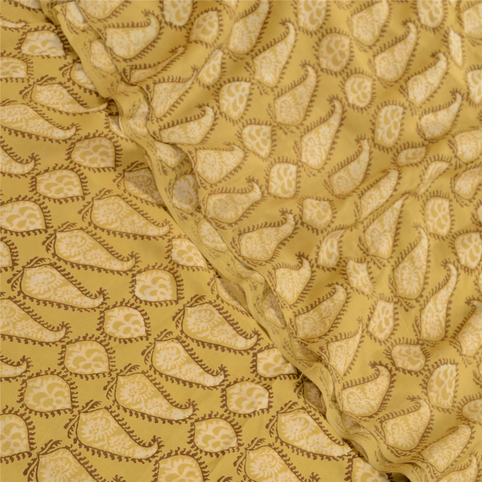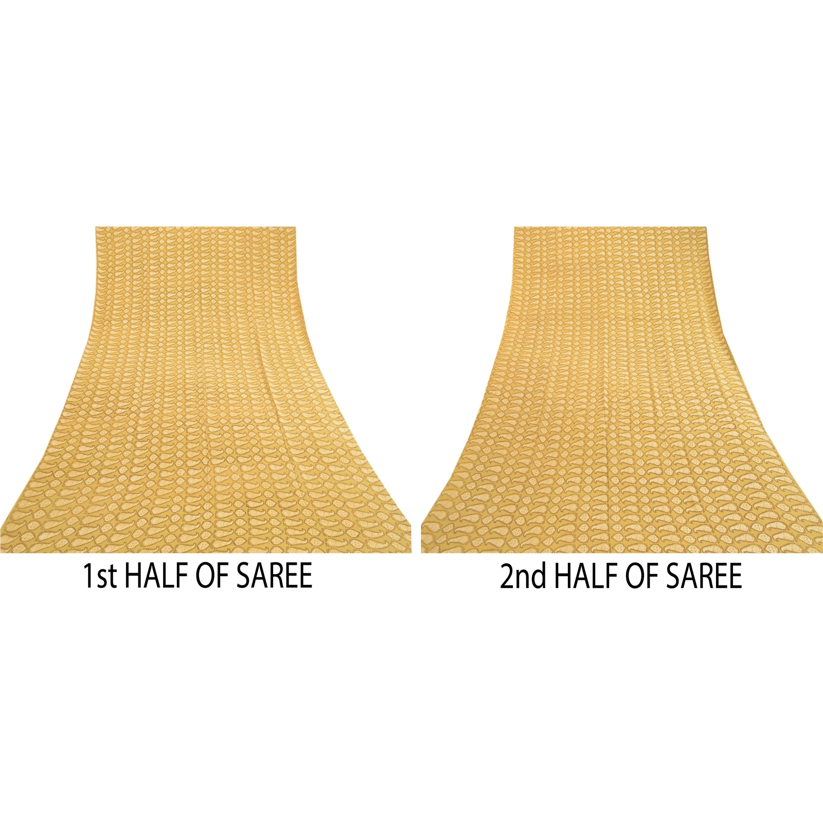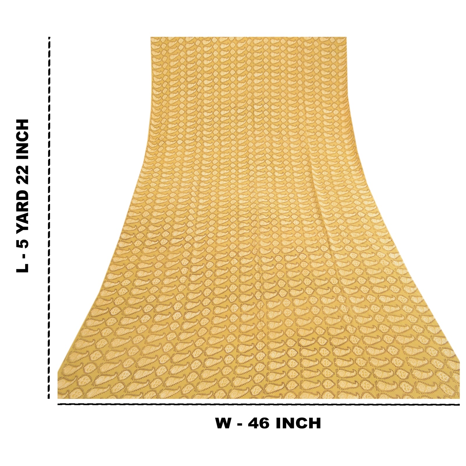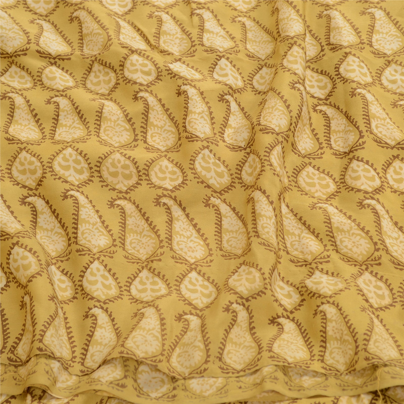Beautiful green colored pure crepe silk printed saree. Allover sari has printed floral & paisley design. What is special about this saree? Fabulous design is really enhancing the beauty of the saree.This unique vintage saree can be used for various crafting ideas even if you don't want to use it as a sari. Design a dress, use it as window,dressing, upholstery, sarongs, throw, dress making and table linen much more. Let your creative juices flow and use this decorated Sustainable Fabric in multiple fashion.