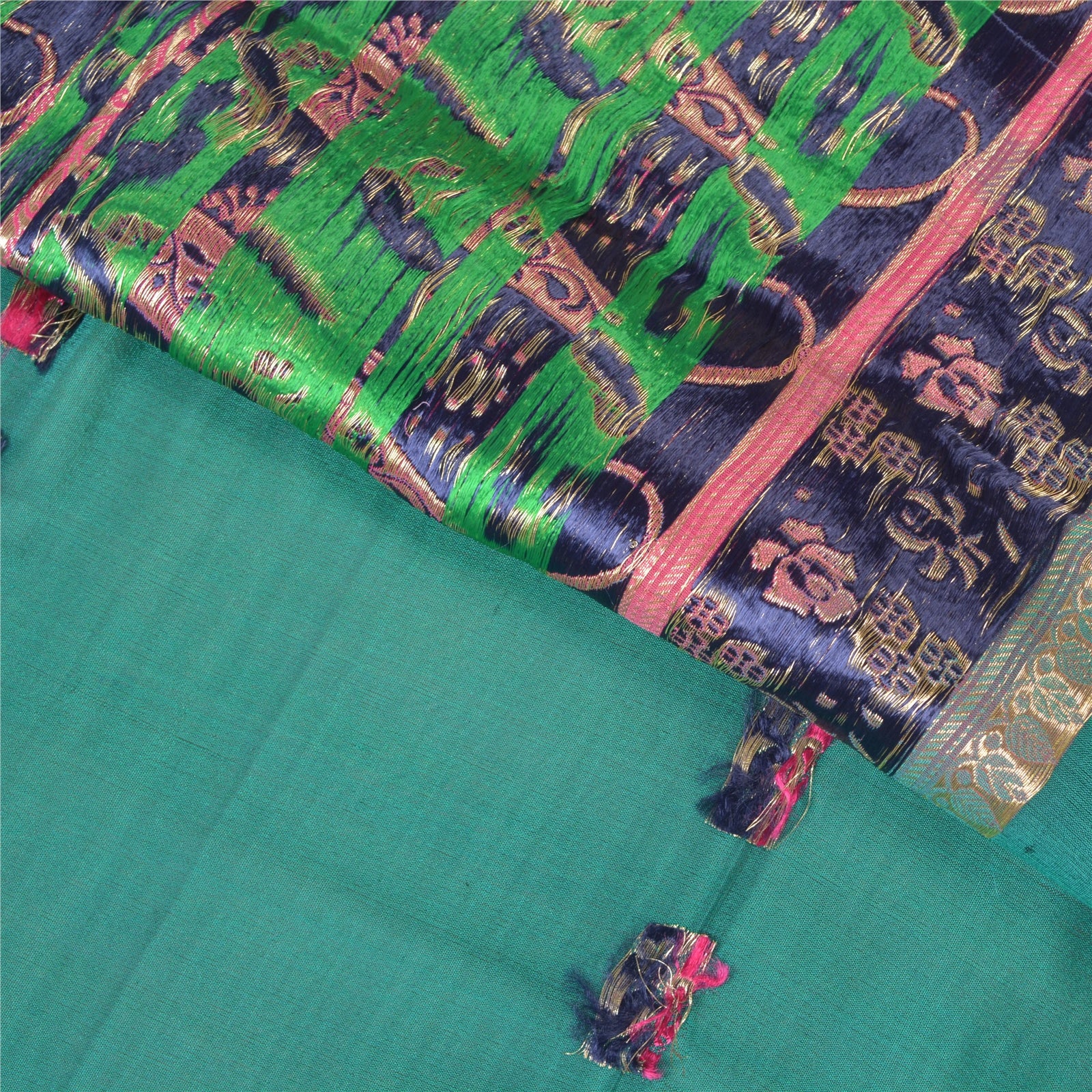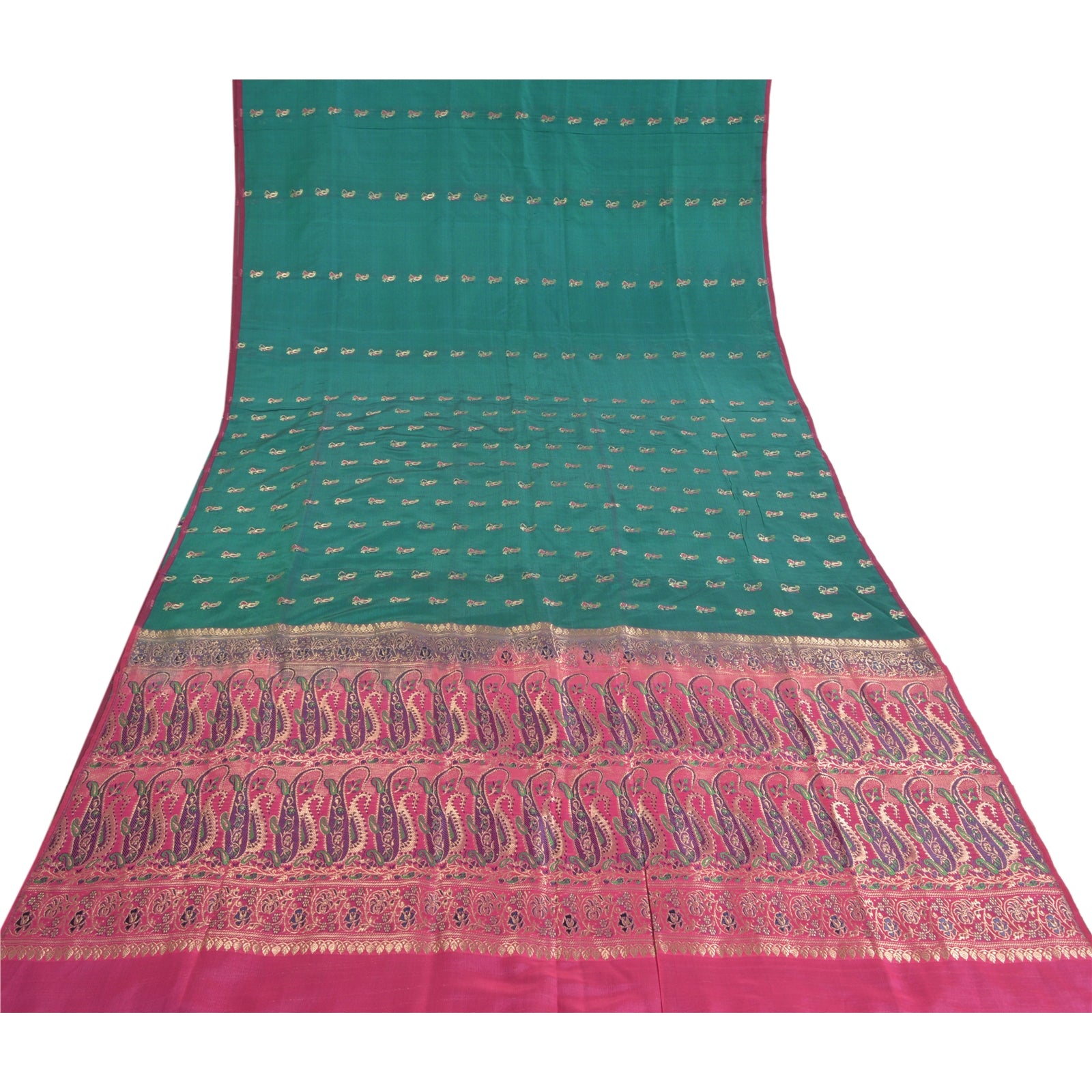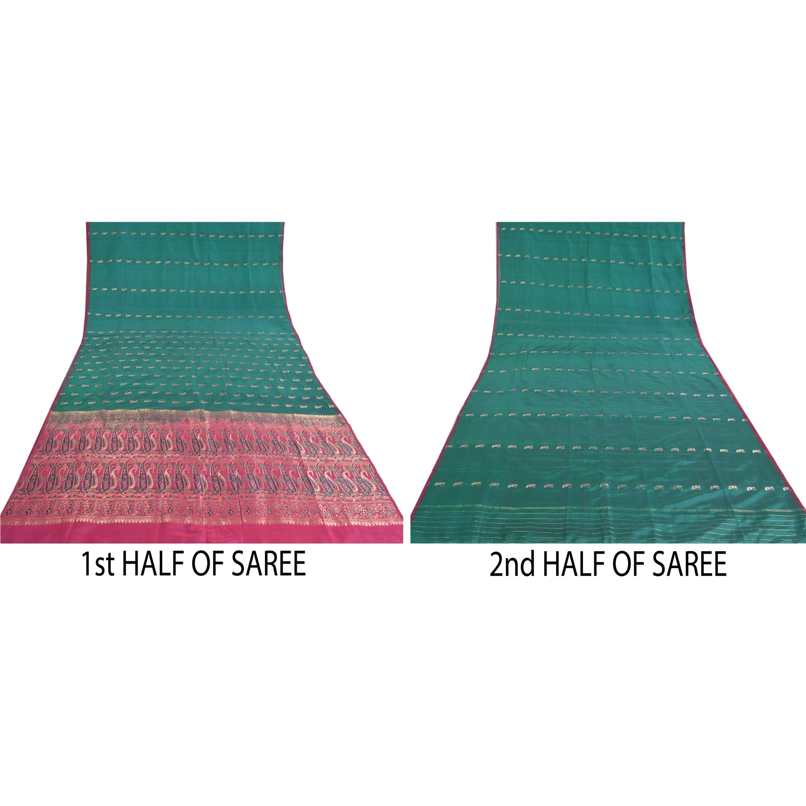 Sanskriti Vintage Green Heavy Wedding Sarees Pure Silk Woven Brocade Sari Sustainable Fabric