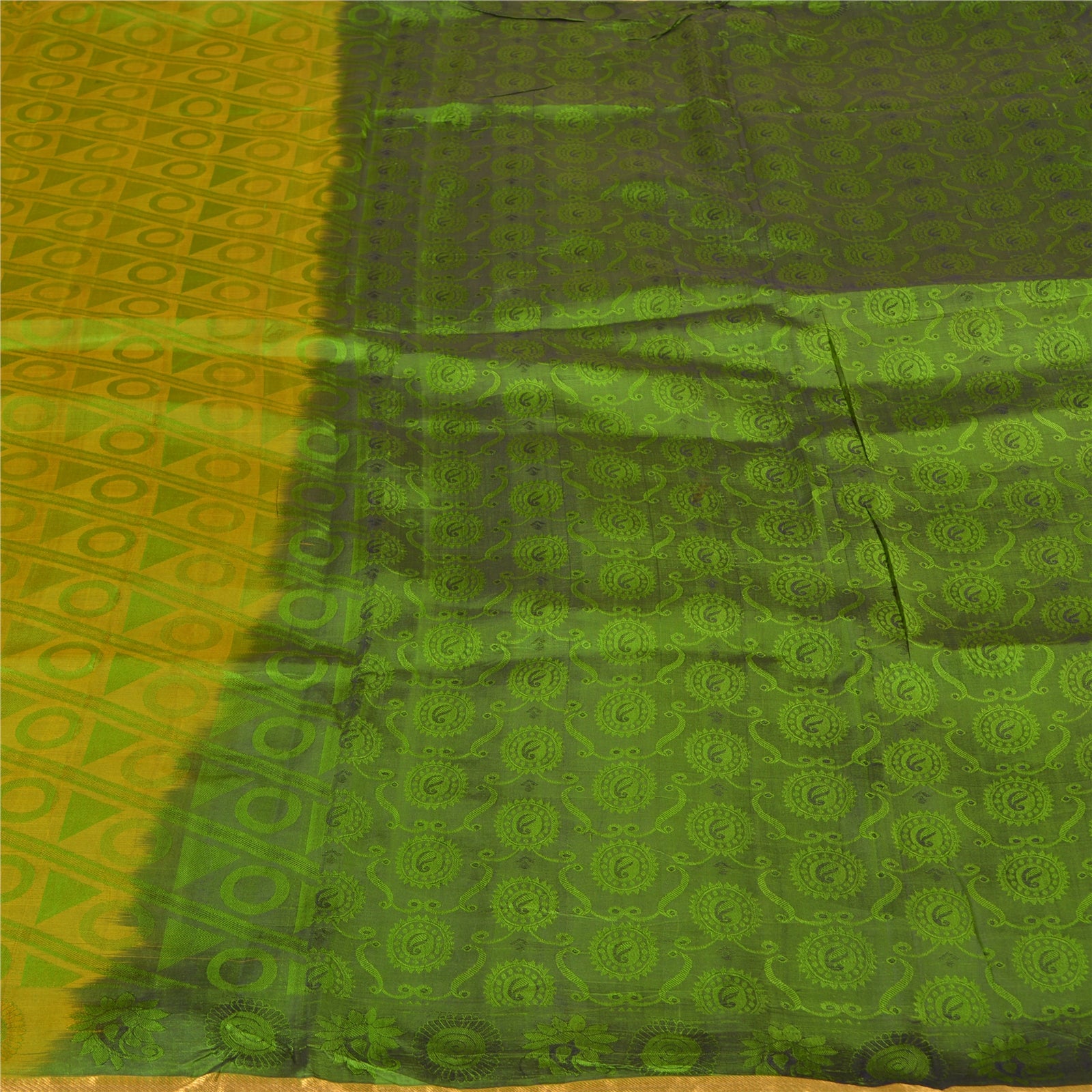 Sanskriti Vintage Green Indian Sarees 100% Pure Silk Woven Special Sari Fabric