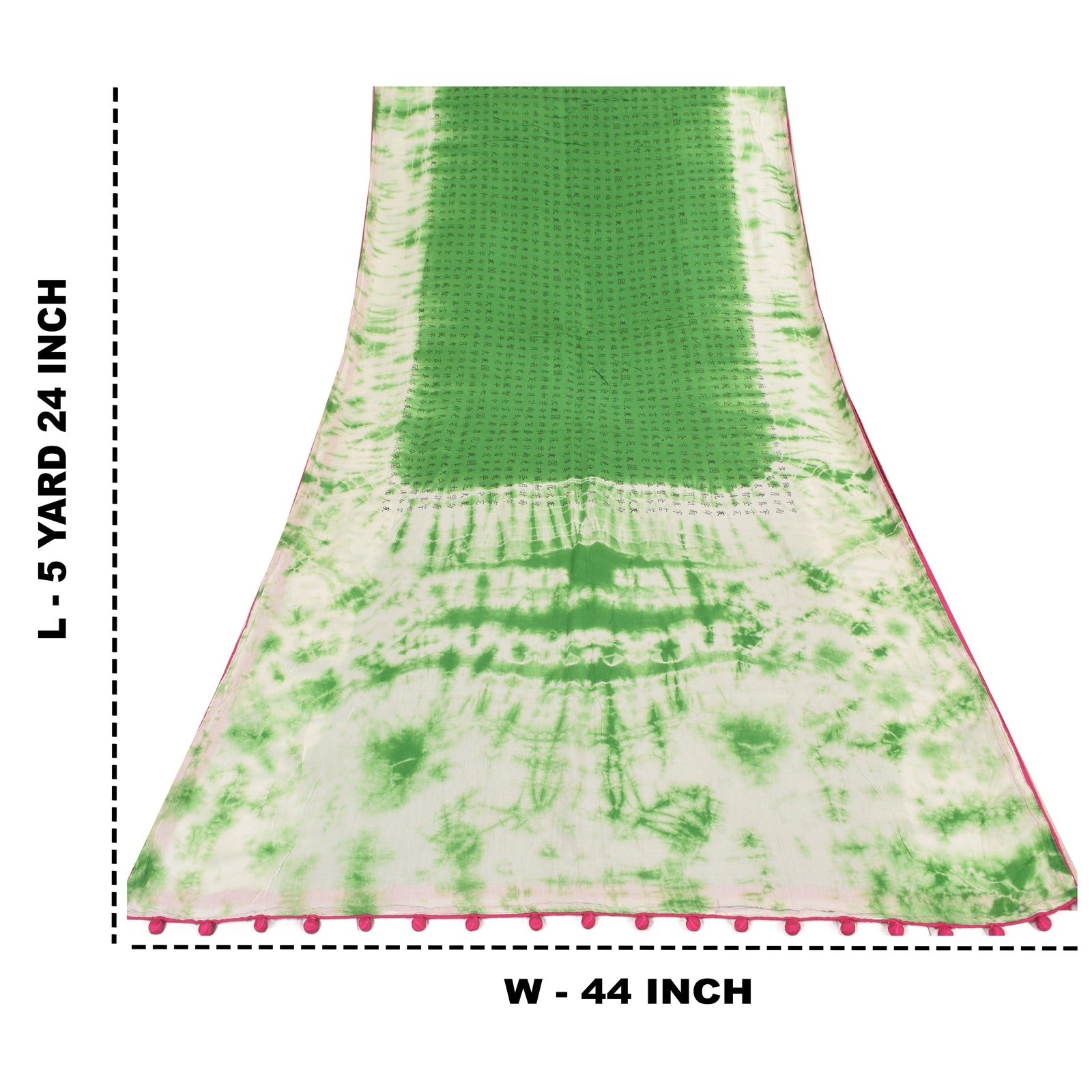 THE ITEM COLOR OR SHADE MAY BE DARKER OR LIGHTER THAN THE PICTURE.' An Awesome Sari In 100% Pure Cotton Green/Ivory Colored Tie & dye Printed Sari/Sustainable Fabric. Pallu & Border Features korean words design embellished with black color printed work. You Can See Center Portion Of The Sari Has Similar Printed Work This unique vintage saree can be used for various crafting ideas for example design a dress, use it as a throw, as window dressing, upholstery, table linen and much more. Let your creative juices flow and use this decorated Sustainable Fabric in multiple fashion Shipping note: International buyers please note: Import duties, taxes, and charges are not included in the item price or postage cost. These charges are the buyer's responsibility. Please check with your country's customs office to determine what these additional costs will be prior to bidding or buying. Buyer will pay custom duty/tax. It is calculated and charged differently by every country. As a seller I do not have any control over it. VAT or sales tax is calculated by the platform at the time of checkout. Customs charge is payable at the time of delivery. SKU: PS-64164