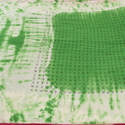 Sanskriti Vintage Green/Ivory Sarees Pure Cotton Tie & Dye Printed Sari Sustainable Fabric