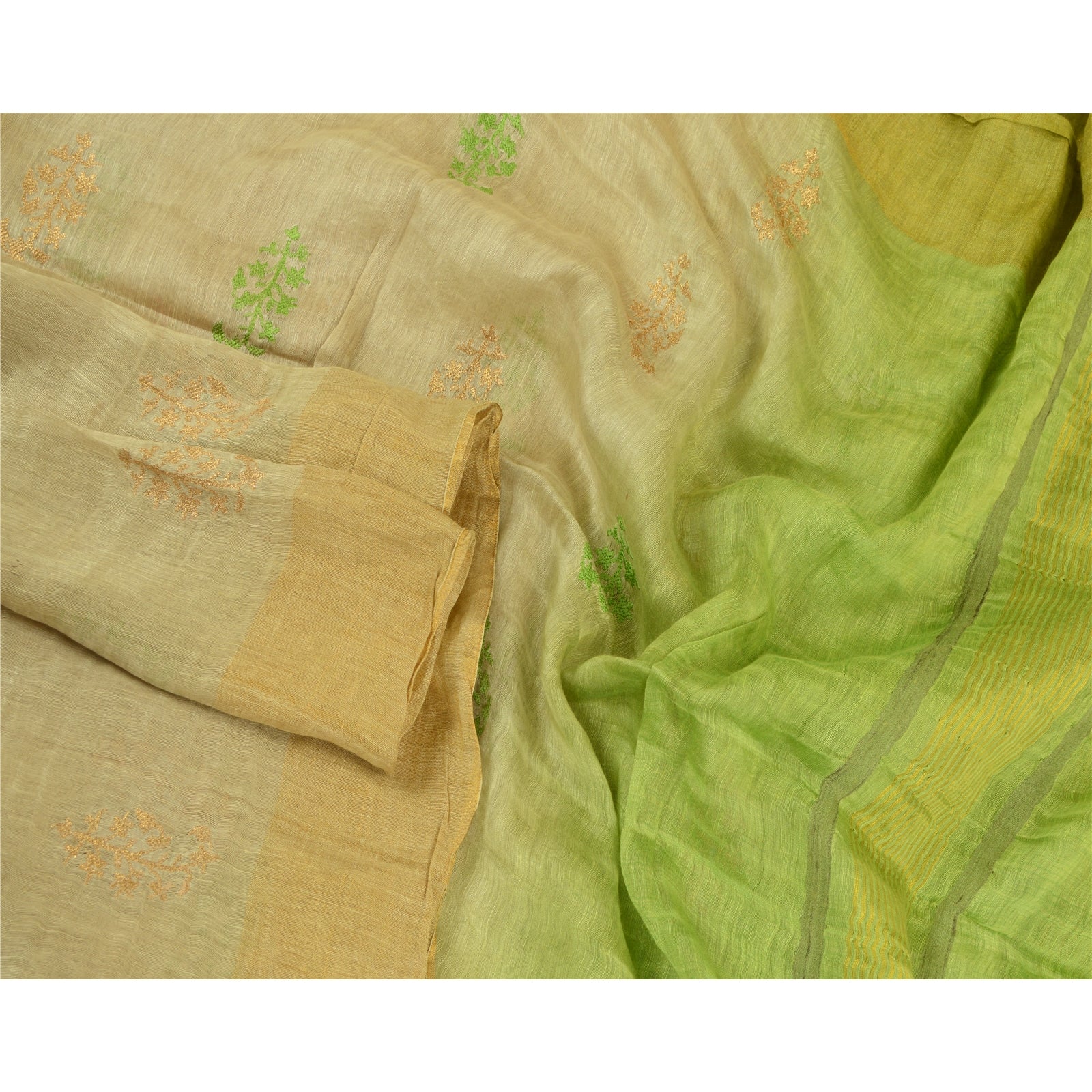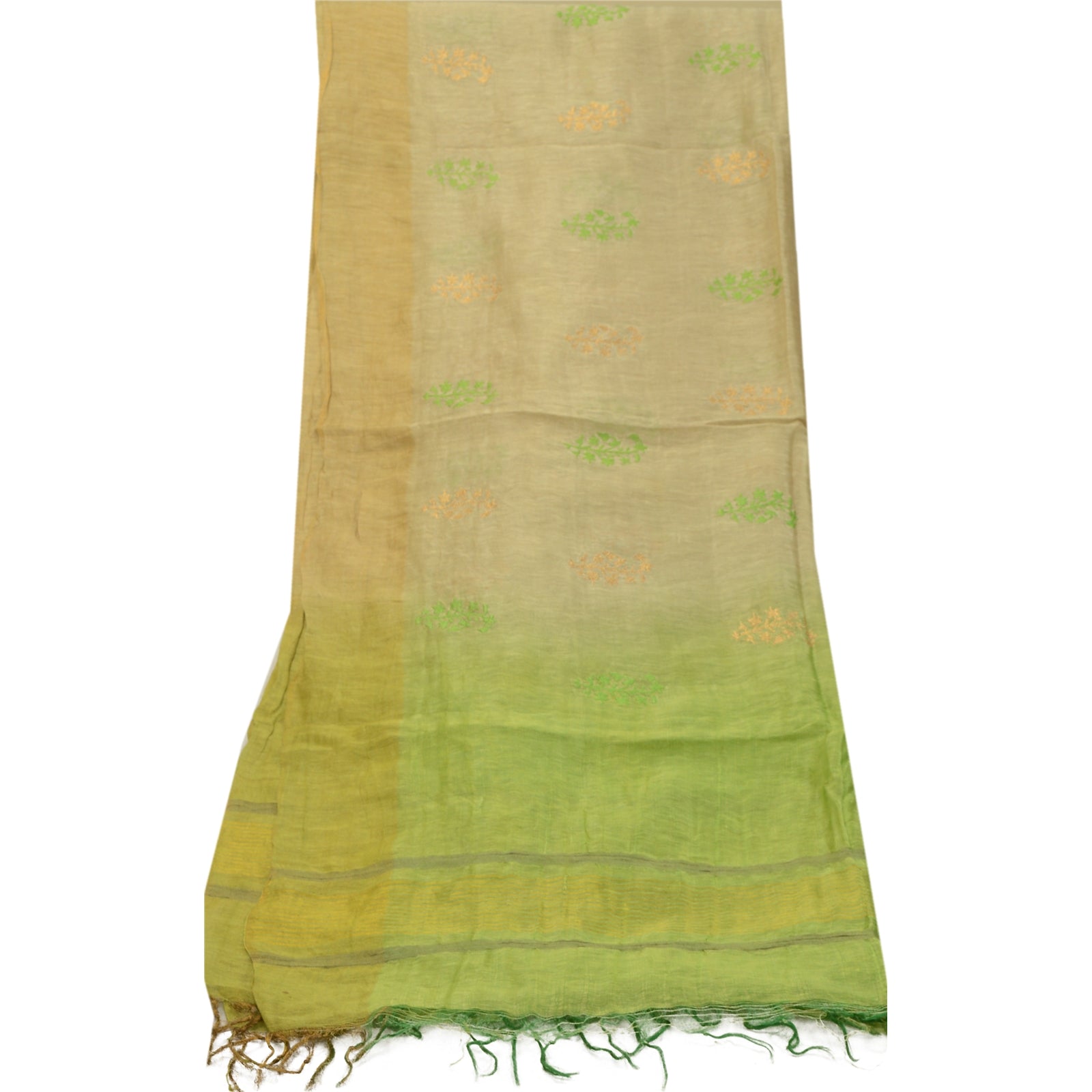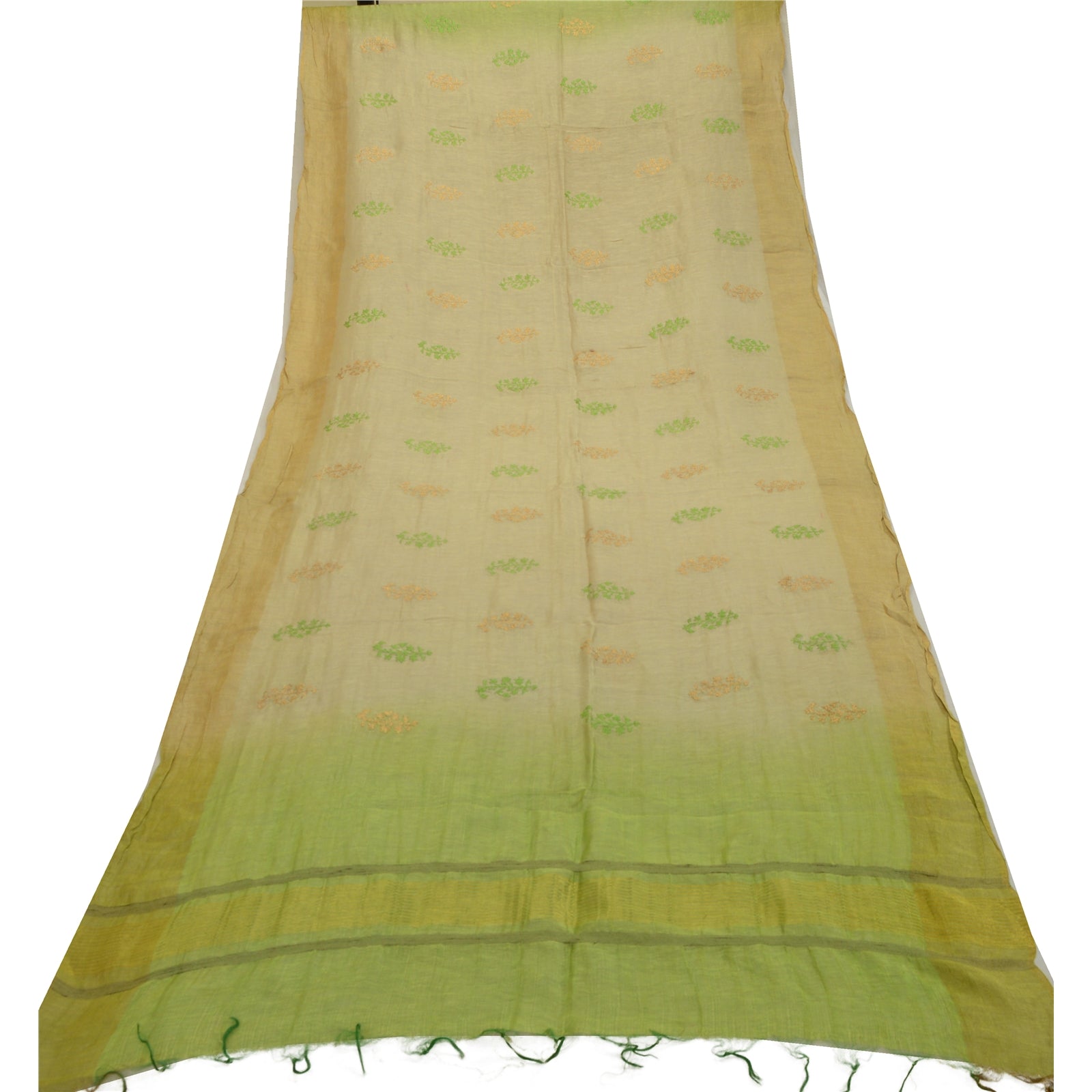 Sanskriti Vintage Green Long Dupatta Stole Pure Silk Embroidered Woven Hijab
