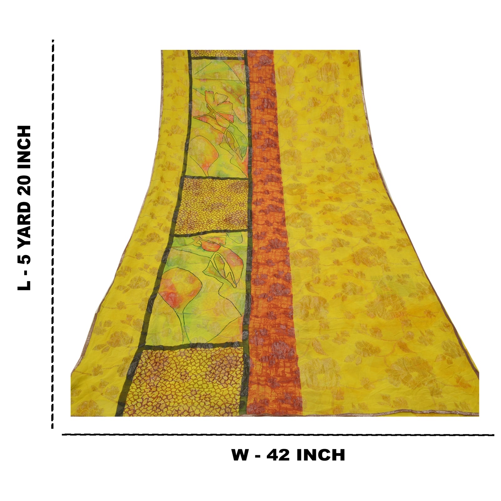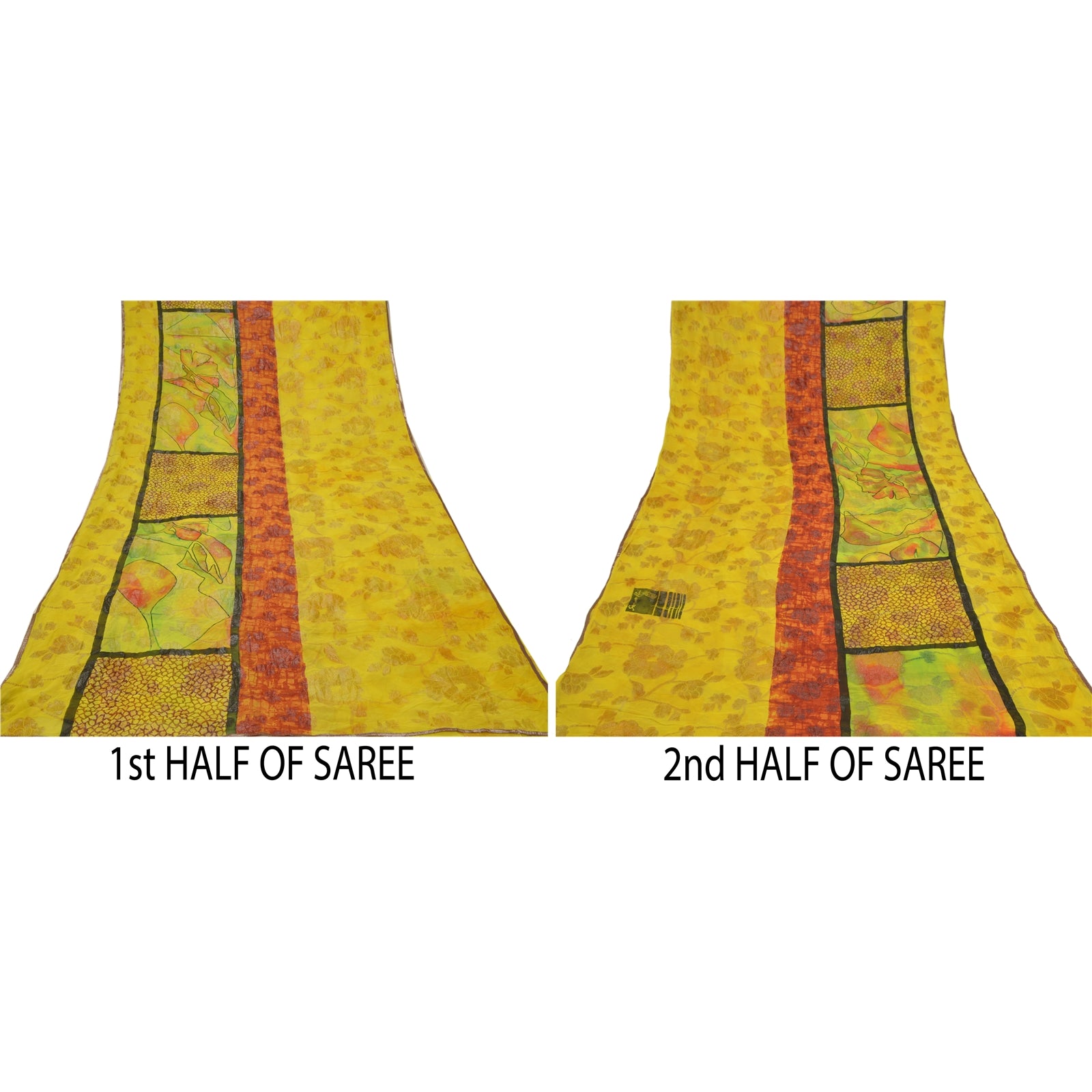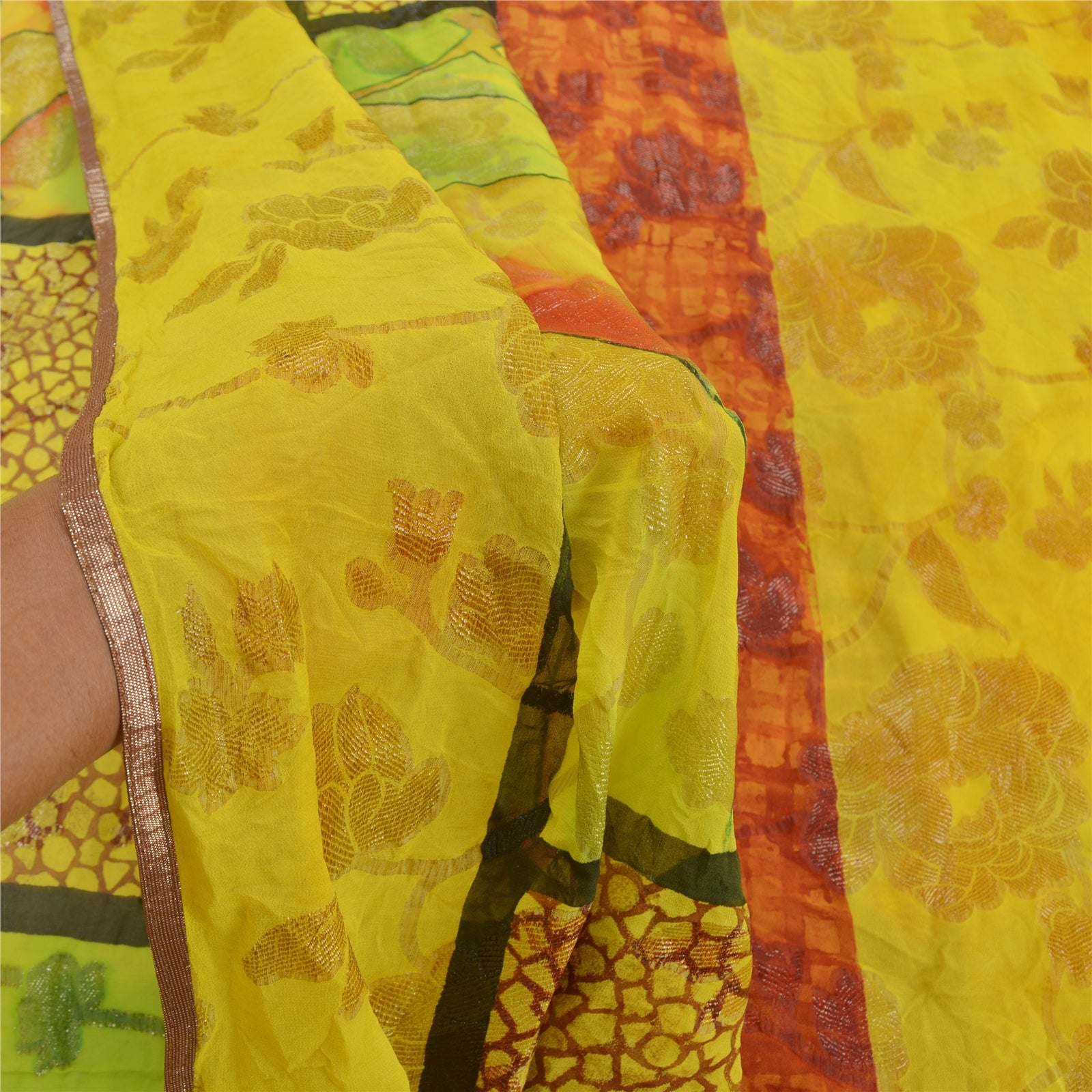Sanskriti Vintage Green Pure Georgette Silk Printed Woven Sari Soft Craft Sustainable Fabric