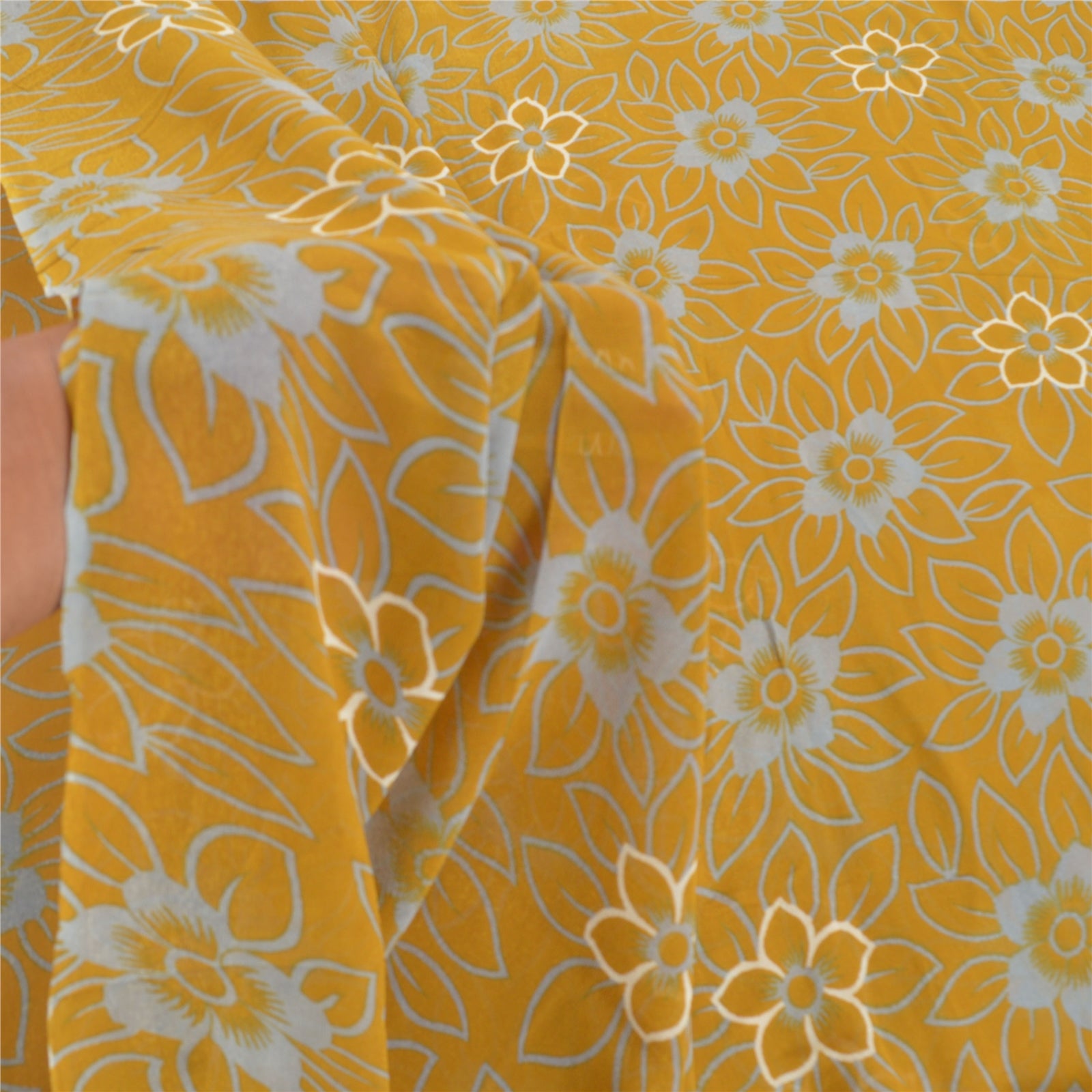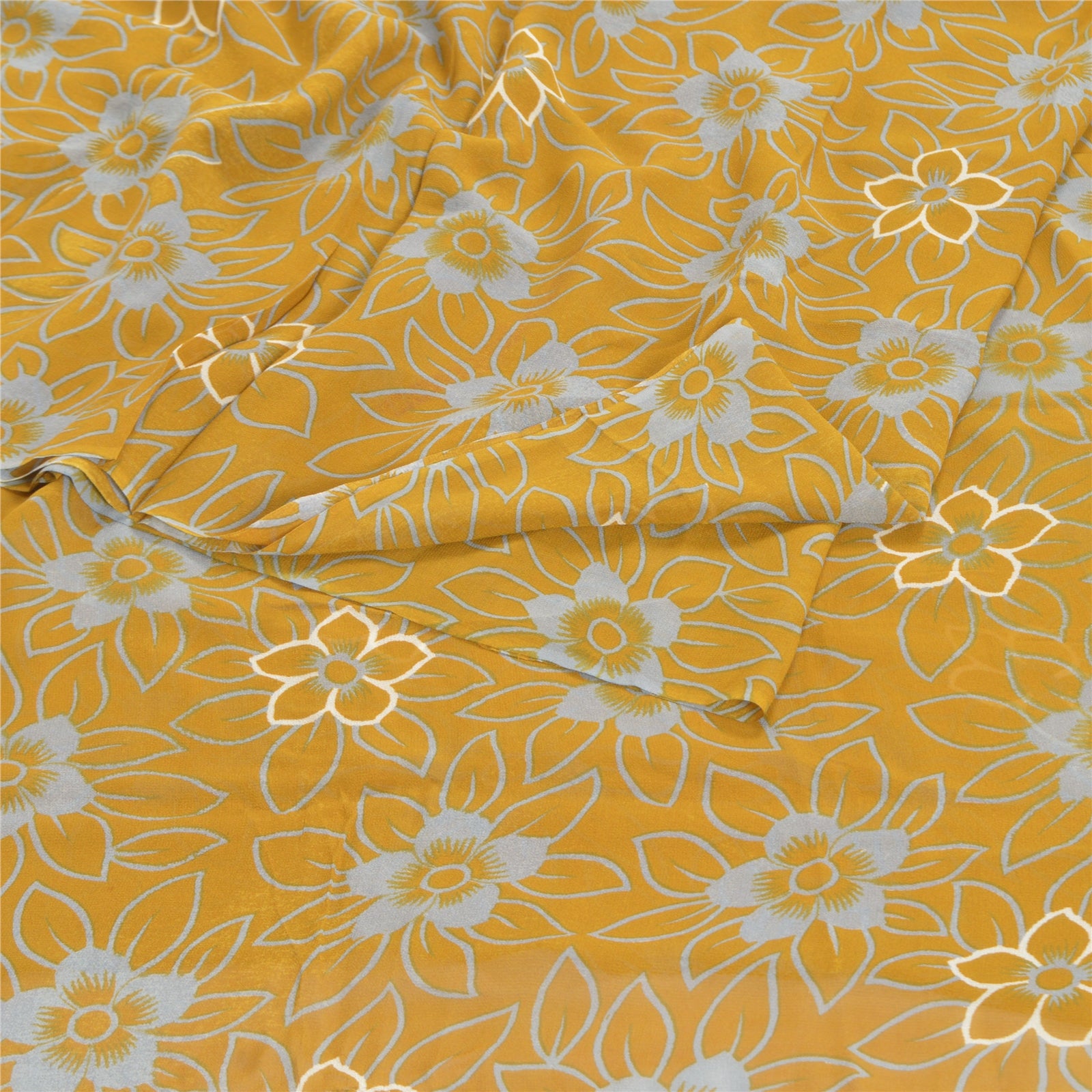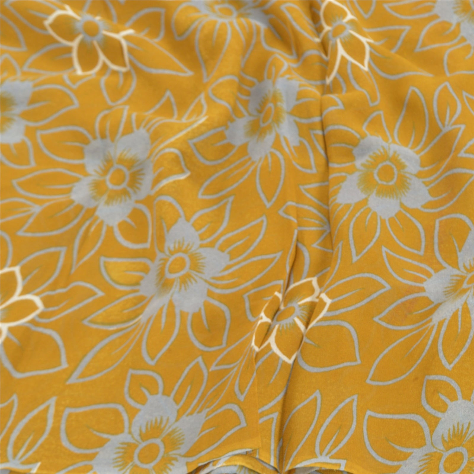 Lovely green & gray colored printed pure georgette silk saree. Allover sari has printed floral design. What is special about this saree? Brilliant printed design on soft Sustainable Fabric is really enhancing the beauty of the saree.This unique vintage saree can be used for various crafting ideas even if you don't want to use it as a sari. Design a dress, use it as a as window dressing, upholstery, sarongs, throw, dress making and table linen much more. Let your creative juices flow and use this decorated Sustainable Fabric in multiple fashion.A blouse piece with similar work comes complimentary with this sari and we do not charge you anything extra for it.