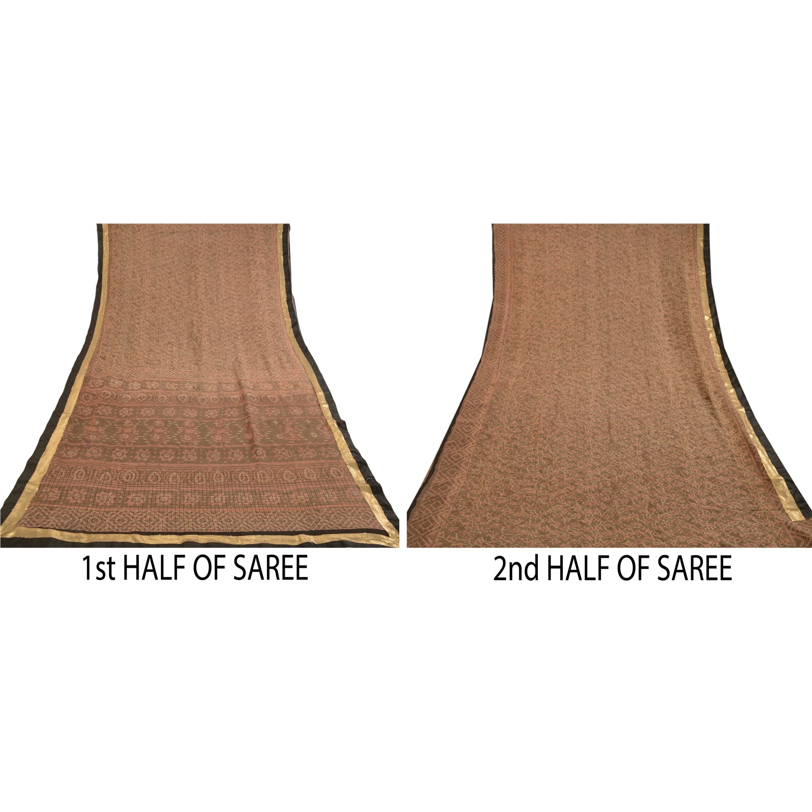 Sanskriti Vintage Green Sarees Pure Georgette Silk Printed Sari 5yd Craft Sustainable Fabric