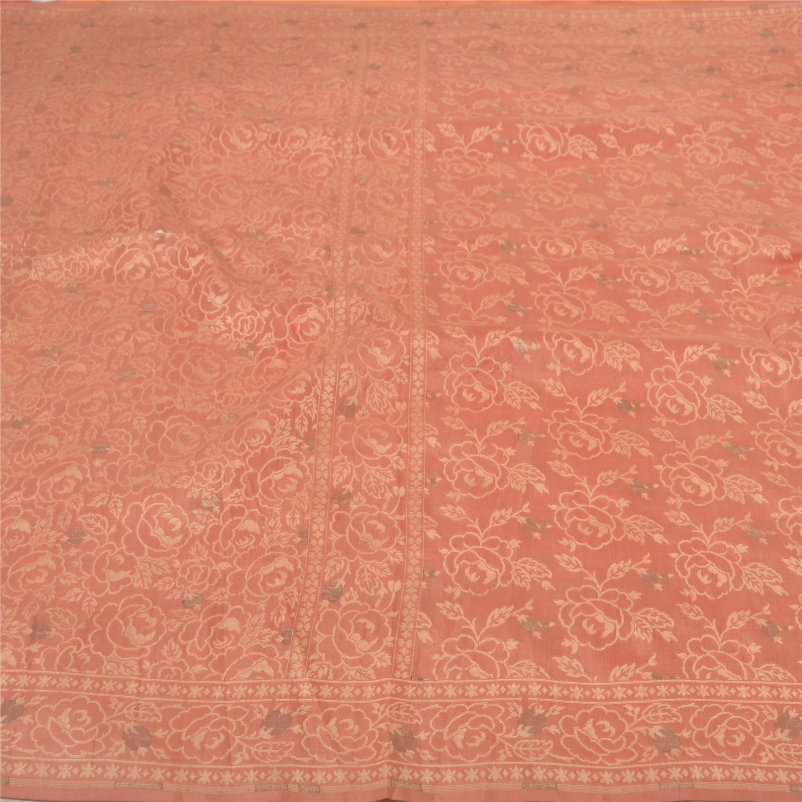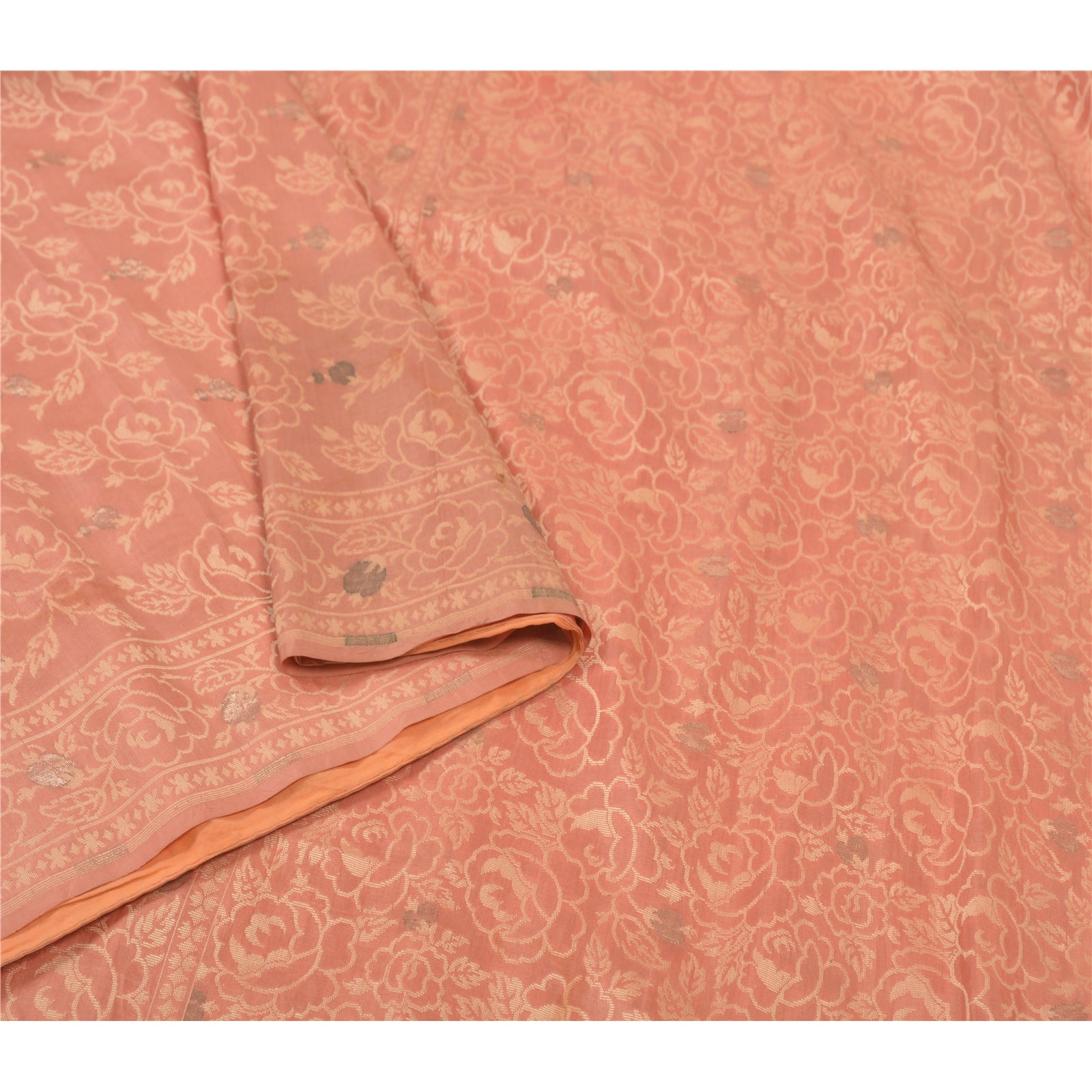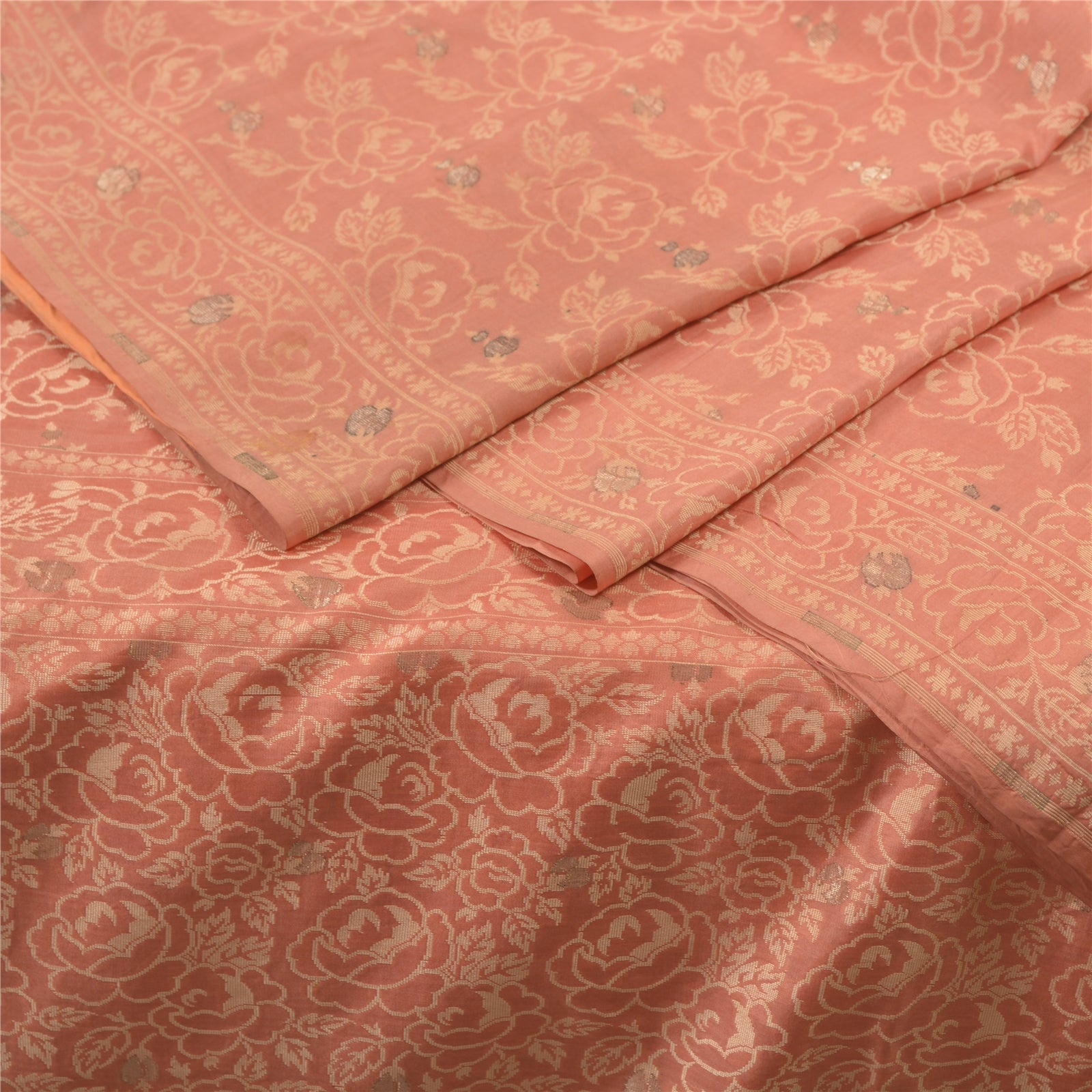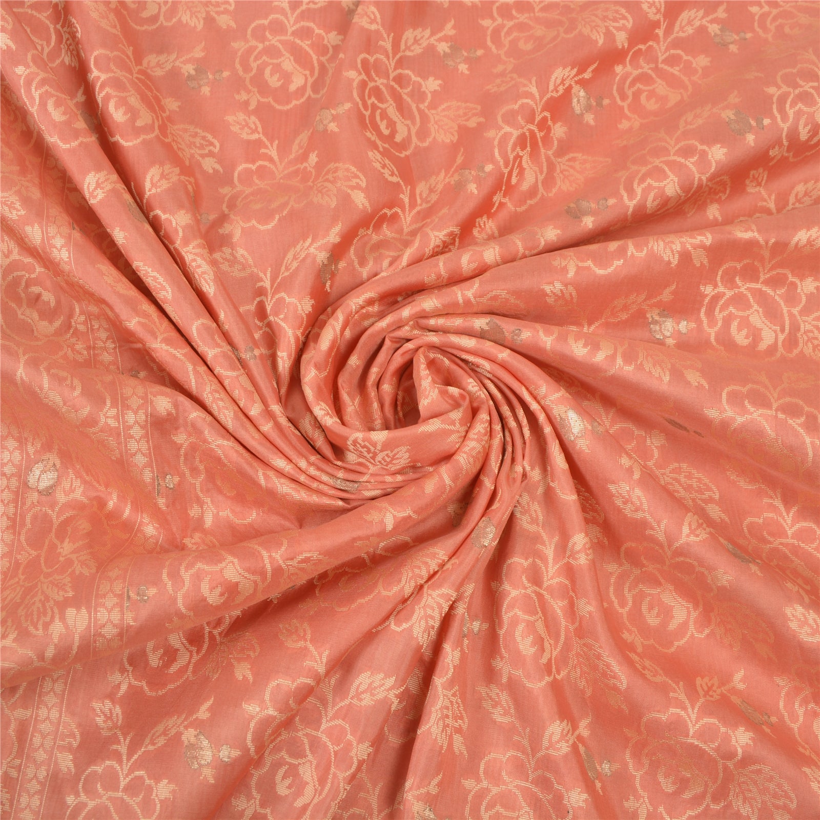 Stupendous!! Sanskriti Offers This Vintage Handwoven Heavy Saree Which Is Crafted With 100% Pure Silk Peach Color Base Sustainable Fabric. This Saree Is Somewhere 40 To 50 Years Old ,From The Time Of Our Ancestors. This Saree Is Among The Finest Saree In India And Are Known For Their Gold and Silver Zari, Fine Silk and Opulent Embroidery. This Saree Has Intricate Intertwining Of Floral and Foliate motifs, At The Outer Edge Of The Border. The Zari Used In This Saree Is The Zari, Has A Luxurious Shine In It To Give It A Royal Look. It Takes 3 To 6 Months according To The Intricacy Of The Work To Complete Such A Saree. This heavy saree can be worn as it is, or can be used for various crafting ideas like for dress designing, as window dressing, upholstery, table linen and much more. Let your creative skills flow! As the saree is vintage, few damages/stains are expected.