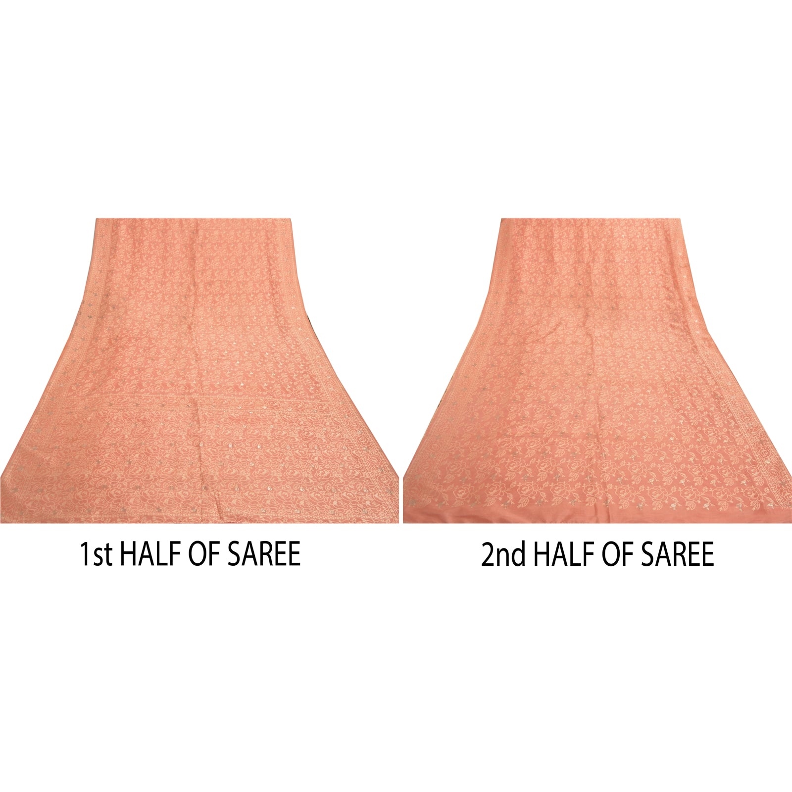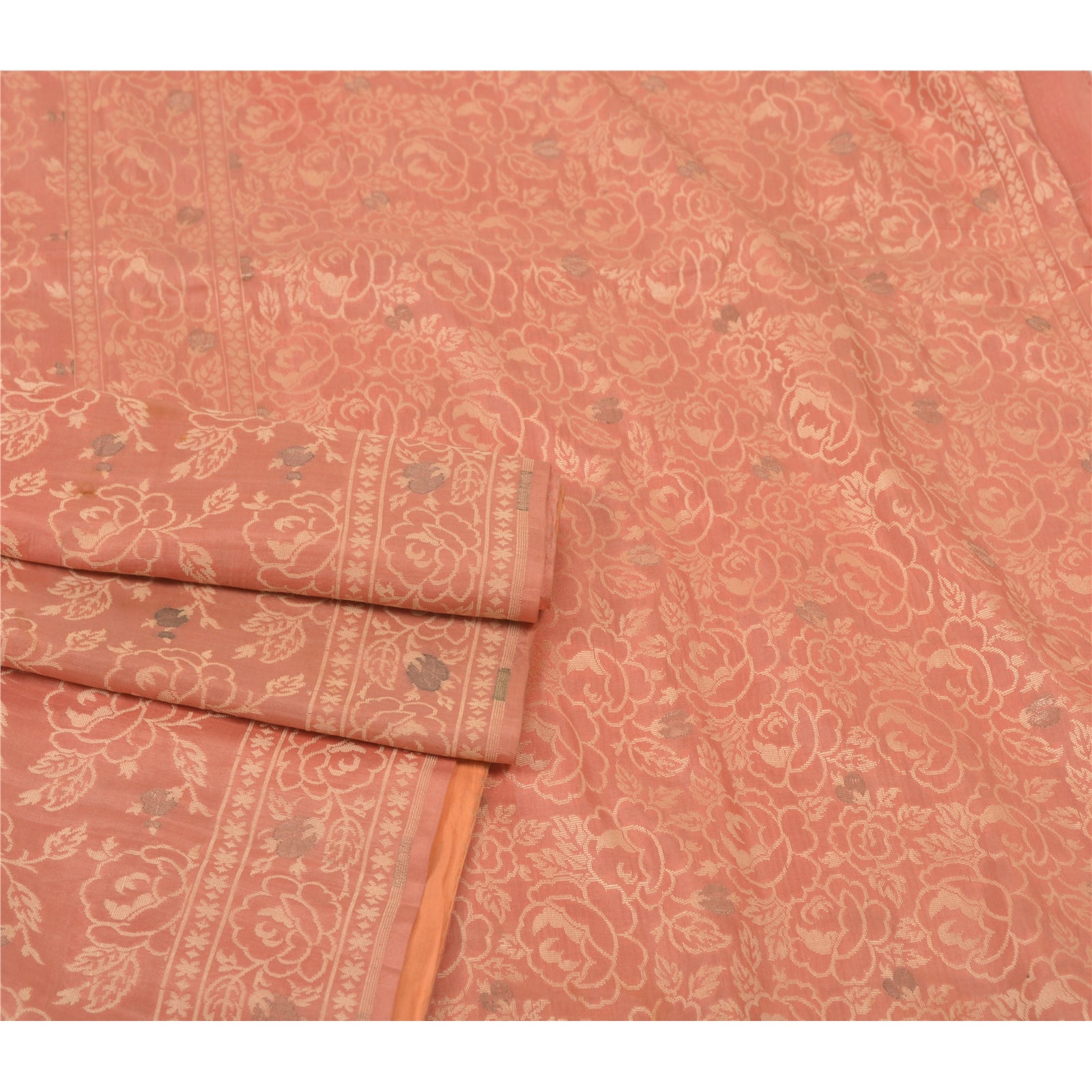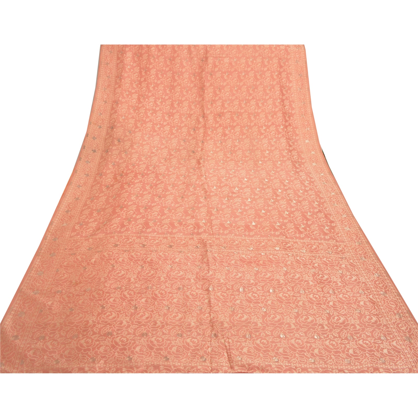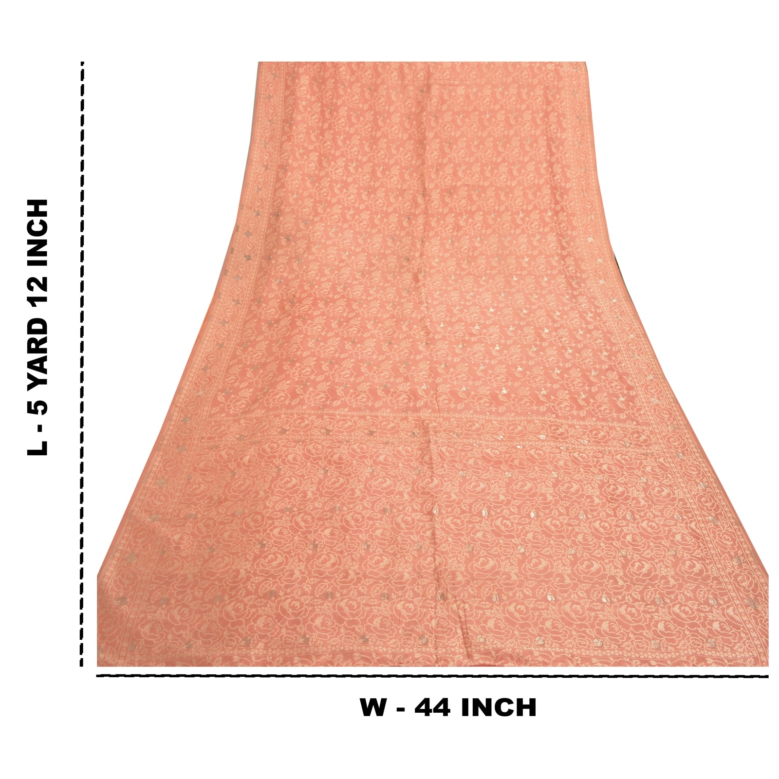 Stupendous!! Sanskriti Offers This Vintage Handwoven Heavy Saree Which Is Crafted With 100% Pure Silk Peach Color Base Sustainable Fabric. This Saree Is Somewhere 40 To 50 Years Old ,From The Time Of Our Ancestors. This Saree Is Among The Finest Saree In India And Are Known For Their Gold and Silver Zari, Fine Silk and Opulent Embroidery. This Saree Has Intricate Intertwining Of Floral and Foliate motifs, At The Outer Edge Of The Border. The Zari Used In This Saree Is The Zari, Has A Luxurious Shine In It To Give It A Royal Look. It Takes 3 To 6 Months according To The Intricacy Of The Work To Complete Such A Saree. This heavy saree can be worn as it is, or can be used for various crafting ideas like for dress designing, as window dressing, upholstery, table linen and much more. Let your creative skills flow! As the saree is vintage, few damages/stains are expected.