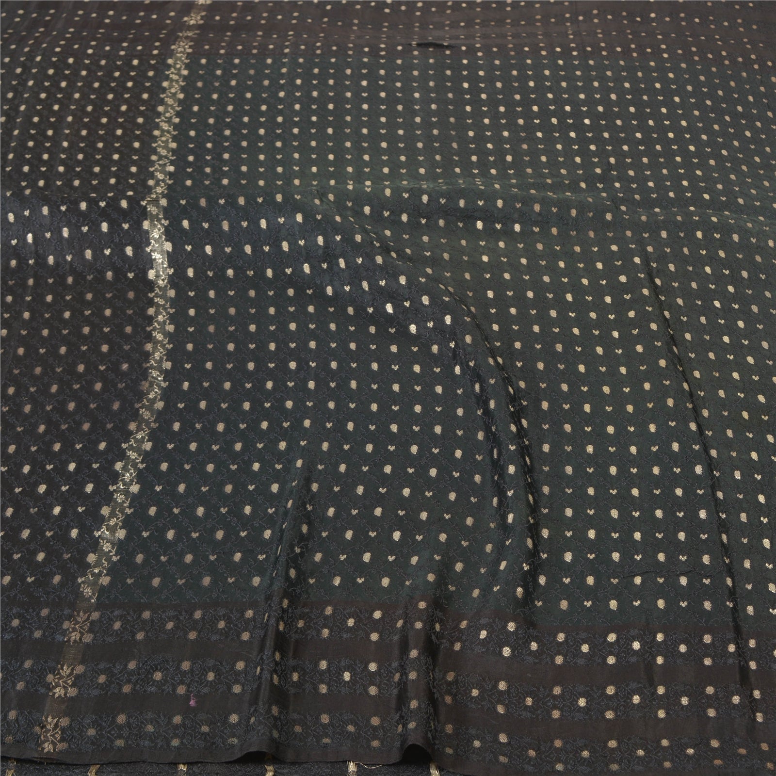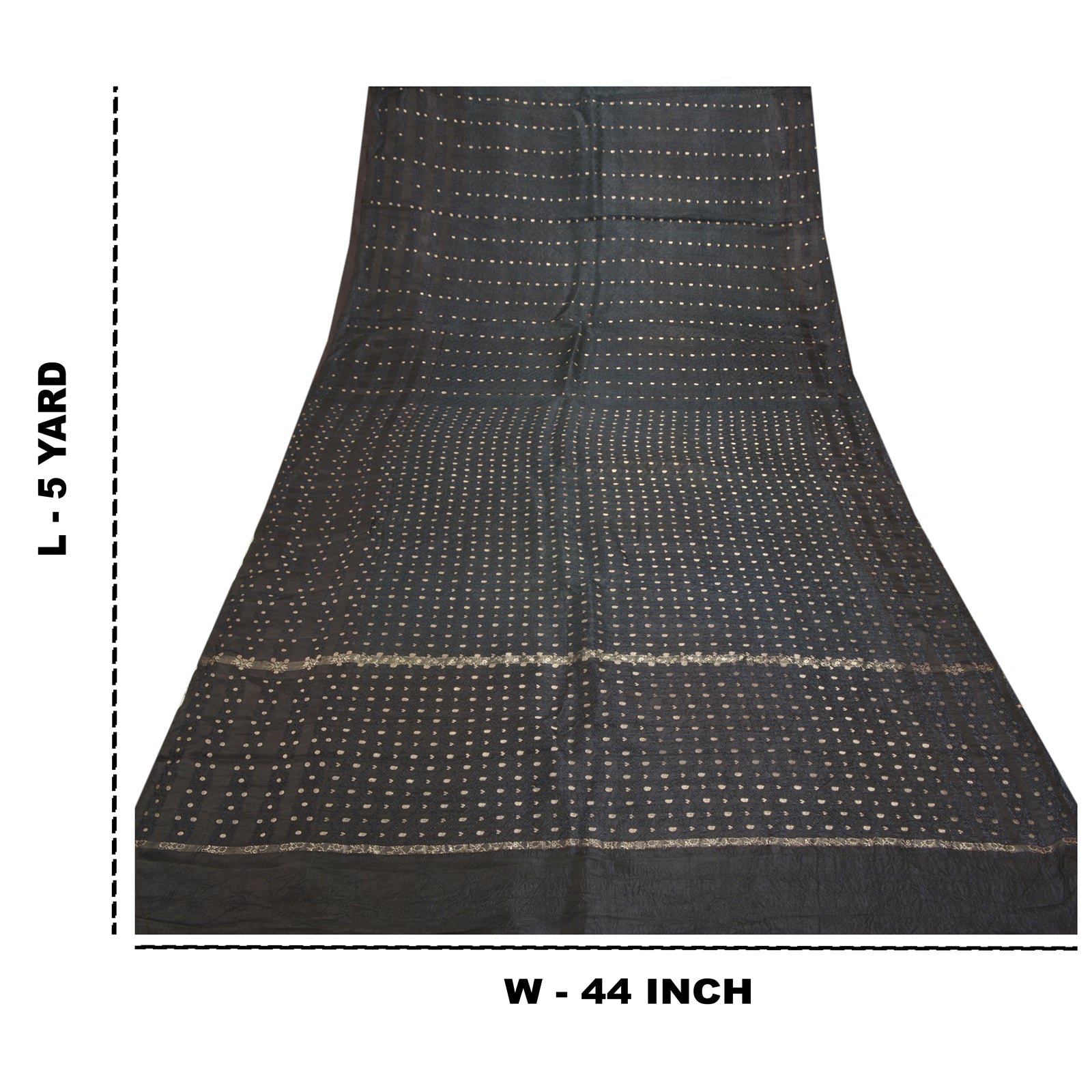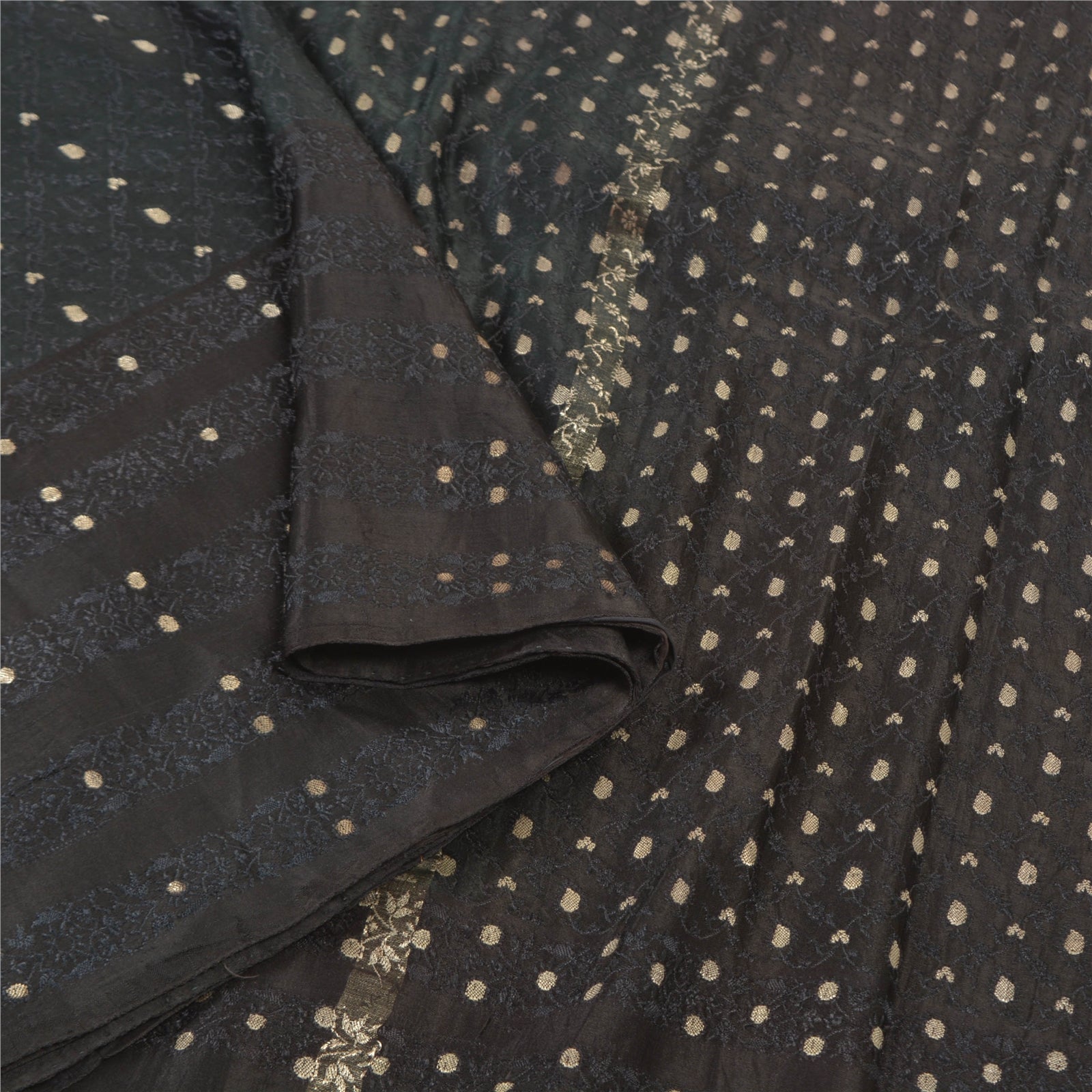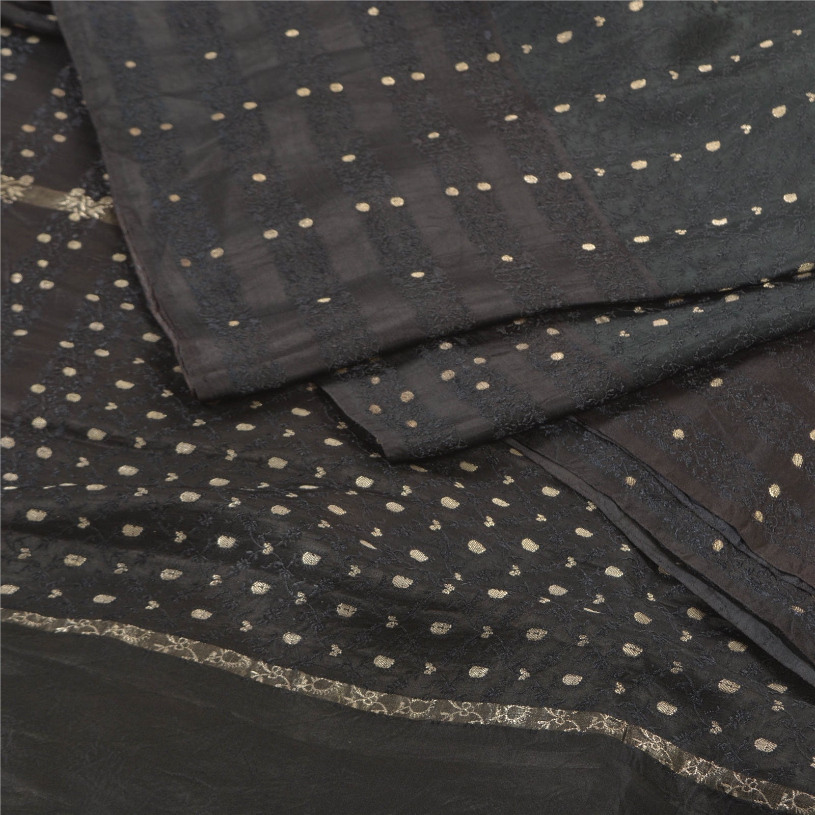 Sanskriti Vintage Heavy Black Sarees Pure Satin Silk Woven Brocade Sari Sustainable Fabric