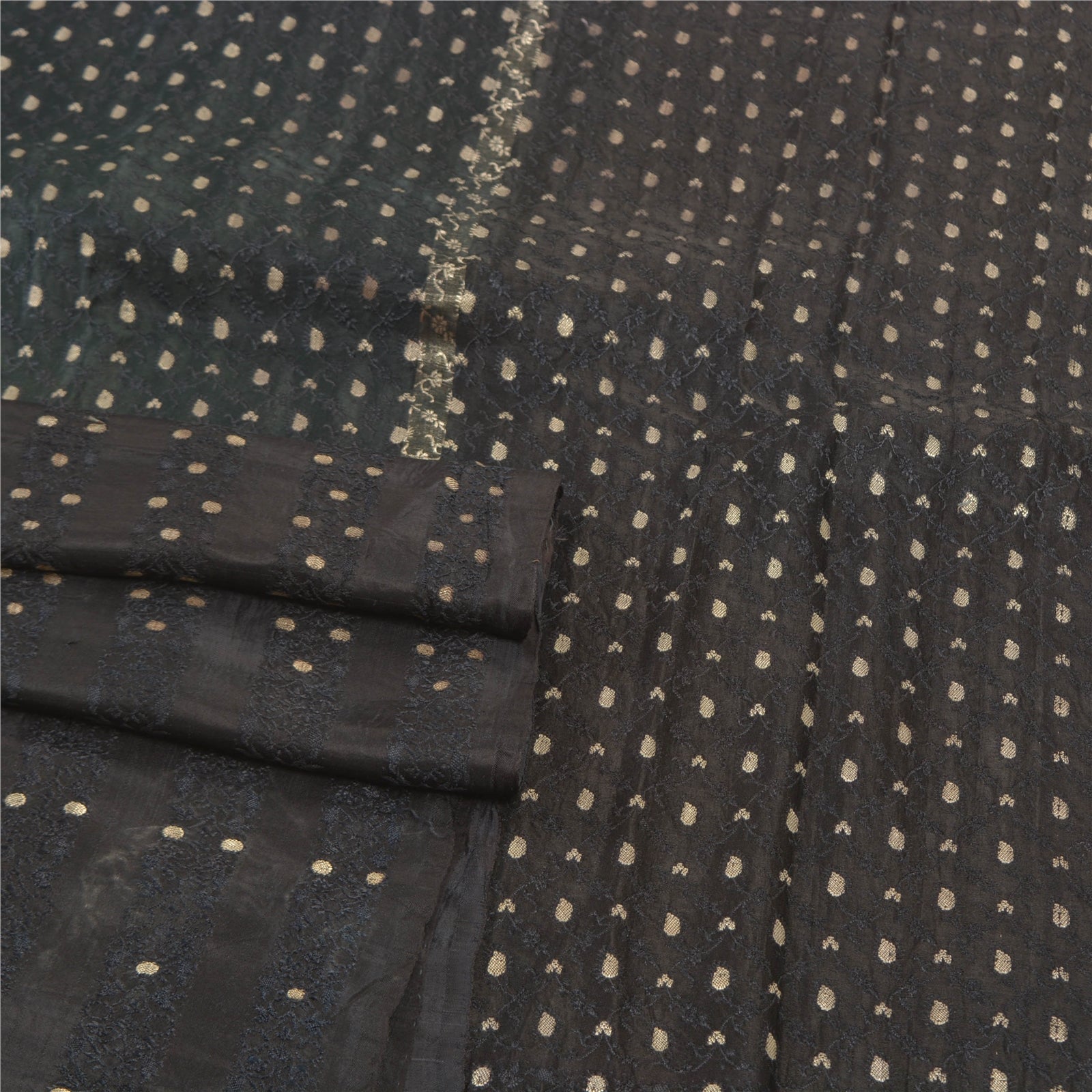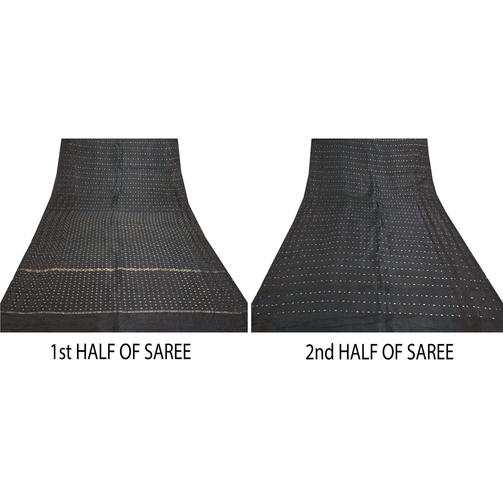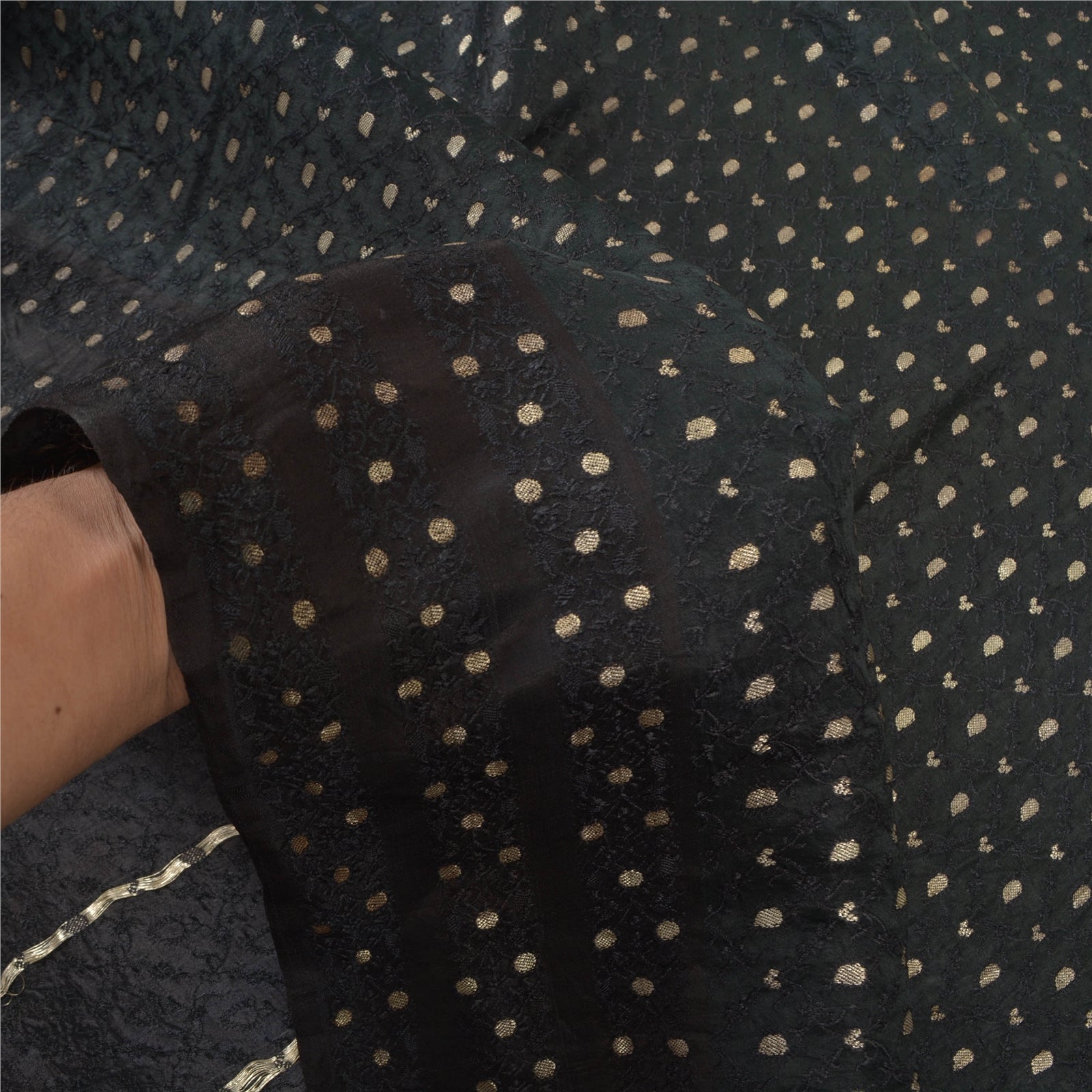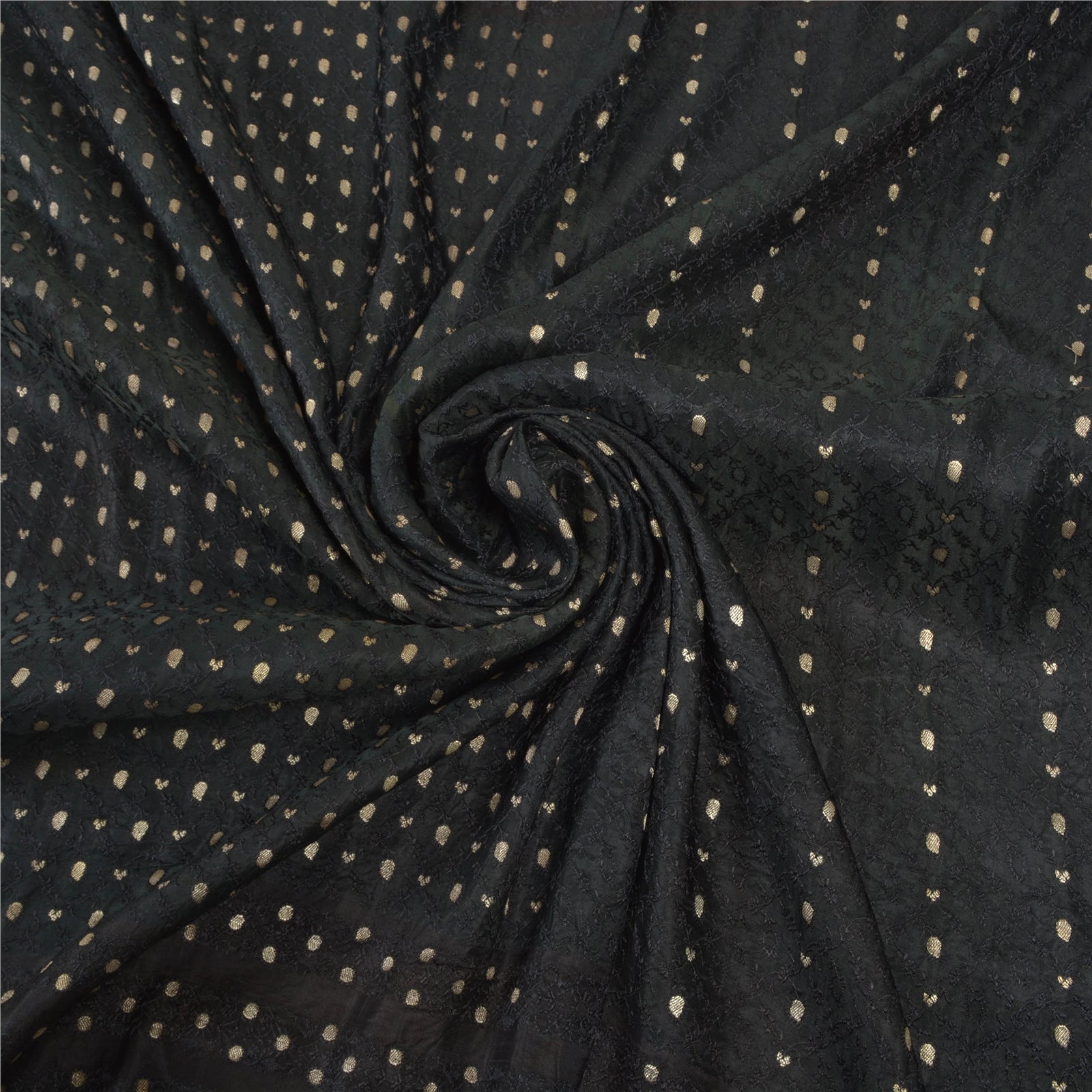 Sanskriti Vintage Heavy Black Sarees Pure Satin Silk Woven Brocade Sari Sustainable Fabric