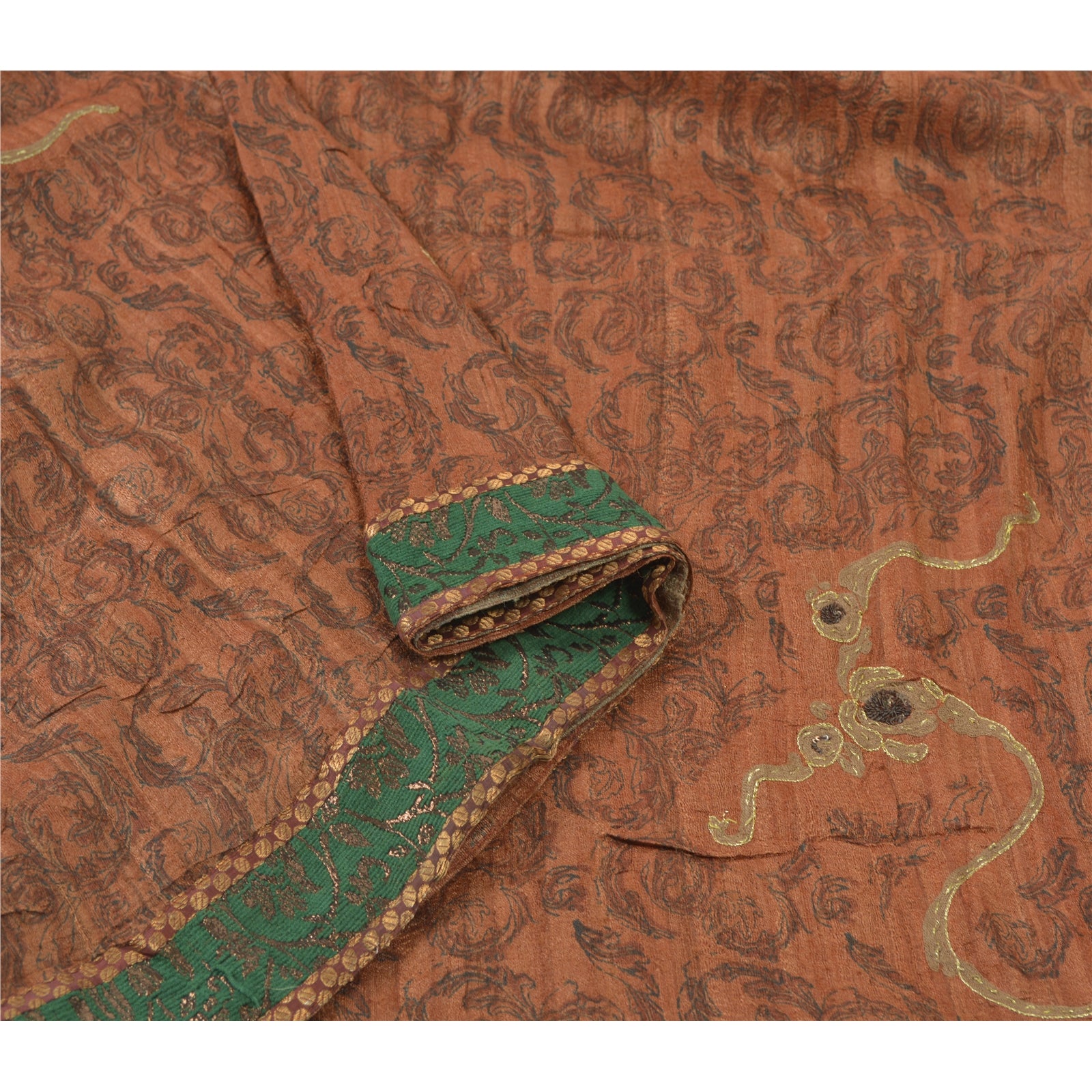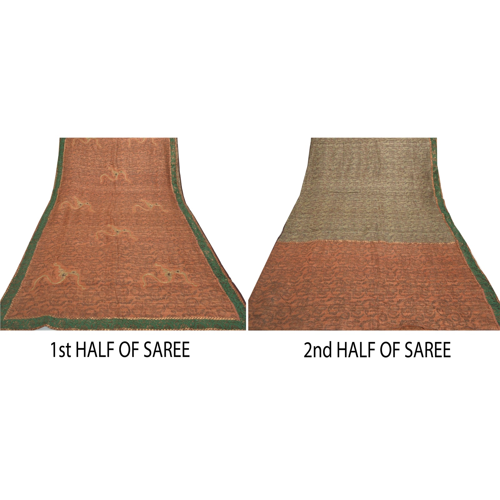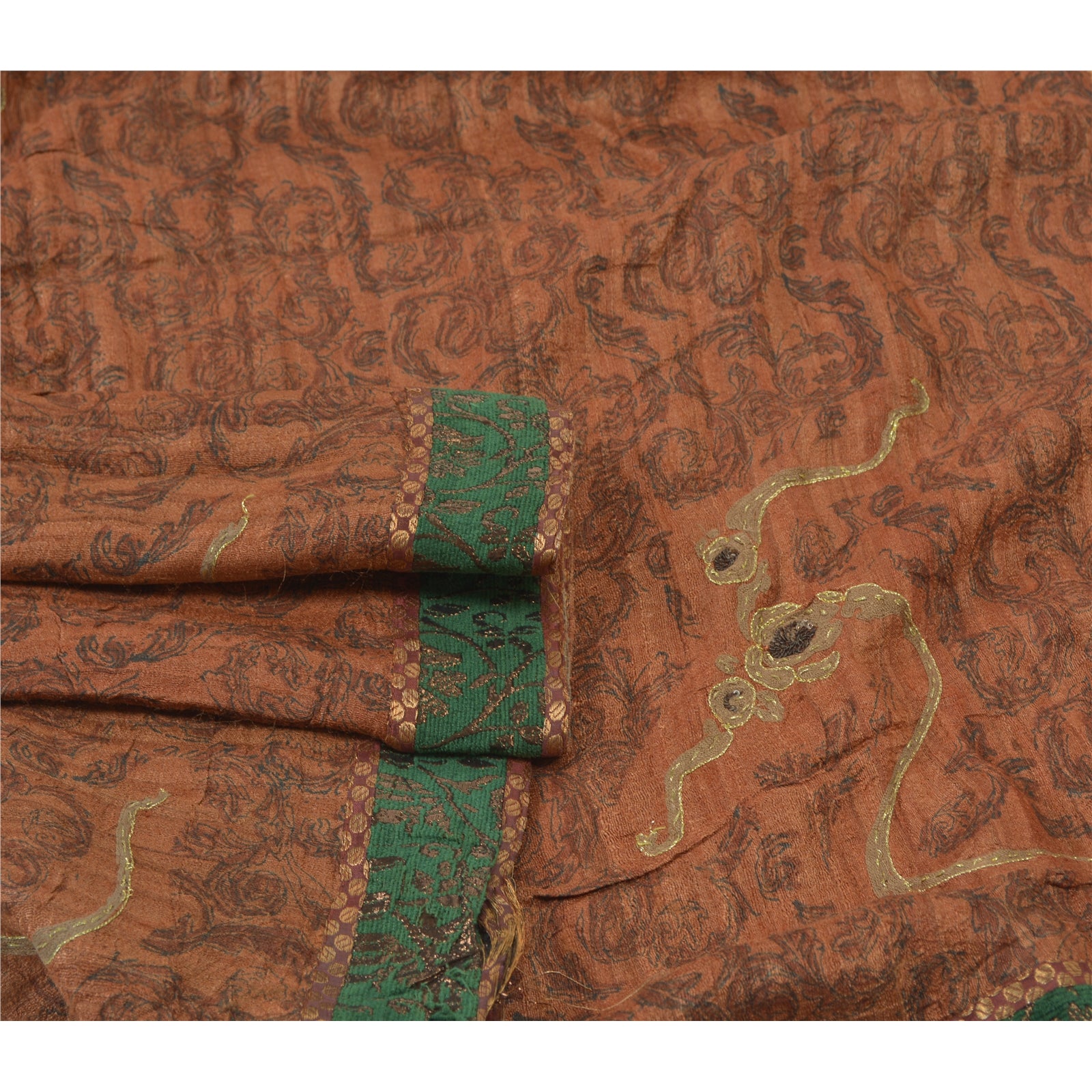 Sanskriti Vintage Heavy Brown Sarees Pure Handloom Silk Handmade Sari Print Sustainable Fabric