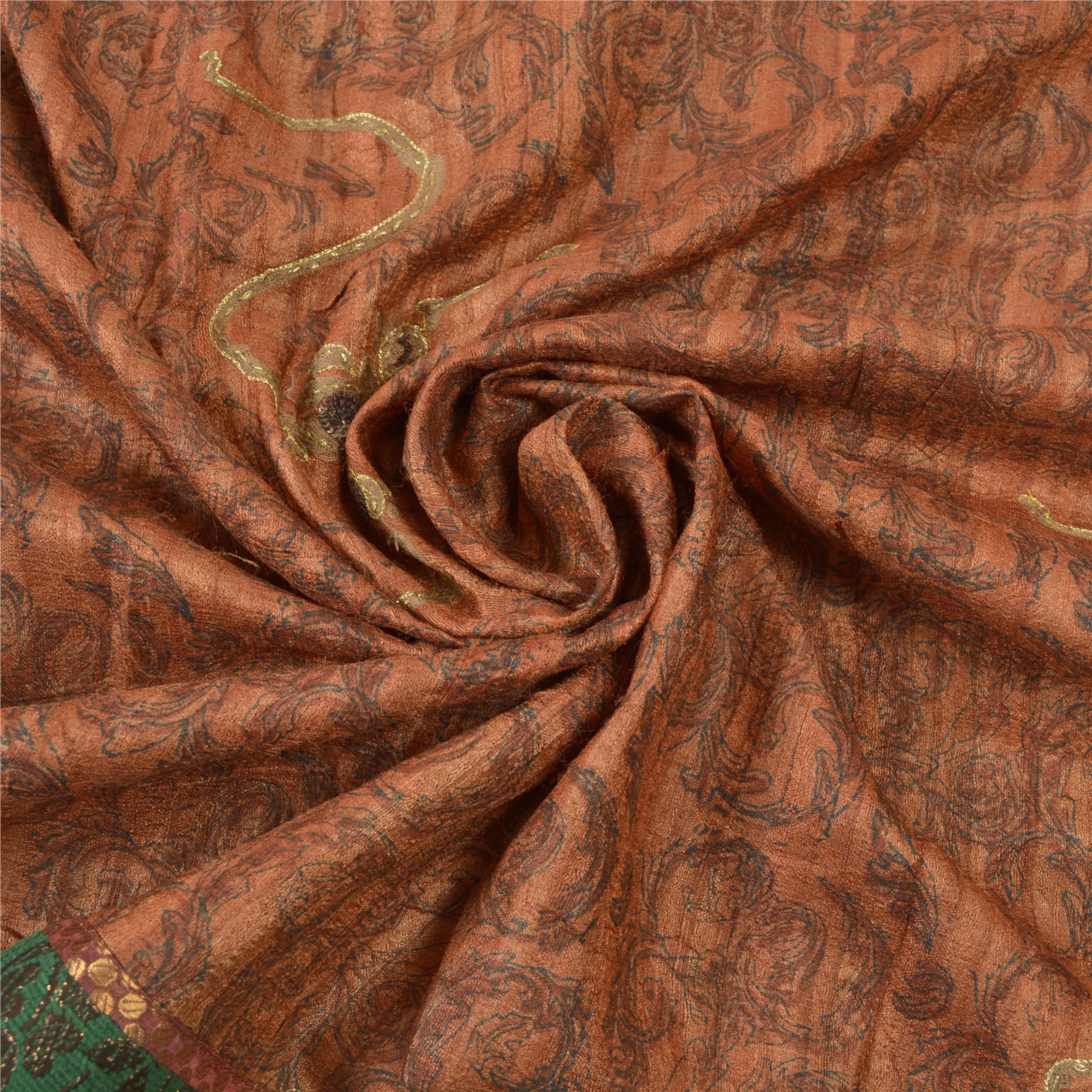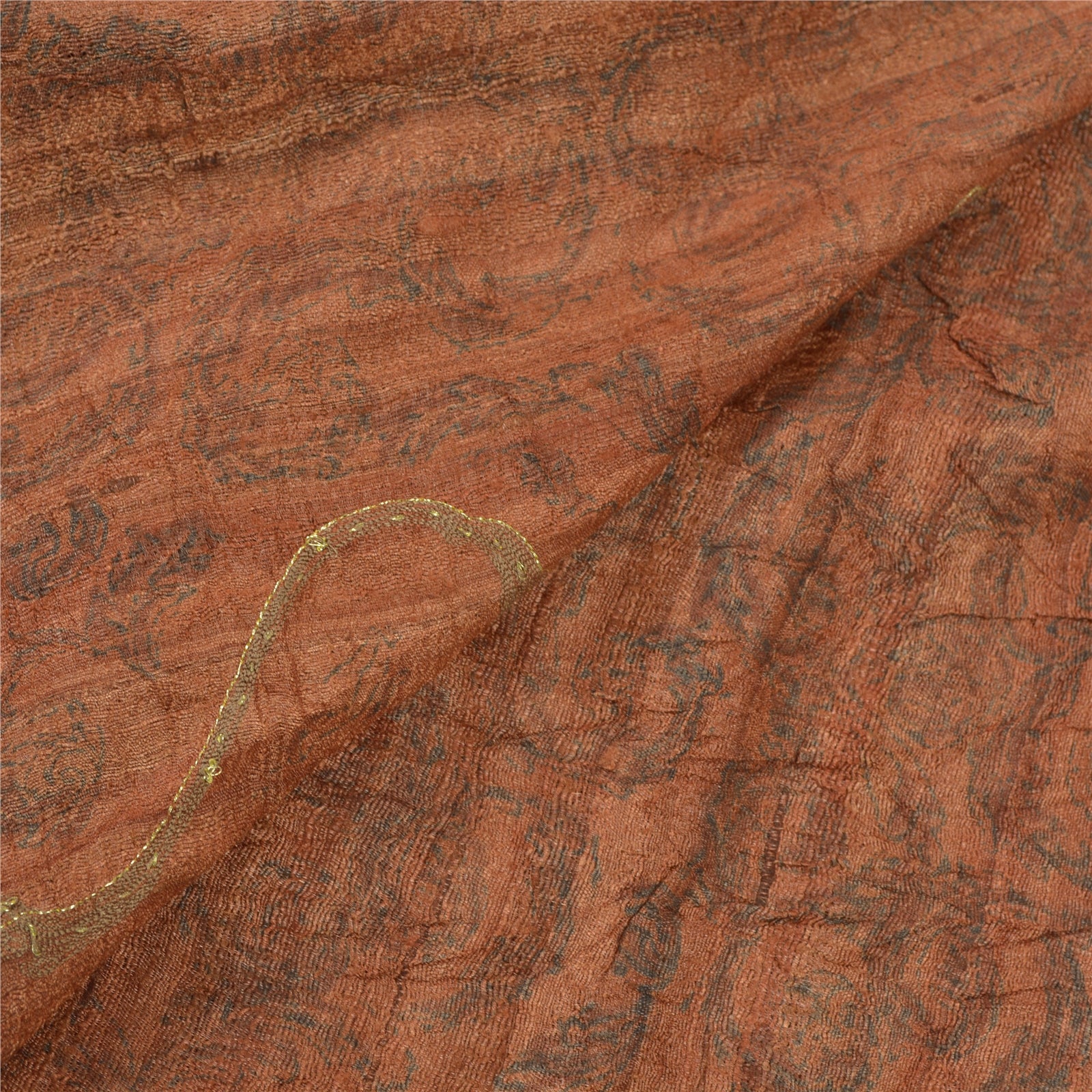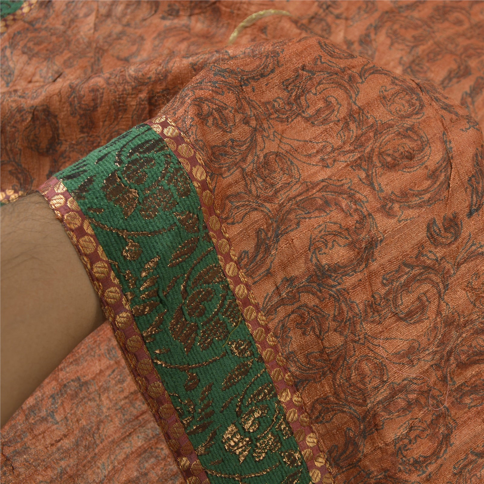 Sanskriti Vintage Heavy Brown Sarees Pure Handloom Silk Handmade Sari Print Sustainable Fabric