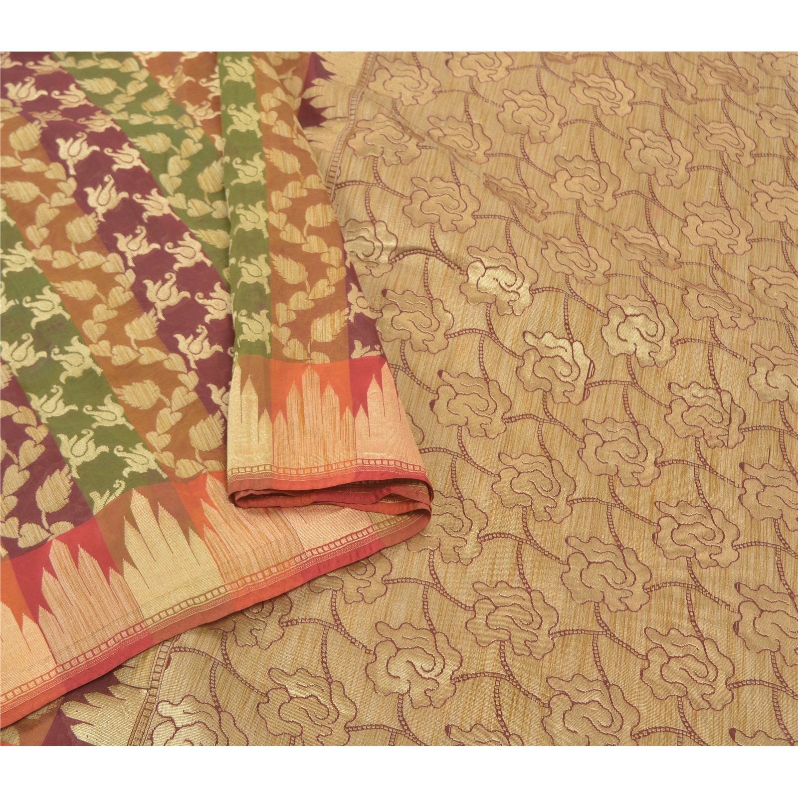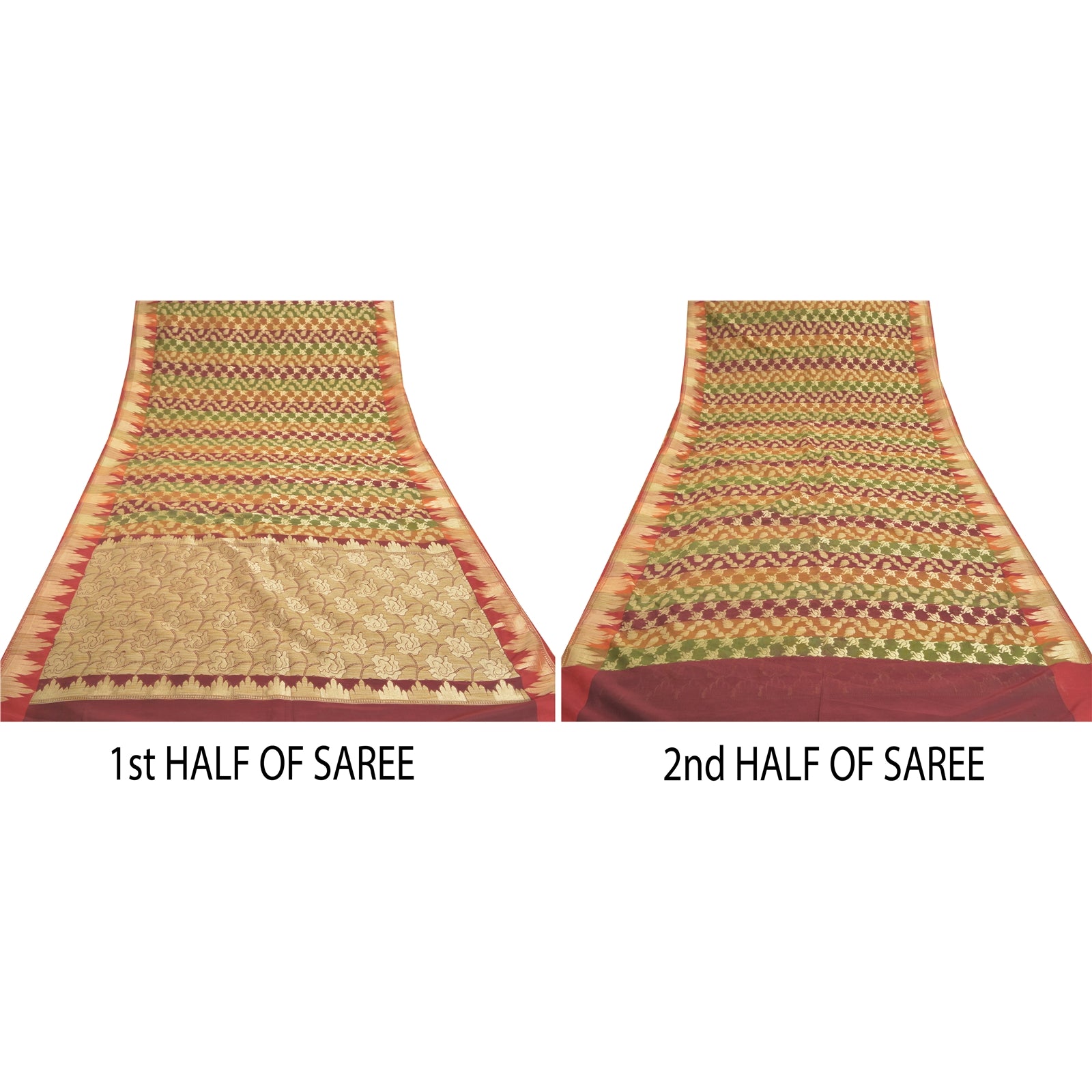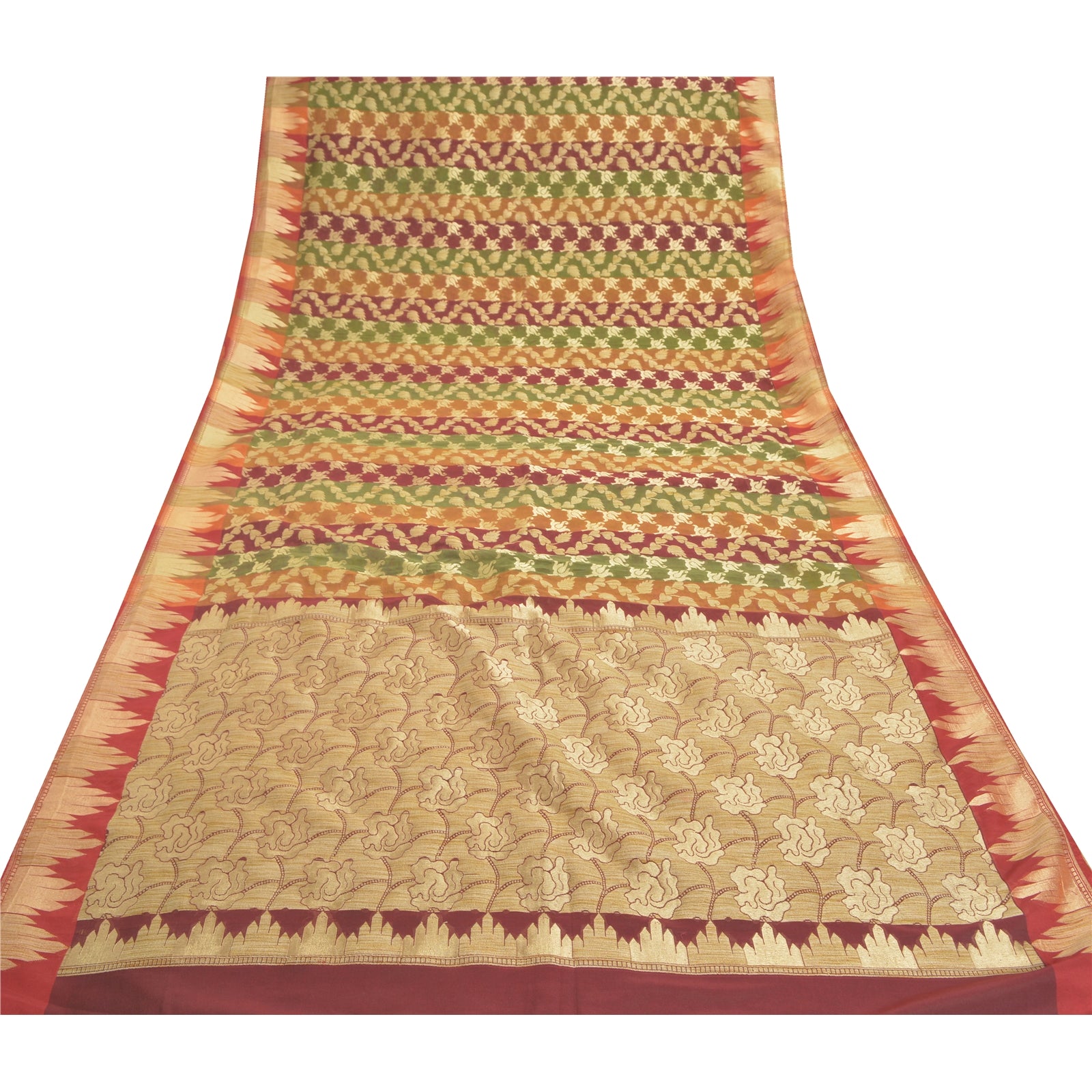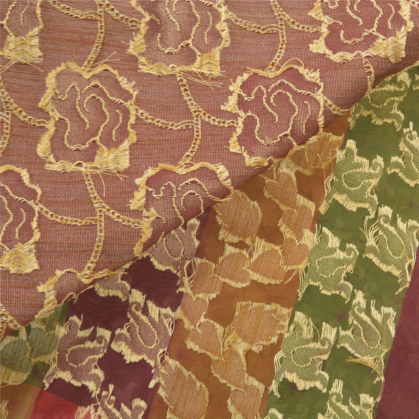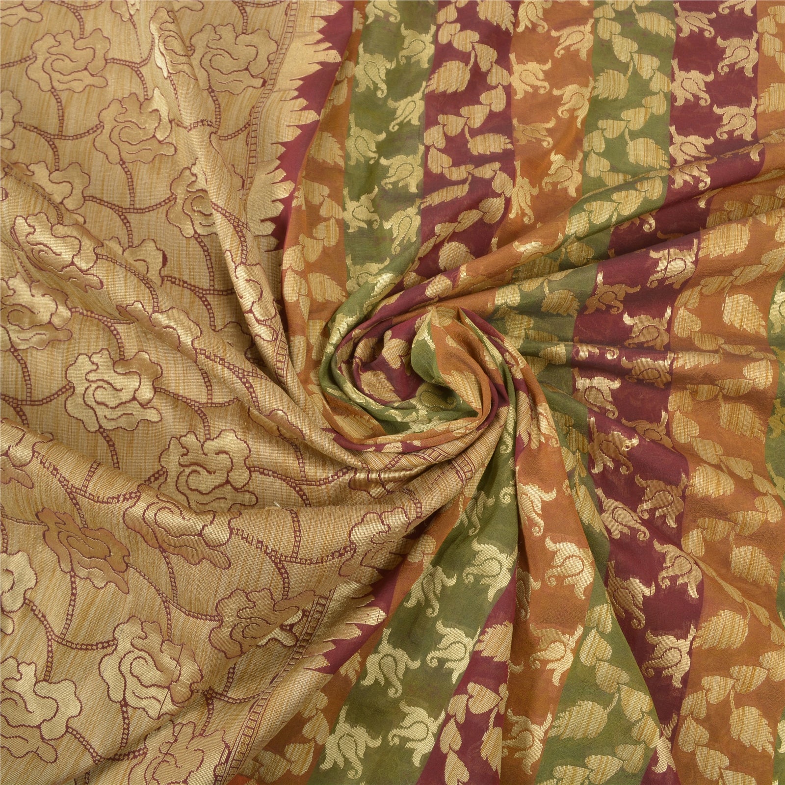 An Awesome Heavy Sari In Art (Artificial) Silk Multi Color Colored Hand-Woven Work Sustainable Fabric. Pallu & Border features hand-woven cream woven work with zig- zag & floral design. You Can See similar hand-woven work with floral design in center portion of sari. This heavy saree can be used for various crafting ideas too. Use it for dress designing, as a throw, as window dressing, upholstery, table linen and much more. Let your creative juices flow. A One Of A Kind Unique Saree Must In Your Collection. As the product is vintage, some mild stains/damages are expected. A One Of Kind Unique Saree Must In Your Collection. This unique vintage saree can be used for various crafting ideas for example design a dress, use it as a throw, as window dressing, upholstery, table linen and much more. Let your creative juices flow and use this decorated Sustainable Fabric in multiple fashion.