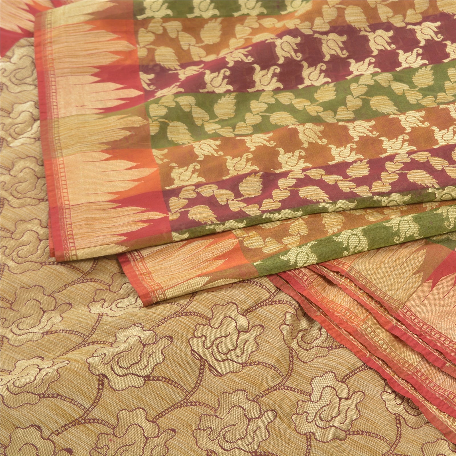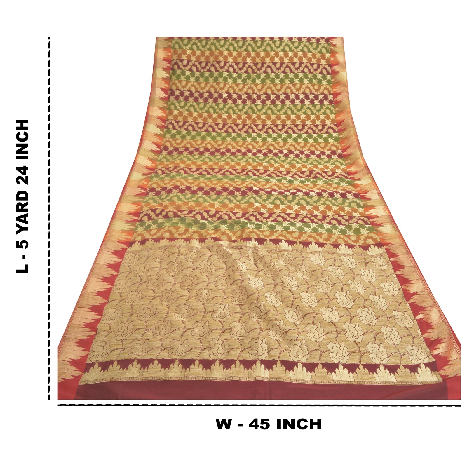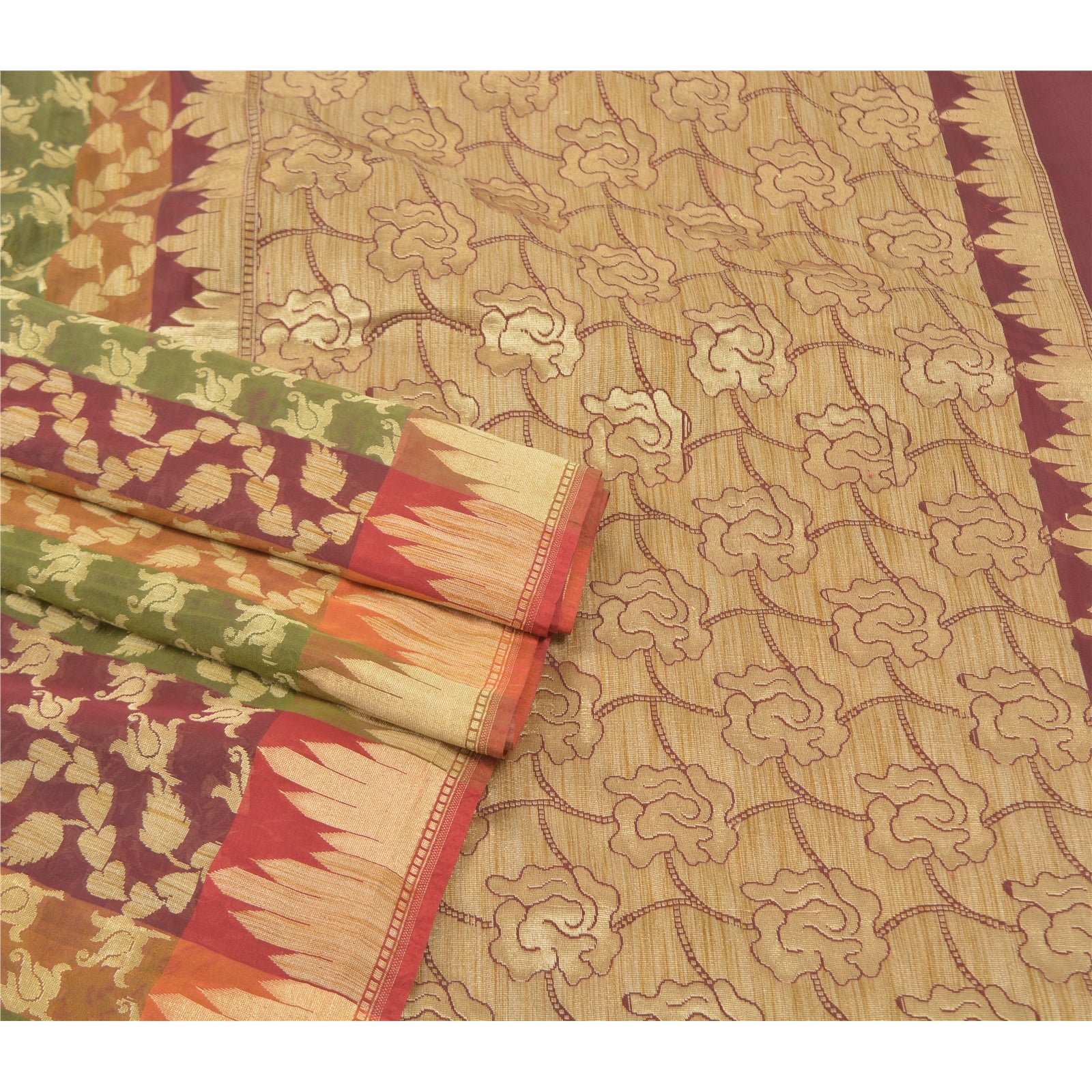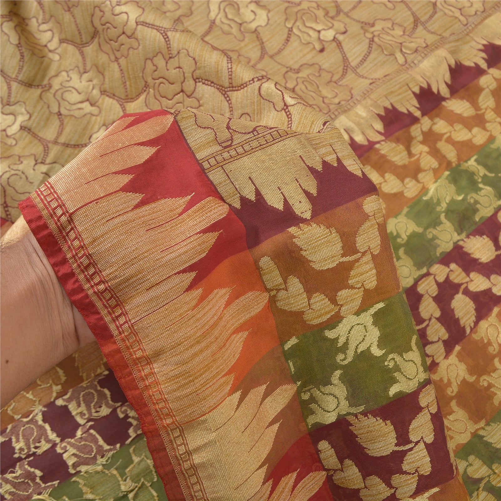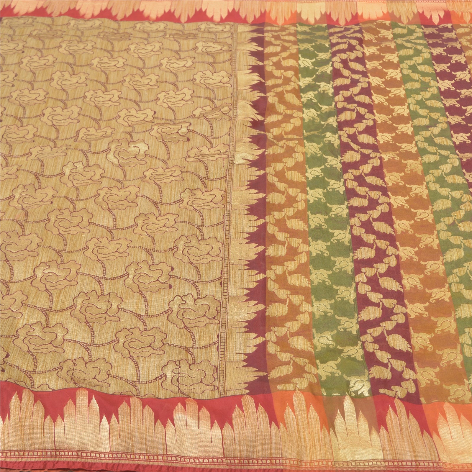 An Awesome Heavy Sari In Art (Artificial) Silk Multi Color Colored Hand-Woven Work Sustainable Fabric. Pallu & Border features hand-woven cream woven work with zig- zag & floral design. You Can See similar hand-woven work with floral design in center portion of sari. This heavy saree can be used for various crafting ideas too. Use it for dress designing, as a throw, as window dressing, upholstery, table linen and much more. Let your creative juices flow. A One Of A Kind Unique Saree Must In Your Collection. As the product is vintage, some mild stains/damages are expected. A One Of Kind Unique Saree Must In Your Collection. This unique vintage saree can be used for various crafting ideas for example design a dress, use it as a throw, as window dressing, upholstery, table linen and much more. Let your creative juices flow and use this decorated Sustainable Fabric in multiple fashion.