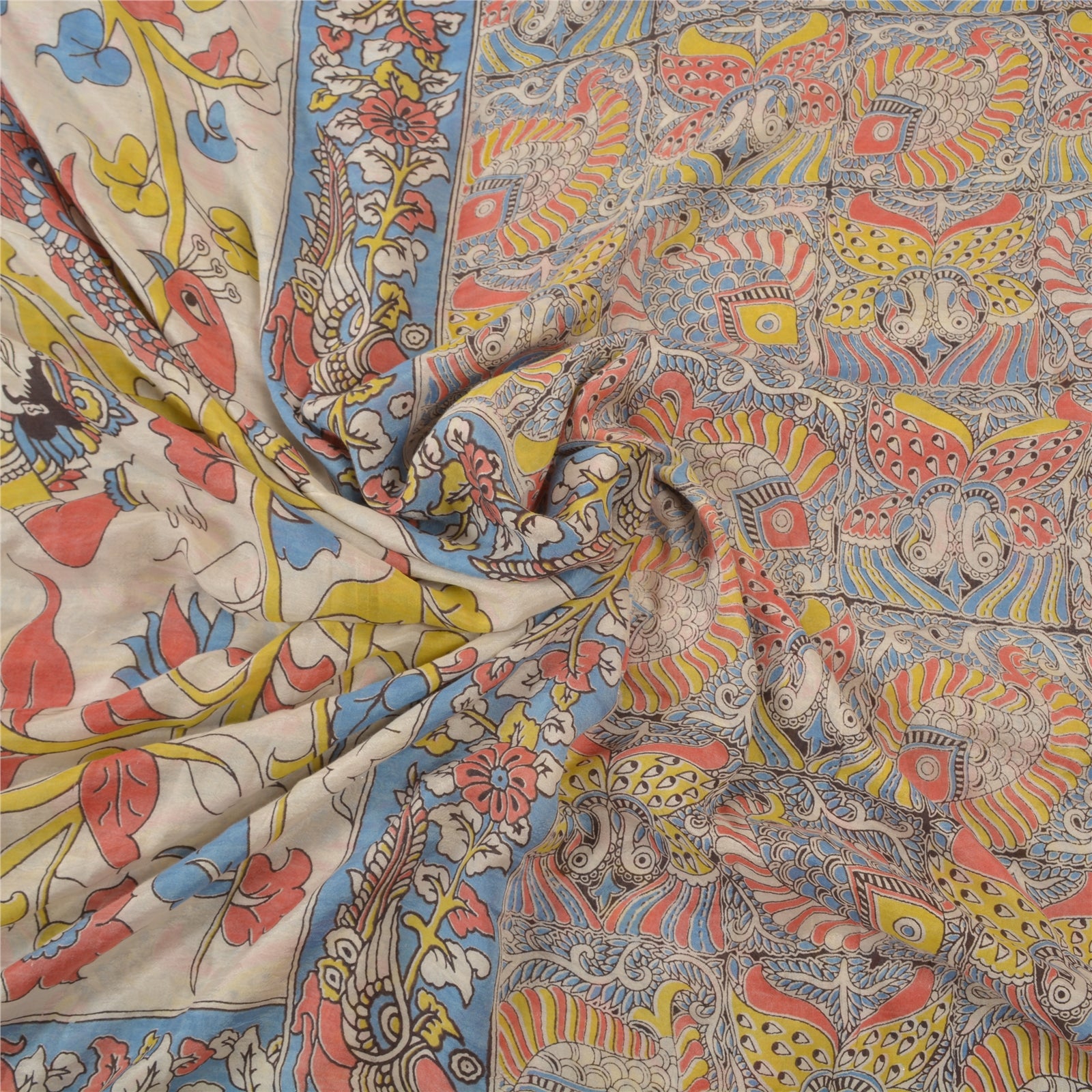 Sanskriti Vintage Heavy Sarees 100% Pure Cotton Kalamkari Peacock Sari Sustainable Fabric