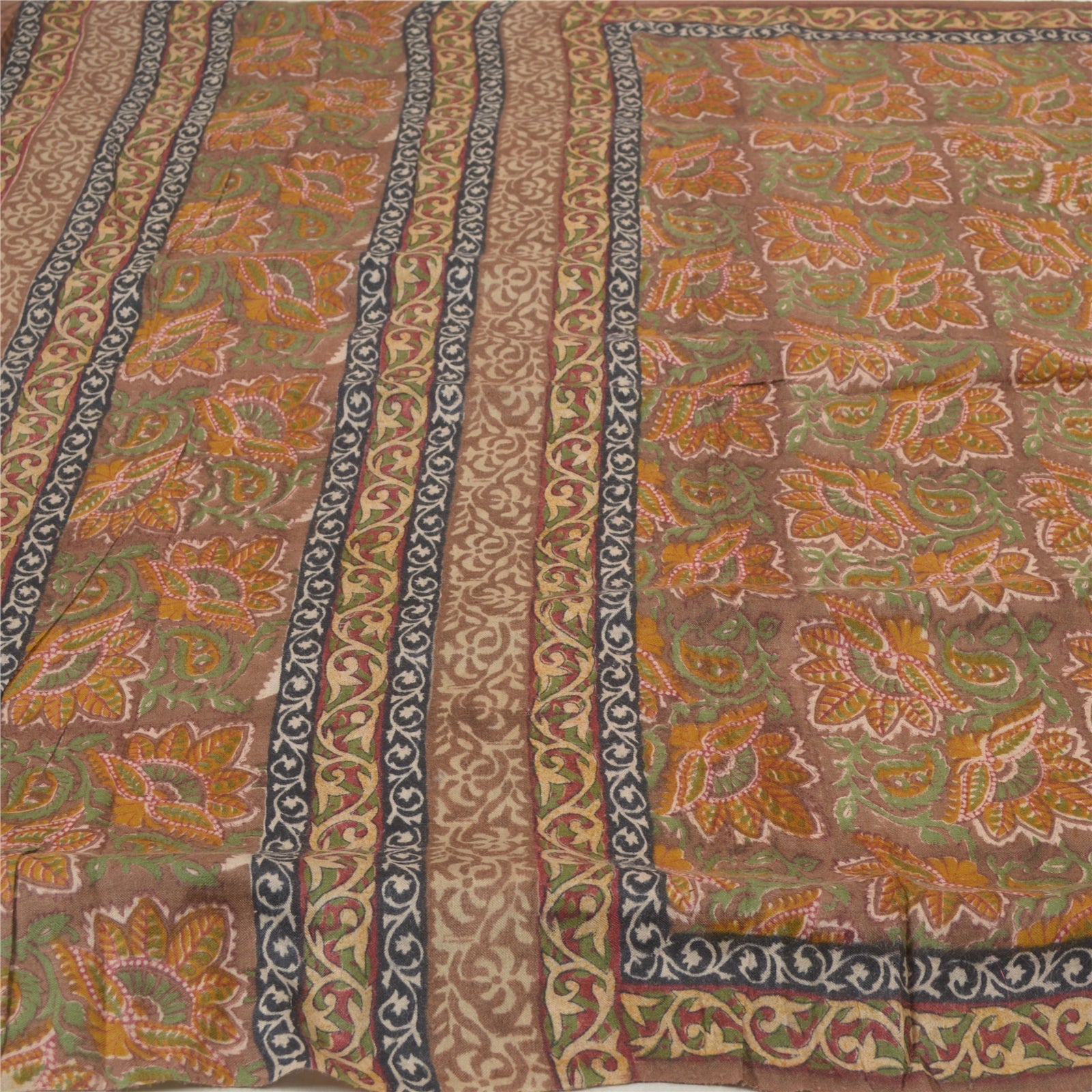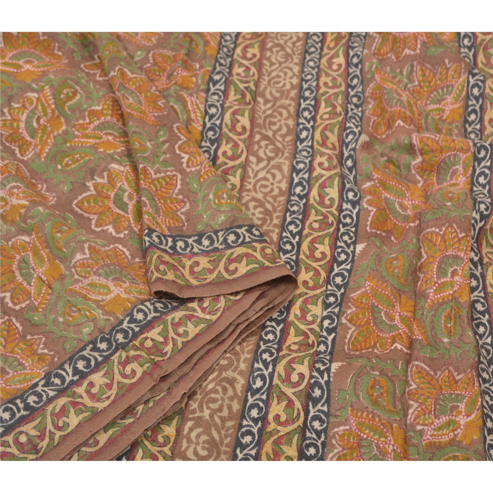 Fabulous!! A Heavy Sari In Brown Color 100% Pure Woolen Base Sustainable Fabric. The pallu & border of the sari features printed floral design with woven work. Centre portion of sari has similar printed work with floral pattern. A One Of Kind Unique Saree Must In Your Collection. This unique vintage saree can be used for various crafting ideas for example design a dress, use it as a throw, as window dressing, upholstery, table linen and much more. Let your creative juices flow and use this decorated Sustainable Fabric in multiple fashion.
