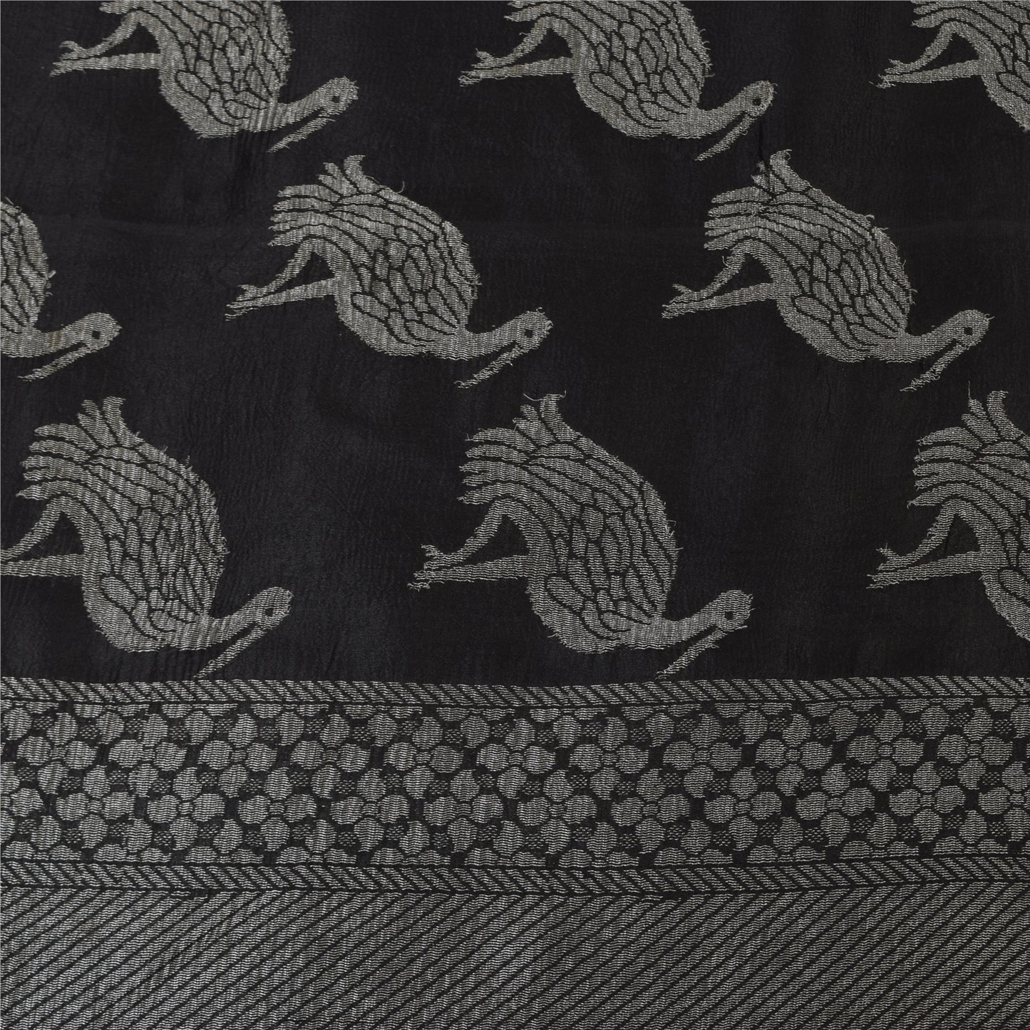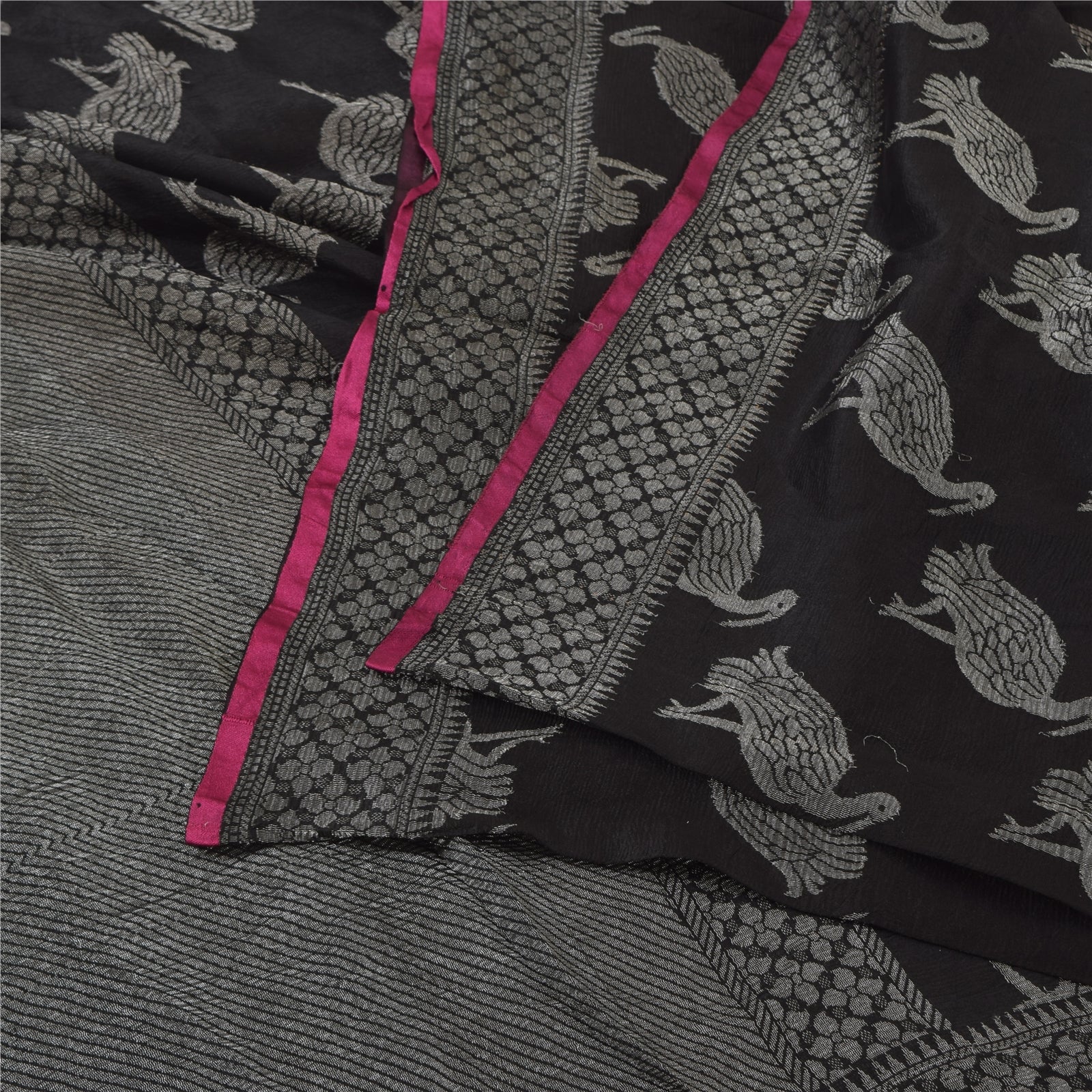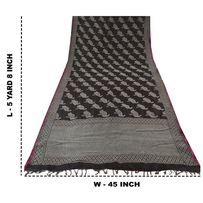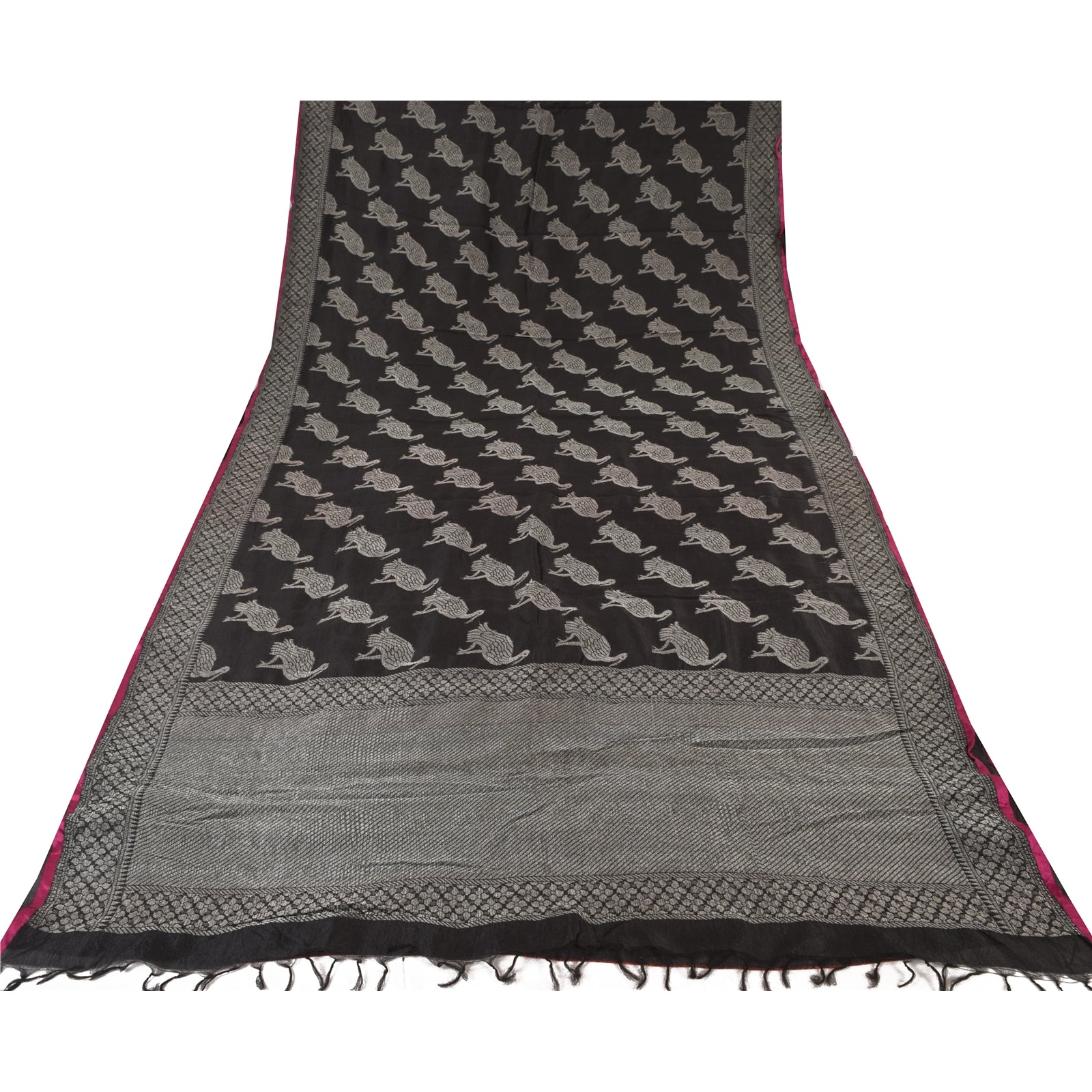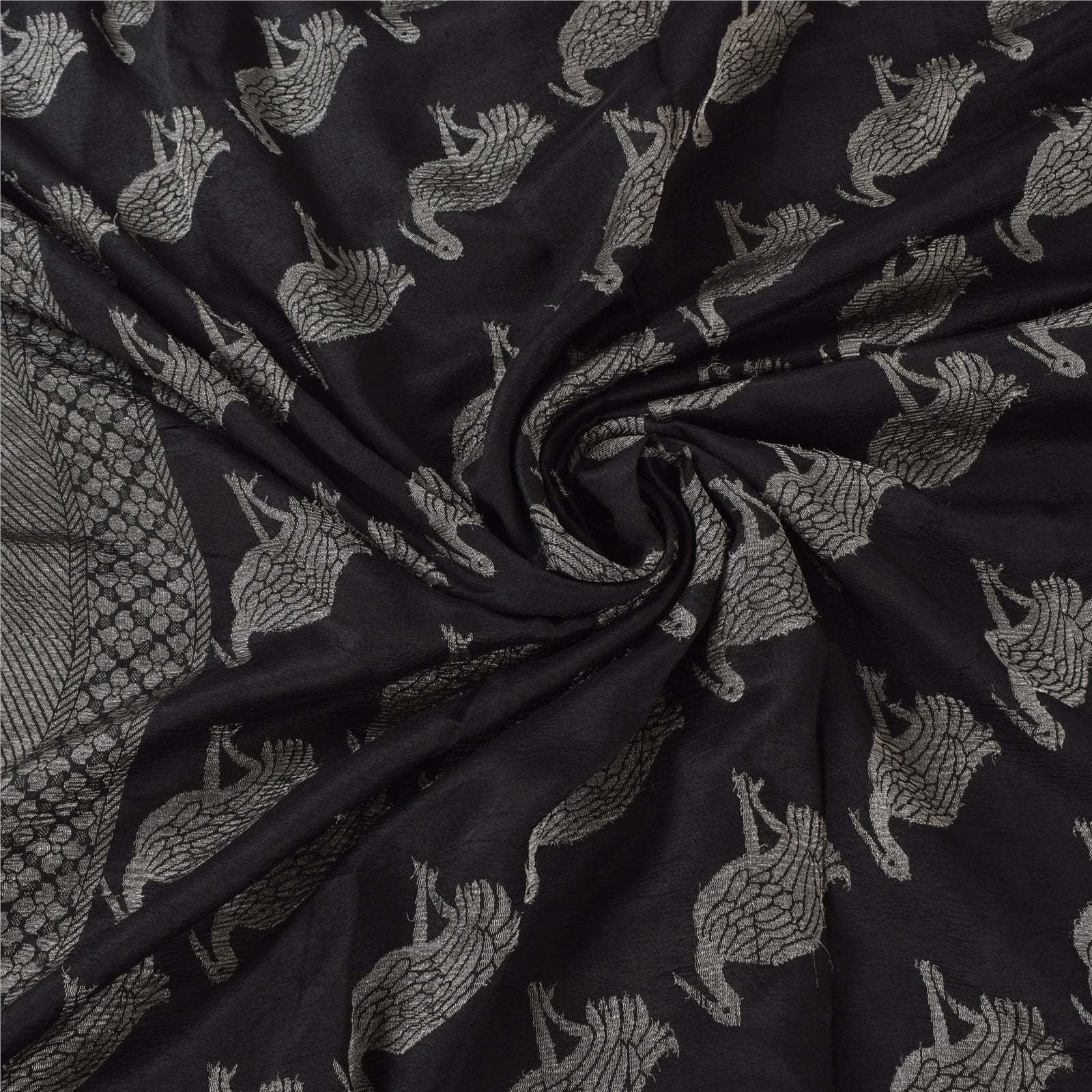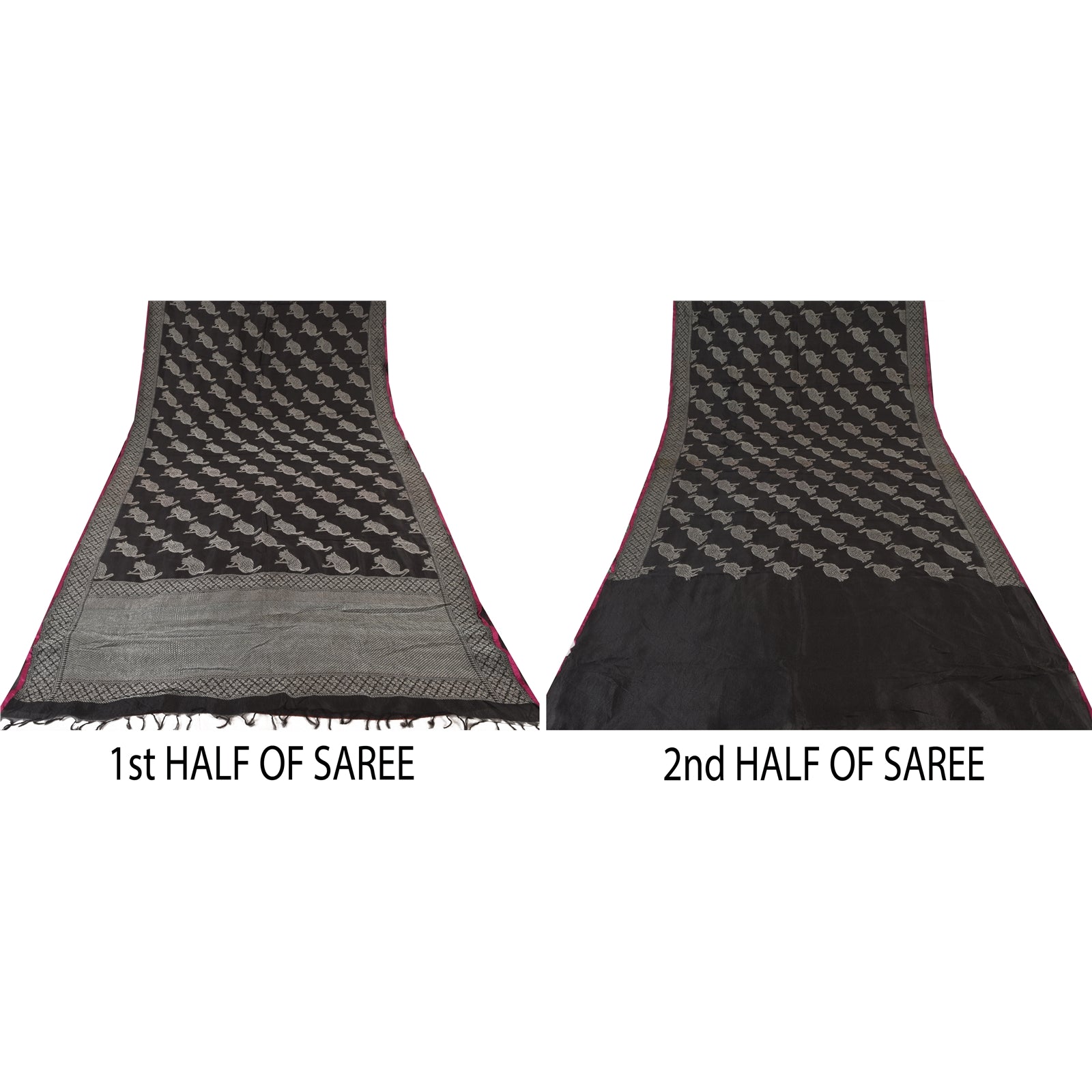 Sanskriti Vintage Indian Black Sarees Pure Silk Woven Ethnic Sari Craft Sustainable Fabric