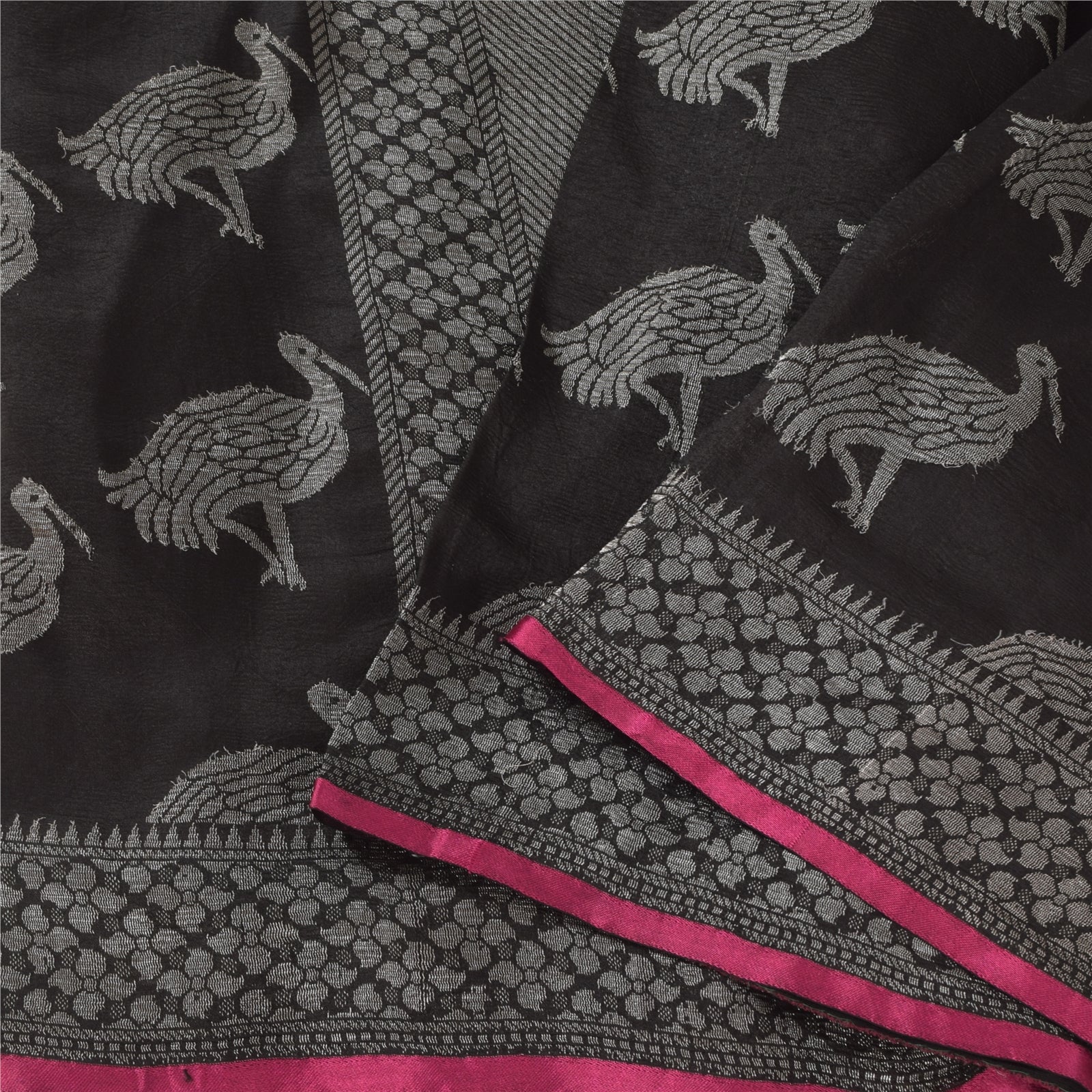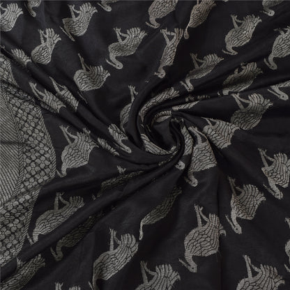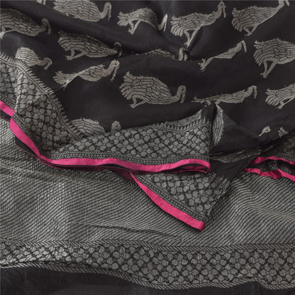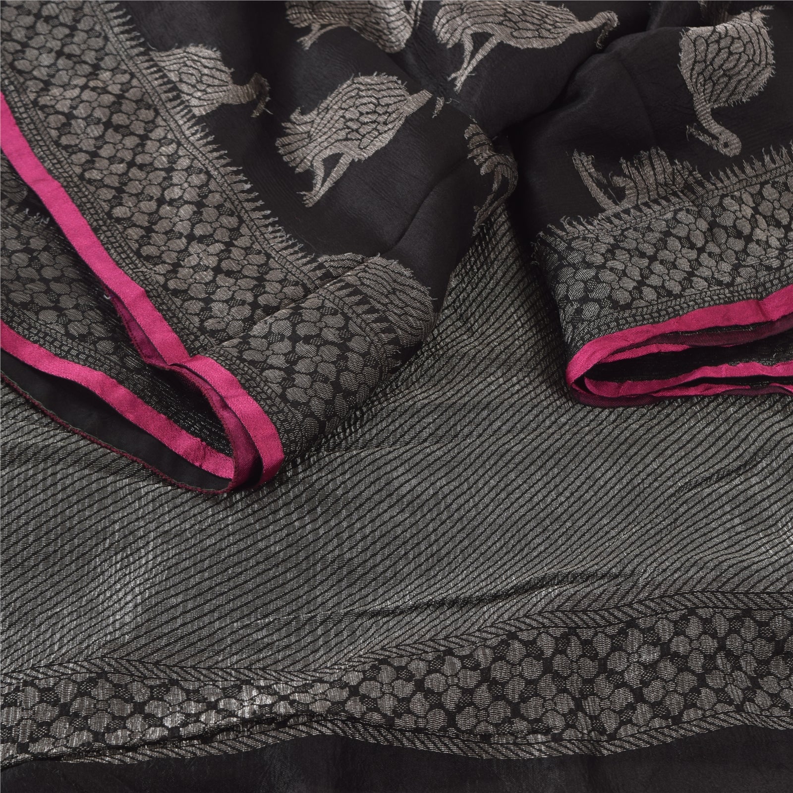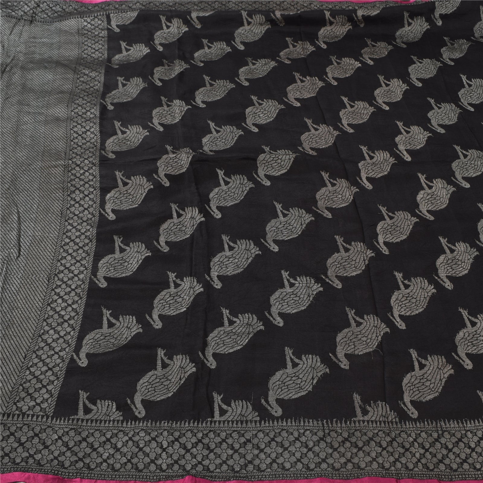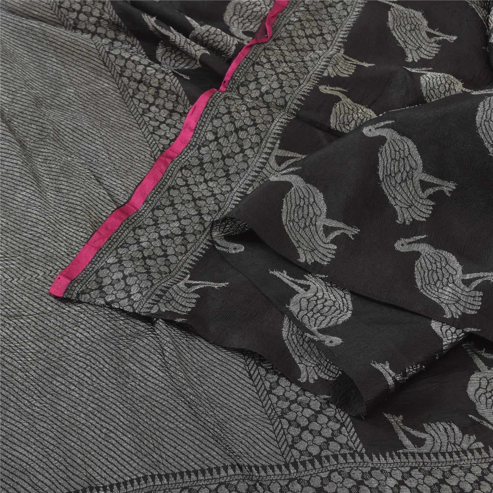 Sanskriti Vintage Indian Black Sarees Pure Silk Woven Ethnic Sari Craft Sustainable Fabric