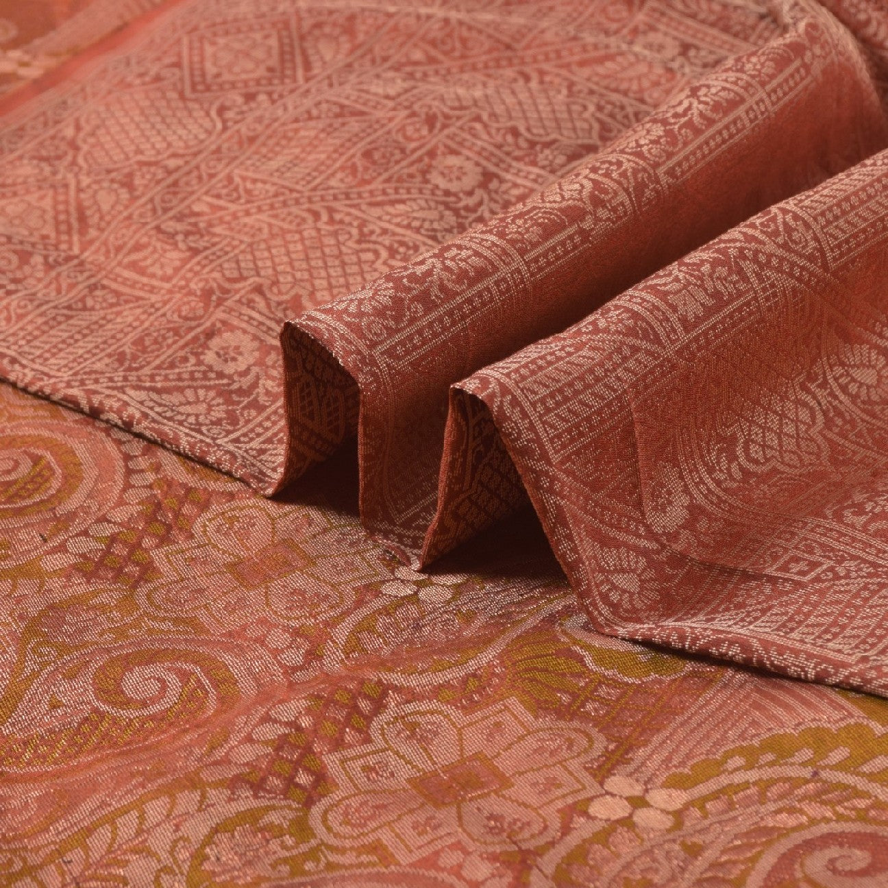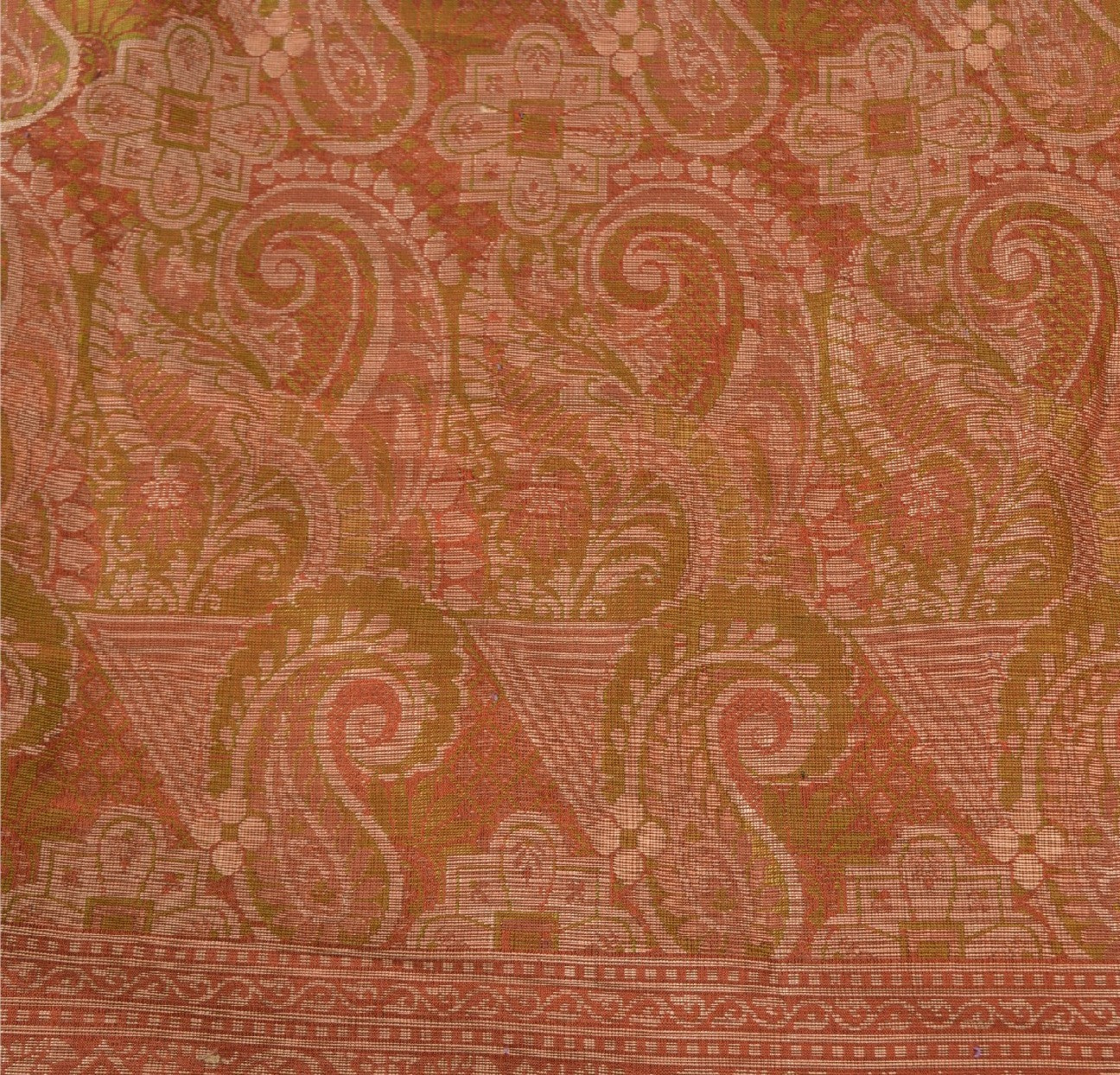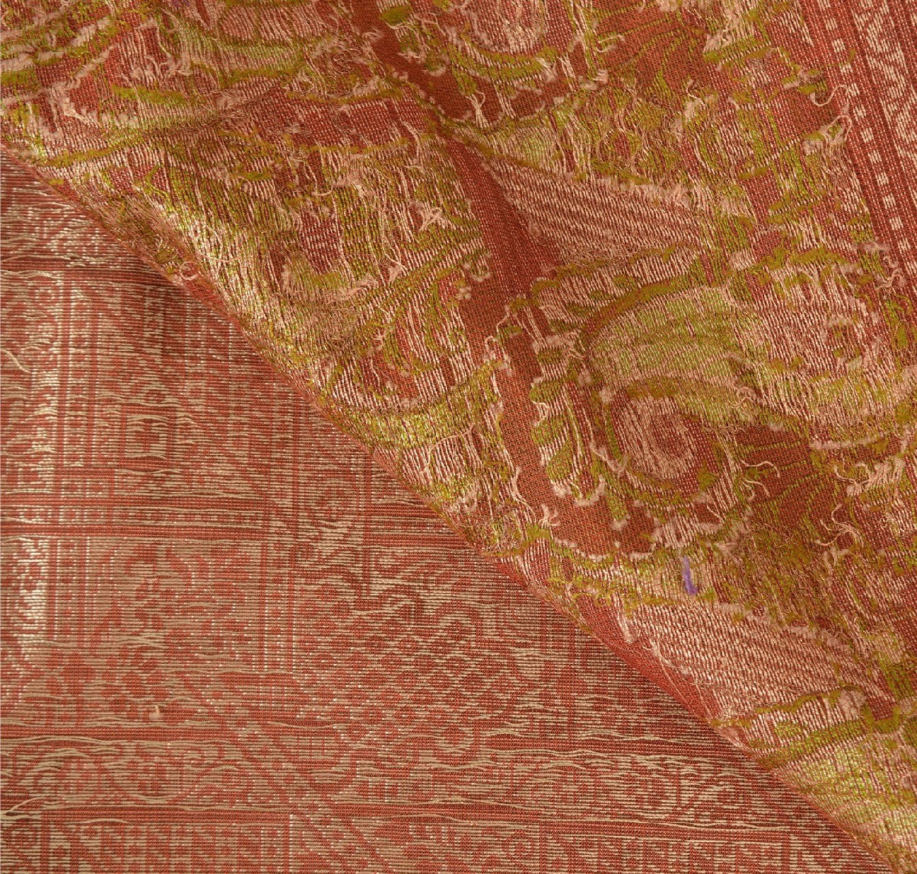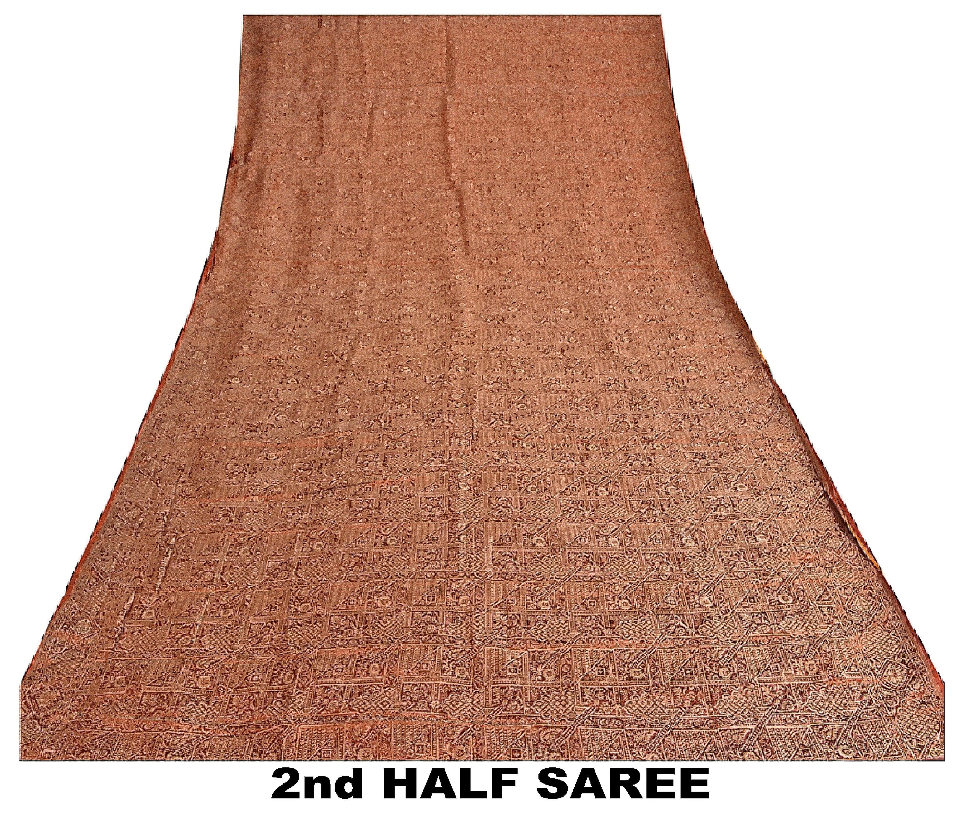 ? Beautiful brown colored woven pure silk sari ? Pallu & Border features floral & paisley design embellished with cream/green/golden weaving work makes the sari look ravishing ? There are floral motifs with similar work in center part of sari. What is special about this saree? Nice woven work with floral design on brown color base Sustainable Fabric is really enhancing the beauty of the saree. This unique vintage saree can be used for various crafting ideas even if you don't want to use it as a sari. Design a dress, use it as a throw, as window dressing, upholstery, sarongs, table linen and much more. Let your creative juices flow and use this decorated Sustainable Fabric in multiple fashion.