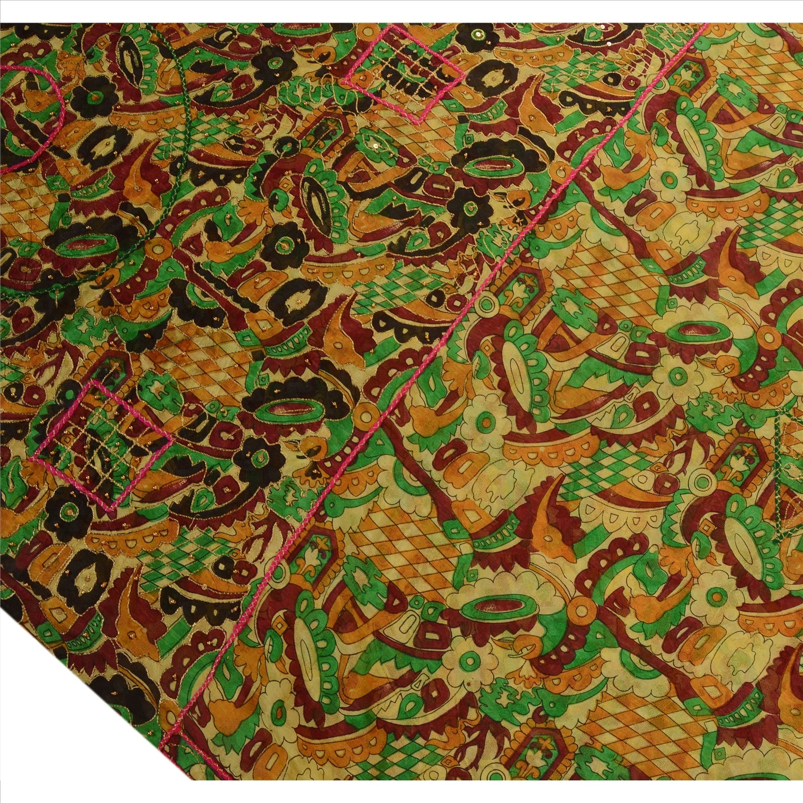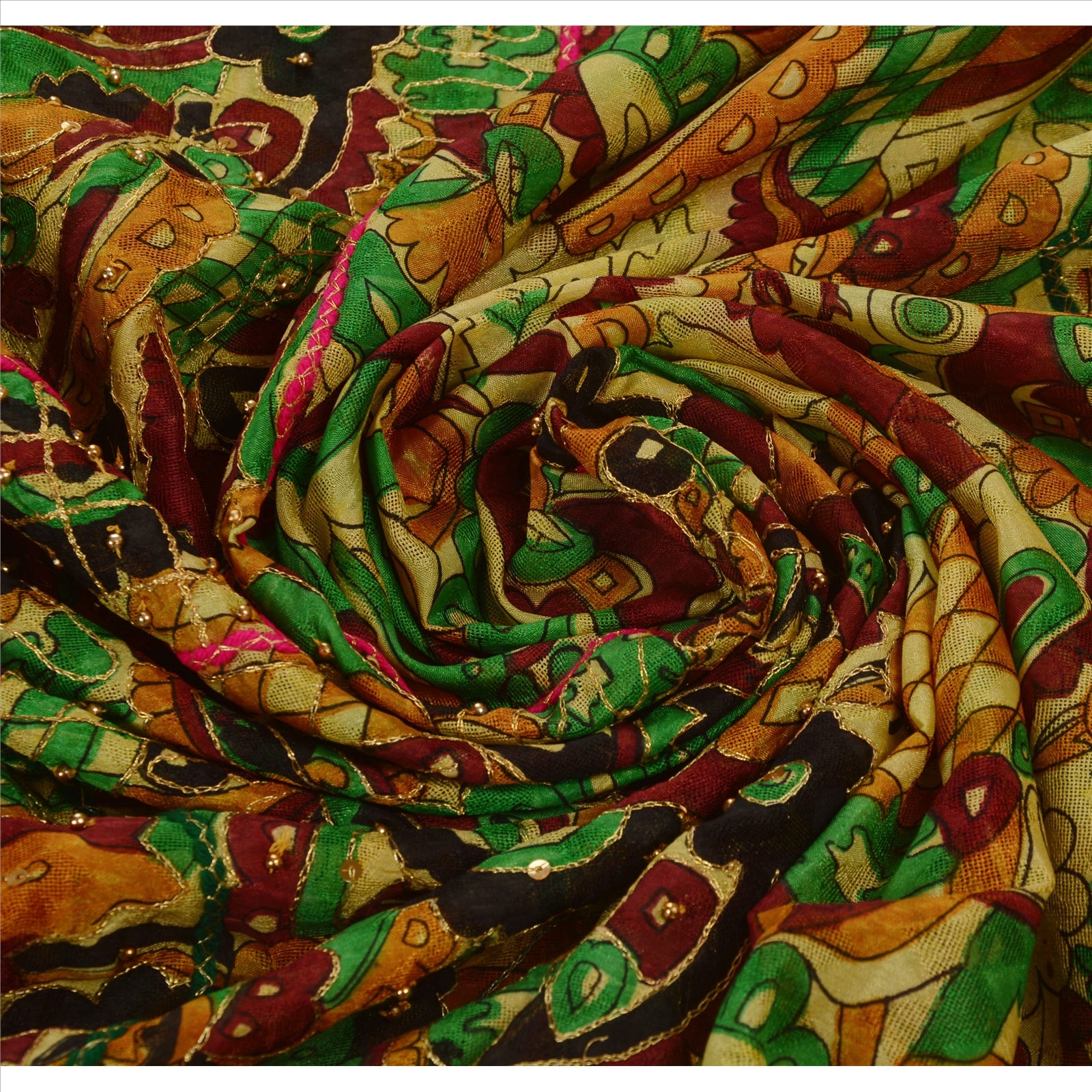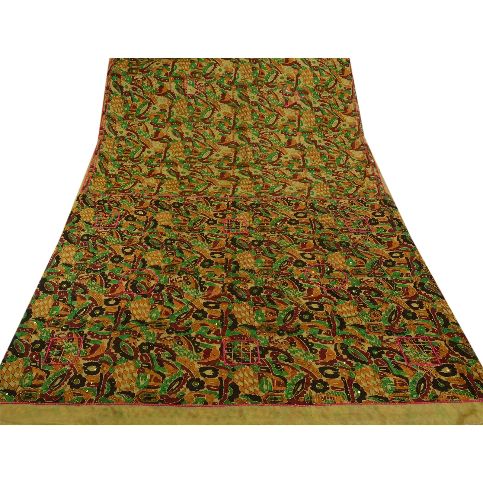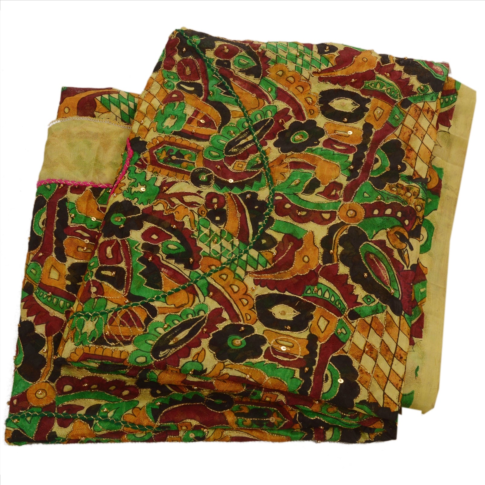 Sanskriti Vintage Indian Saree Art Silk Hand Beaded Woven Sustainable Fabric Zari Sari