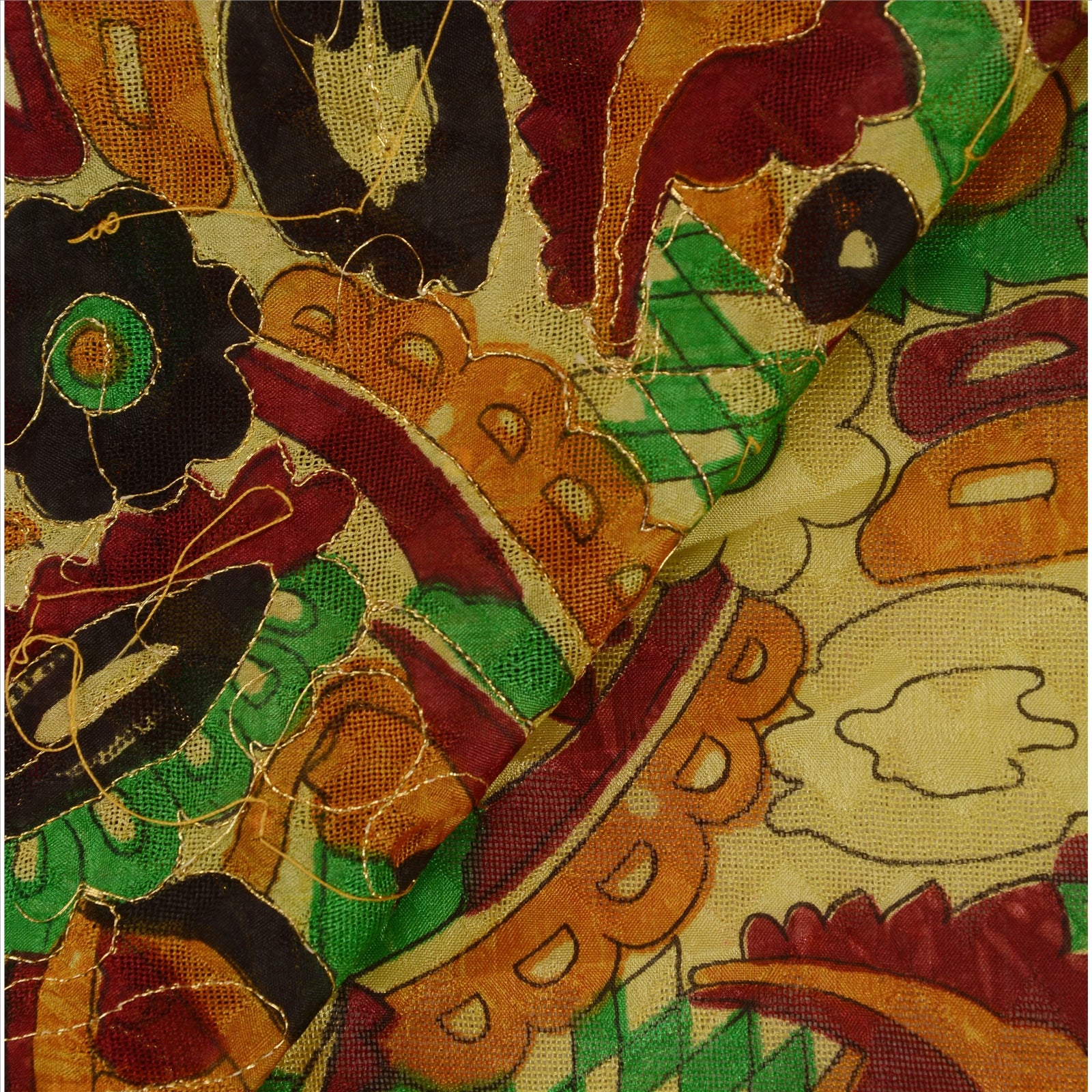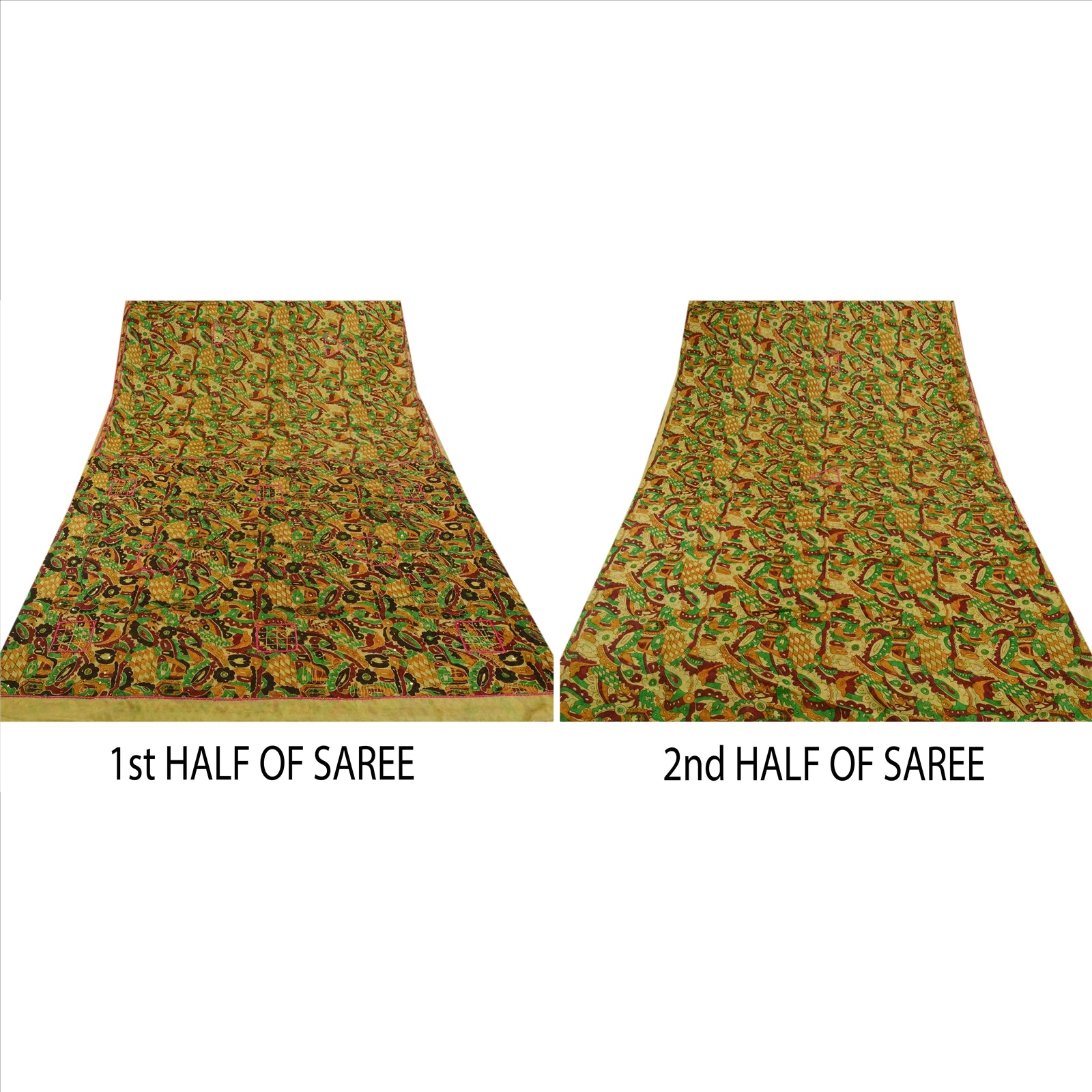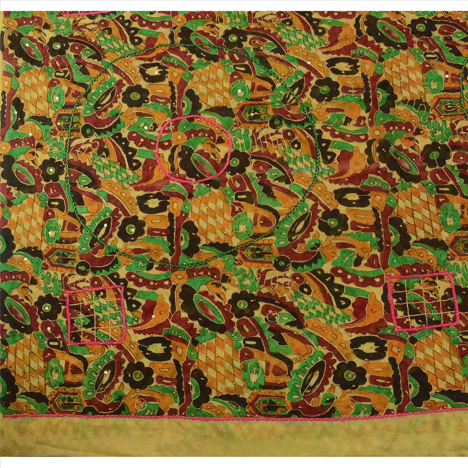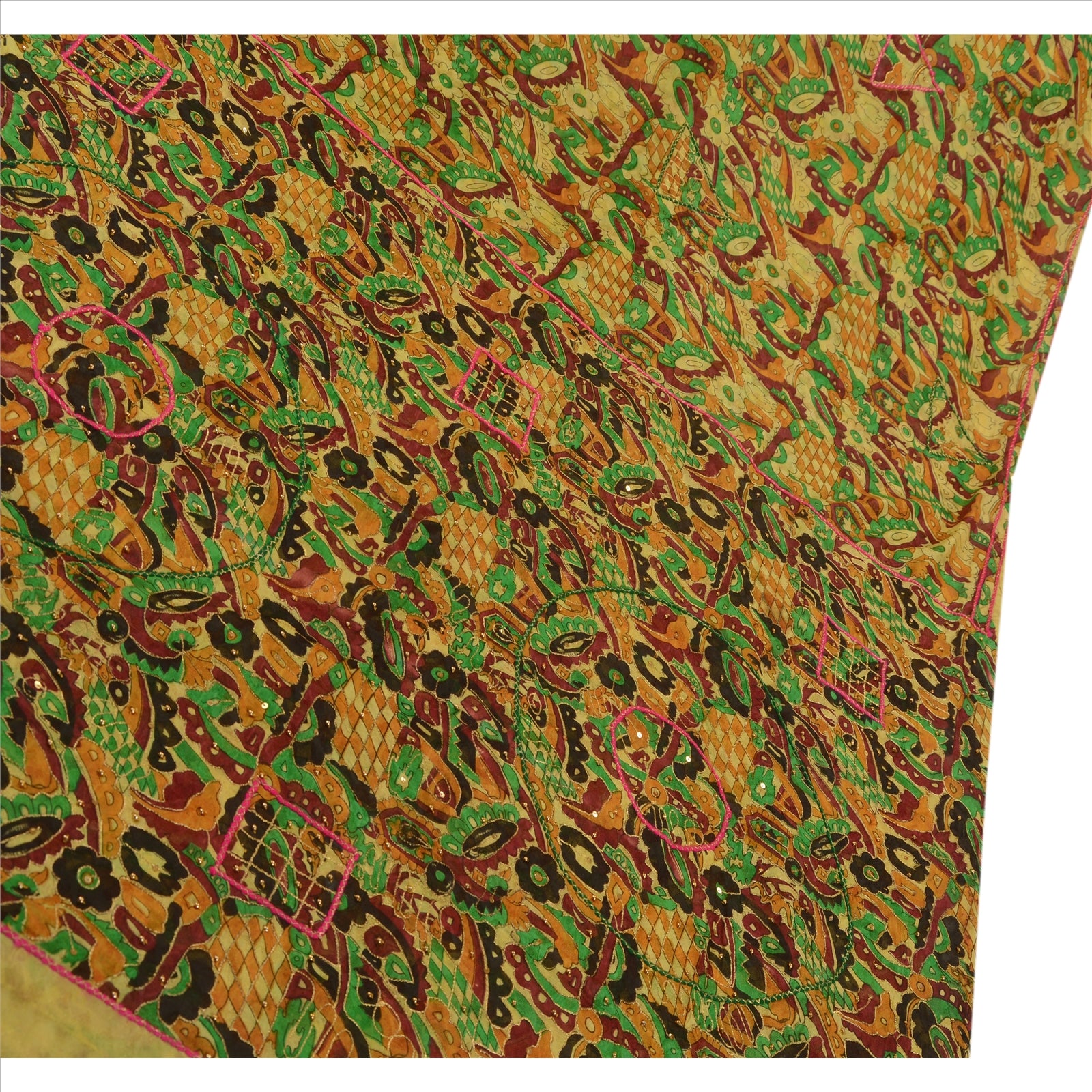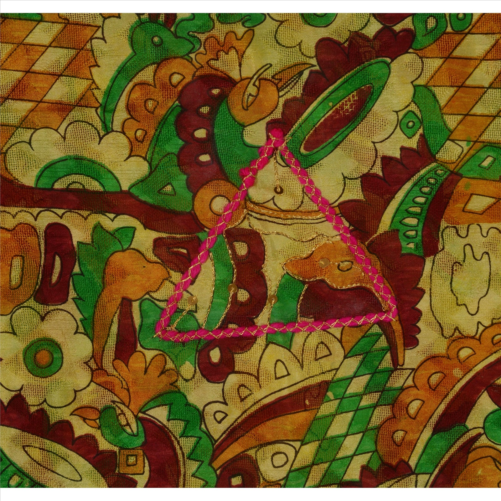 Sanskriti Vintage Indian Saree Art Silk Hand Beaded Woven Sustainable Fabric Zari Sari