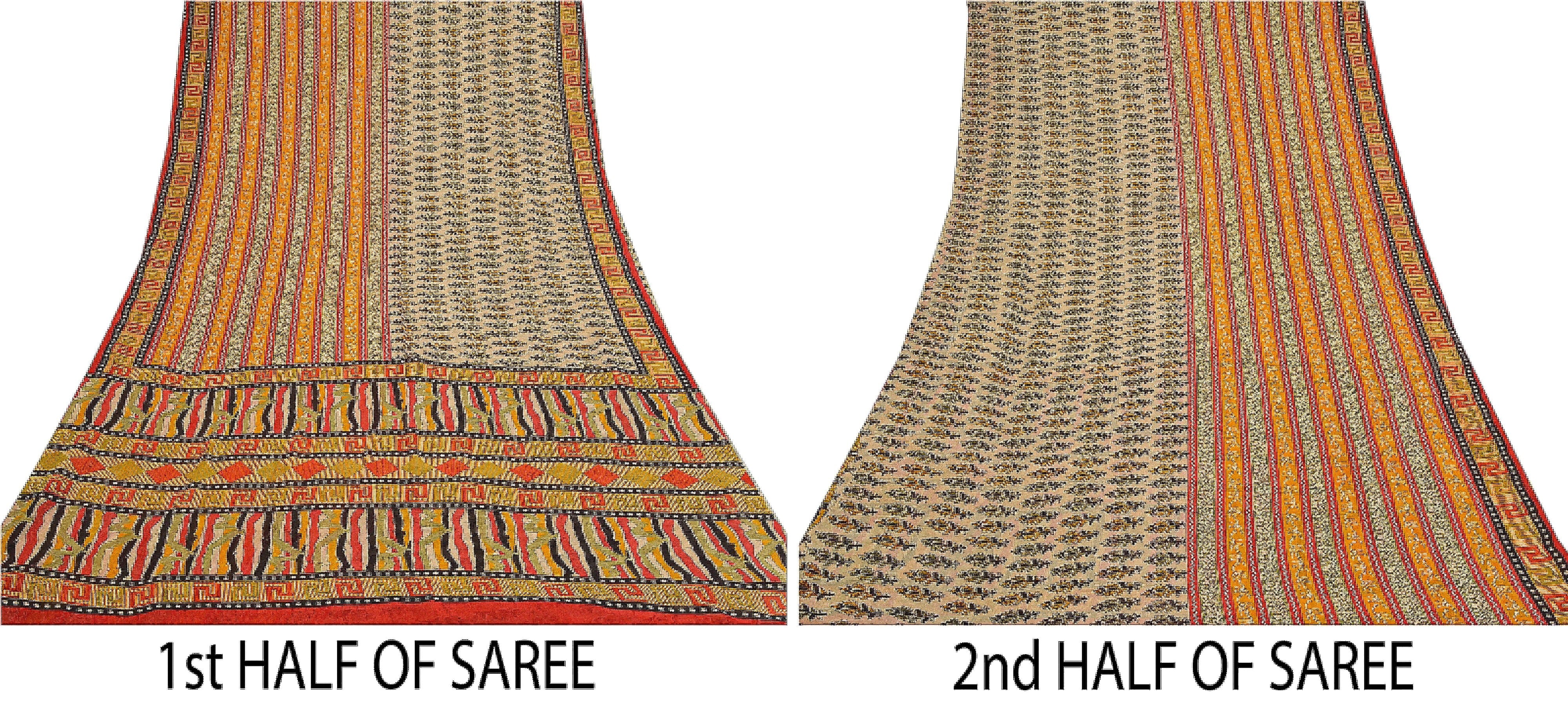 Sanskriti Vintage Indian Sarees Pure Georgette Silk Printed Sari Craft Sustainable Fabric