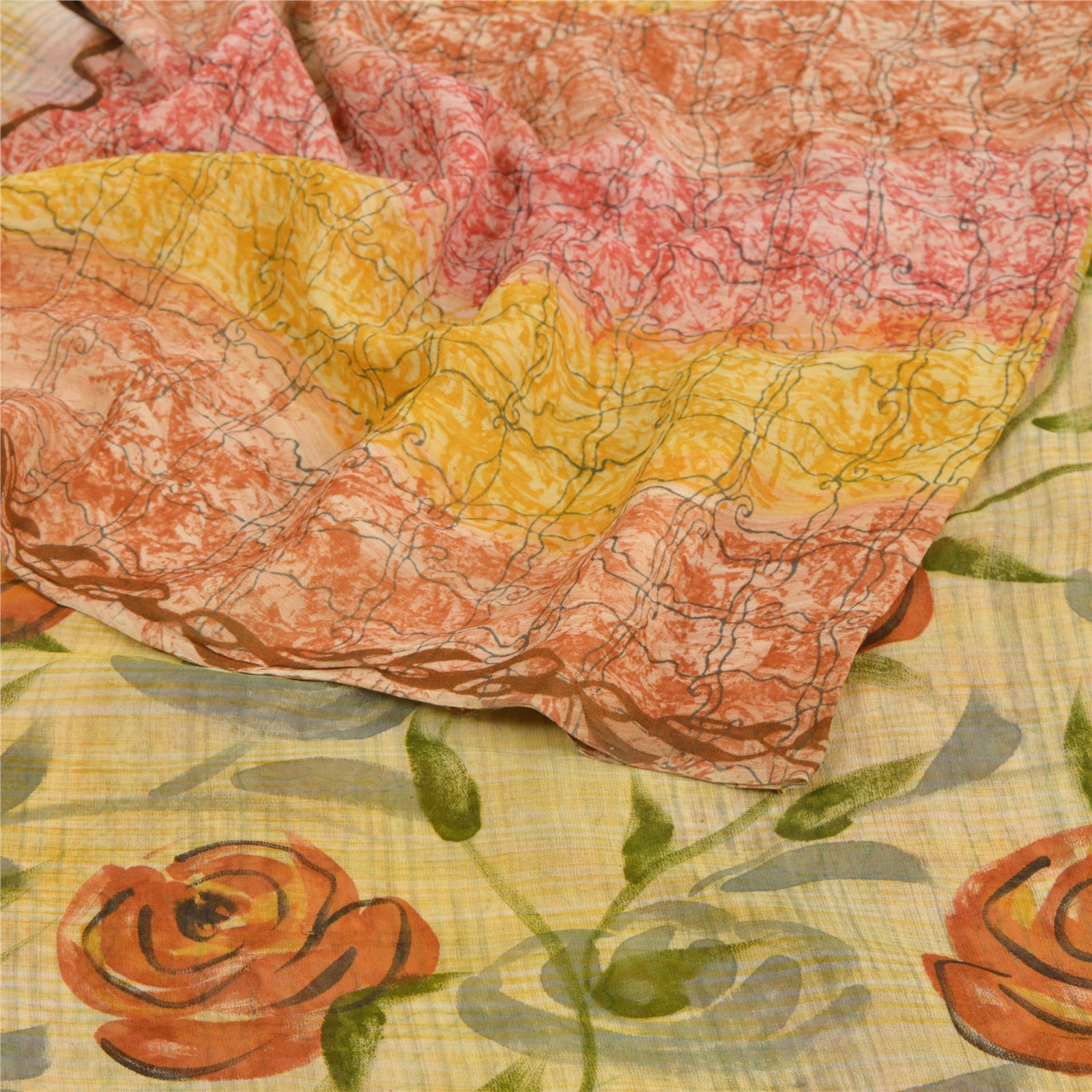 • Lovely multicolored printed pure georgette silk saree. • Pallu & Border has printed floral design. • Abstract design in center part of sari. This unique vintage saree can be used for various crafting ideas even if you don't want to use it as a sari. Design a dress, use it as a as window dressing, upholstery, sarongs, throw, dress making and table linen much more. Let your creative juices flow and use this decorated Sustainable Fabric in multiple fashion.
