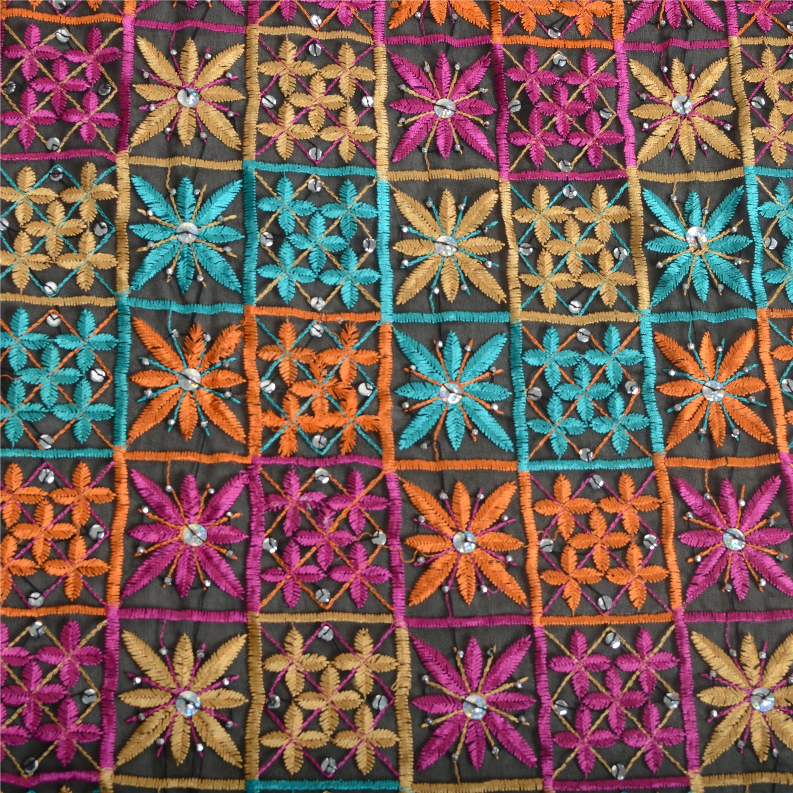 THE ITEM COLOR OR SHADE MAY BE DARKER OR LIGHTER THAN THE PICTURE. Beautiful black colored chiffon hand embordered bagh phulkari long scarf/dupatta. Border of dupatta has floral design with multicolor thread & sequins work. Similar work in center part of dupatta. This dupatta/stole can be used for various crafting ideas too. Use it for dress designing, as a throw, as window dressing, upholstery, table linen and much more. Let your creative juices flow. These Items are pre-owned and well preserved. Shipping Note: International buyers please note: Import duties, taxes, and charges are not included in the item price or postage cost. These charges are the buyer's responsibility. Please check with your country's customs office to determine what these additional costs will be prior to bidding or buying. Buyer will pay custom duty/tax. It is calculated and charged differently by every country. As a seller I do not have any control over it. VAT or sales tax is calculated by the platform at the time of checkout. Customs charge is payable at the time of delivery.'