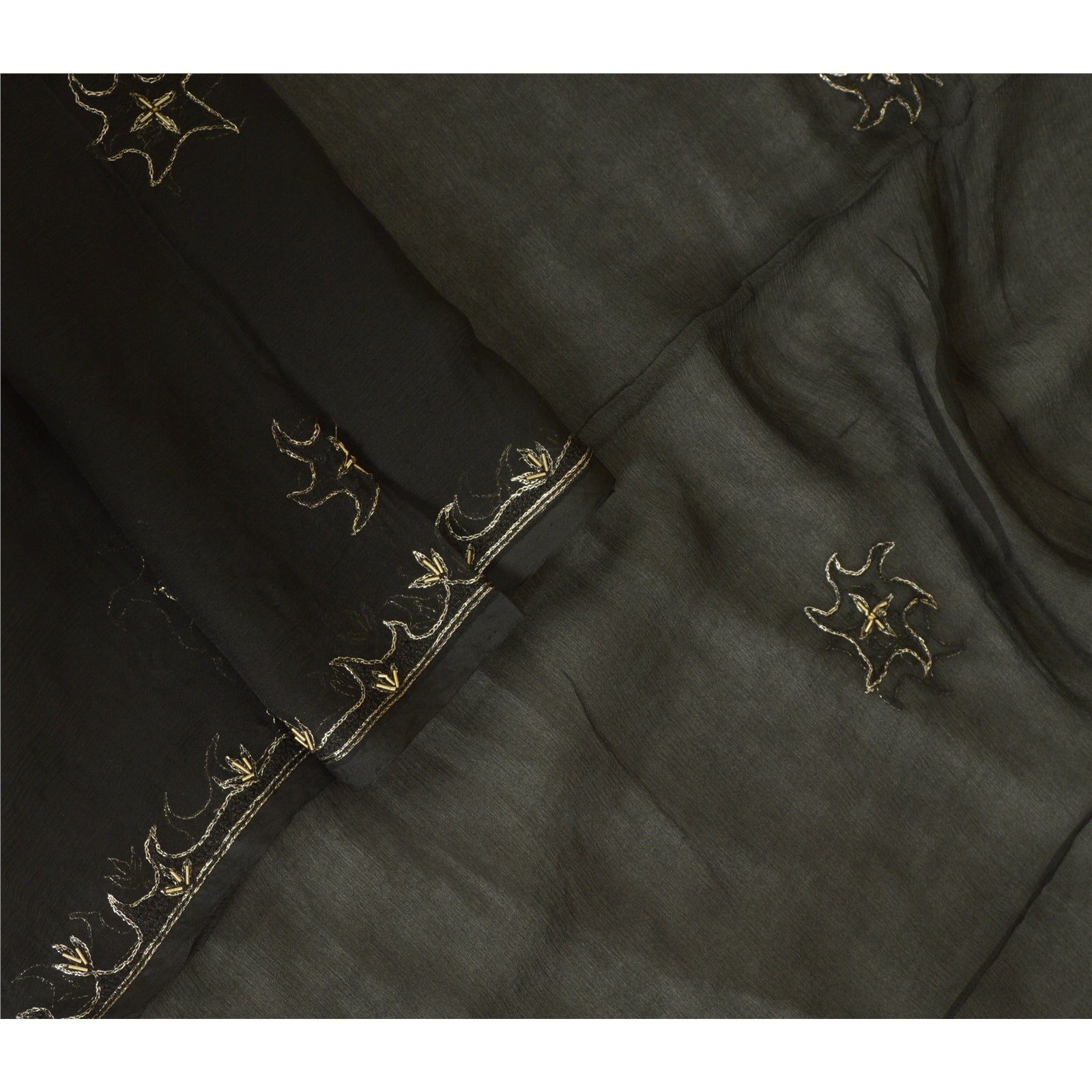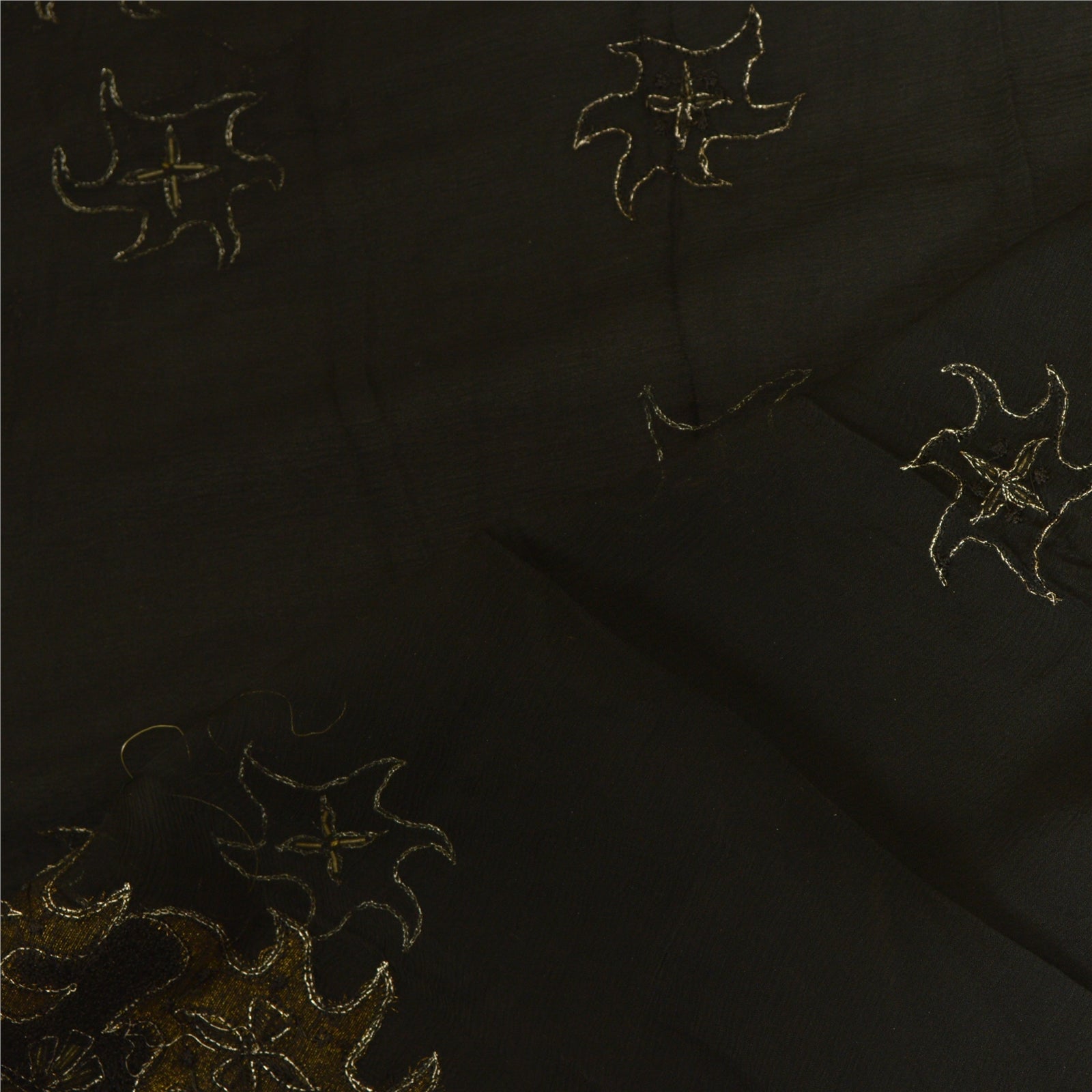 'THE ITEM COLOR OR SHADE MAY BE DARKER OR LIGHTER THAN THE PICTURE.' Beautiful black colored 100% pure chiffon silk hand embroidered long scarf/dupatta. Center portion of the dupatta floral design with zari work. Border has floral design embroidered golden Sustainable Fabric patch work embellished with metallic golden zari/zardozi work, black thread work is really enhancing beauty of the dupatta/stole. This dupatta/stole can be used for various crafting ideas too. Use it for dress designing, as a throw, as window dressing, upholstery, table linen and much more. Let your creative juices flow. International buyers please note: Import duties, taxes, and charges are not included in the item price or postage cost. These charges are the buyer's responsibility. Please check with your country's customs office to determine what these additional costs will be prior to bidding or buying. Buyer will pay custom duty/tax. It is calculated and charged differently by every country. As a seller I do not have any control over it. VAT or sales tax is calculated by the platform at the time of checkout. Customs charge is payable at the time of delivery.'