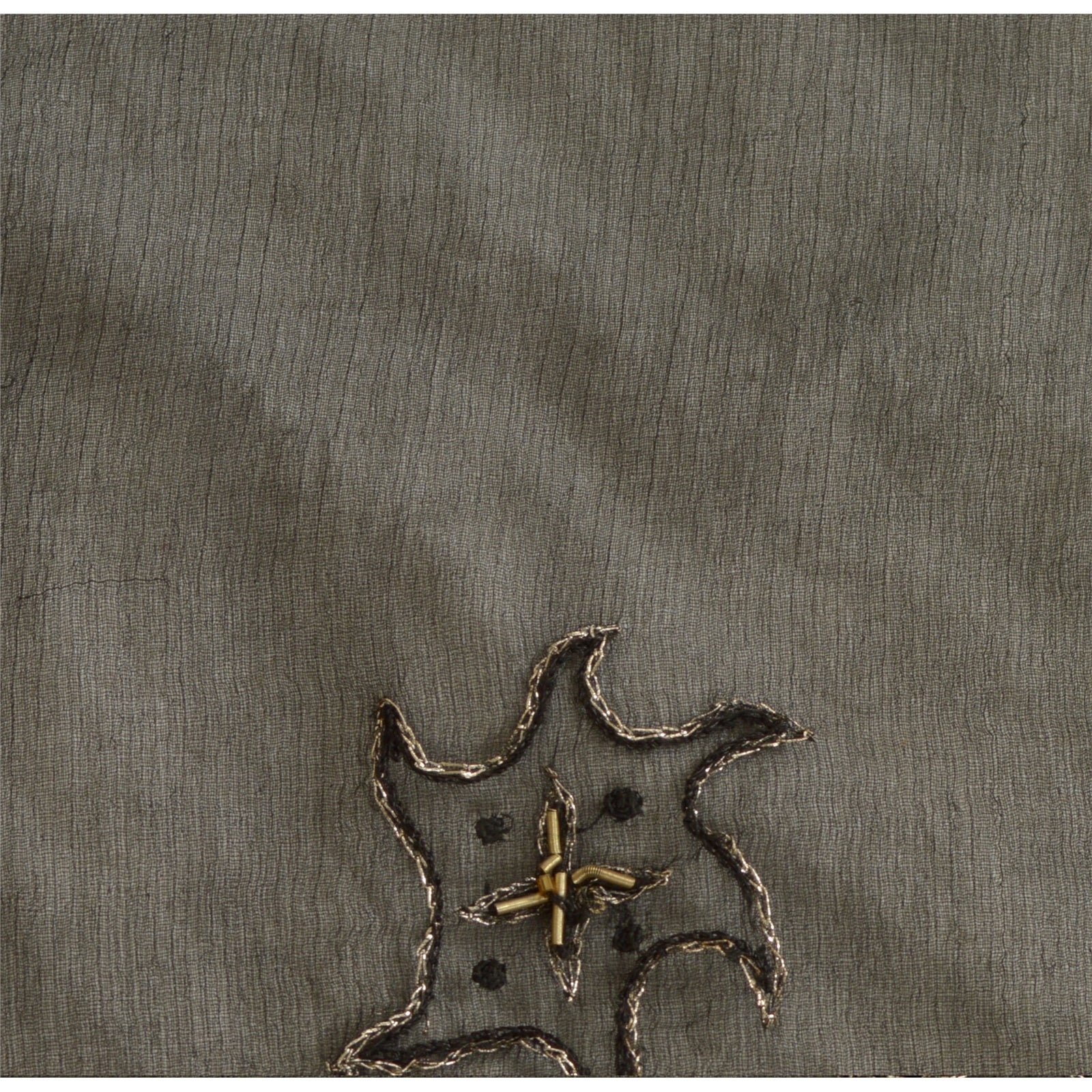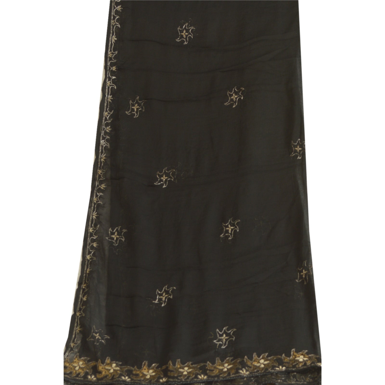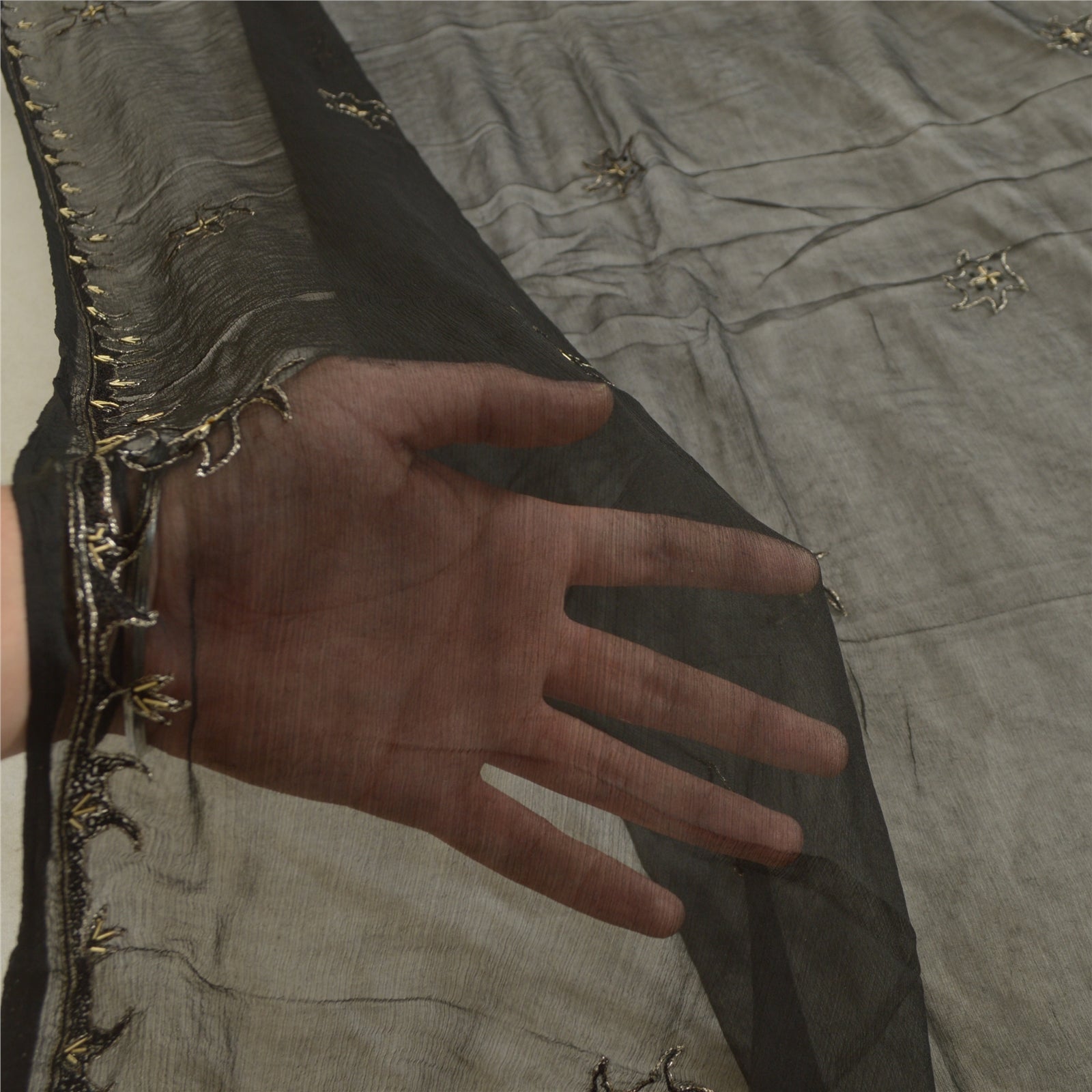 Sanskriti Vintage Long Black Dupatta/Stole Pure Chiffon Silk Hand Beaded Scarves