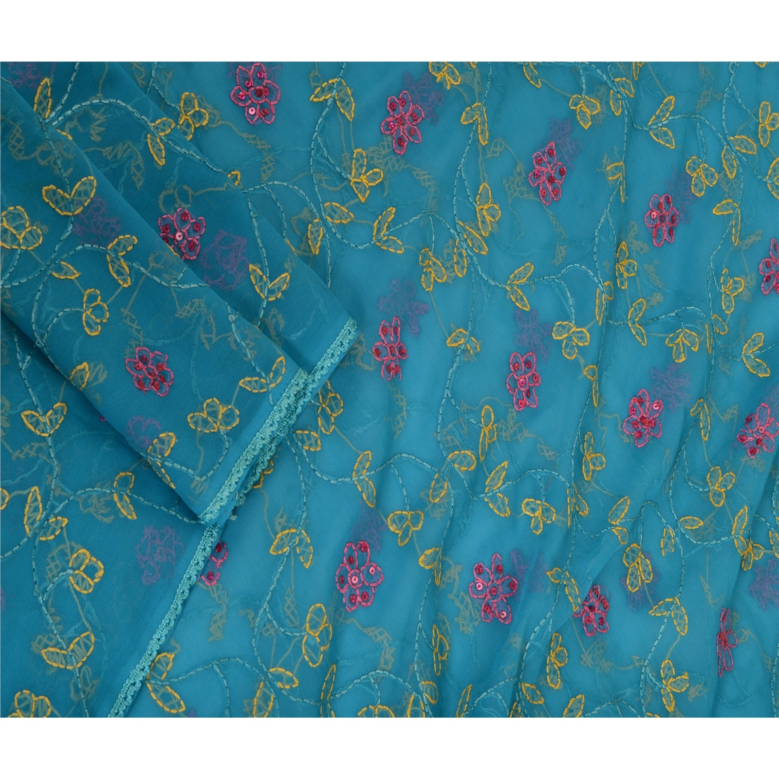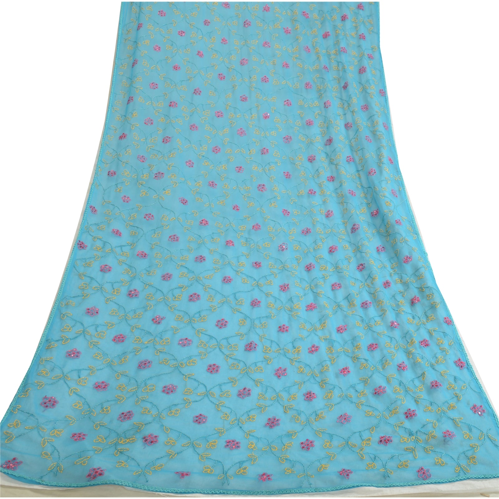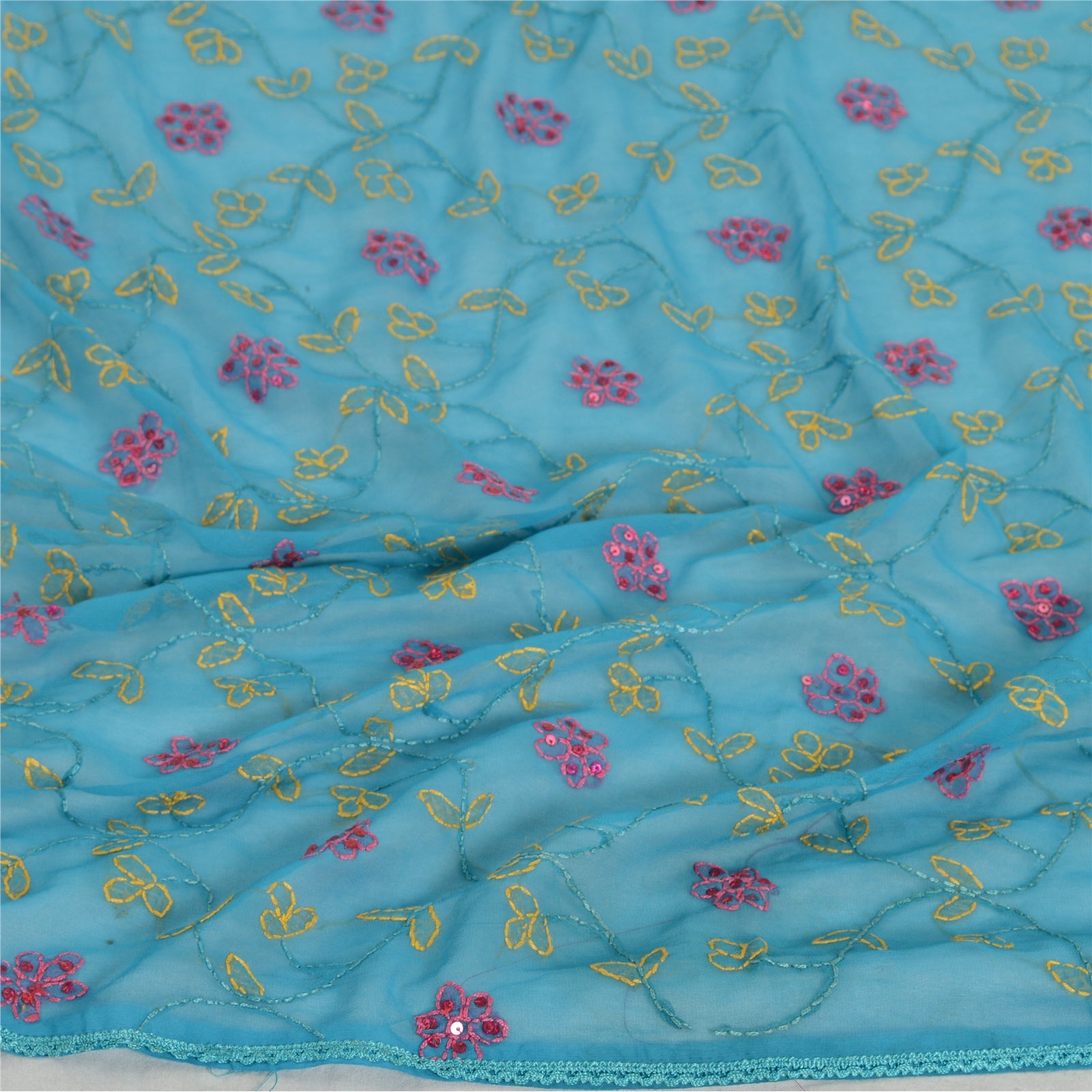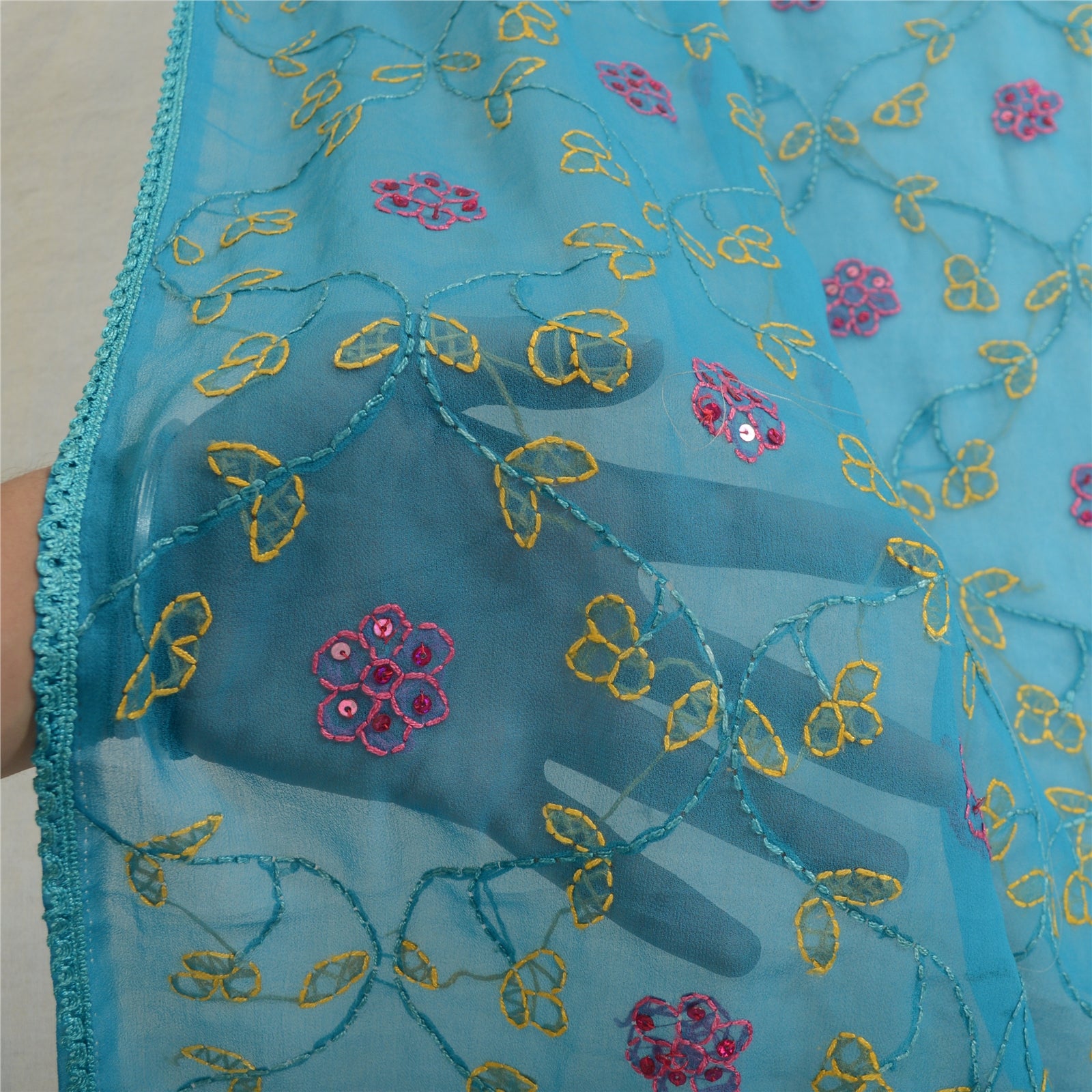'THE ITEM COLOR OR SHADE MAY BE DARKER OR LIGHTER THAN THE PICTURE.' Beautiful blue colored georgette (not pure Sustainable Fabric) hand embroidered Chikankari long scarf/dupatta. All over stole has Traditional chikankari thread work with floral design is really enhancing beauty of the dupatta/stole. Dupatta has blue lace work on borders. This dupatta/stole can be used for various crafting ideas too. Use it for dress designing, as a throw, as window dressing, upholstery, table linen and much more. Let your creative juices flow. International buyers please note: Import duties, taxes, and charges are not included in the item price or postage cost. These charges are the buyer's responsibility. Please check with your country's customs office to determine what these additional costs will be prior to bidding or buying. Buyer will pay custom duty/tax. It is calculated and charged differently by every country. As a seller I do not have any control over it. VAT or sales tax is calculated by the platform at the time of checkout. Customs charge is payable at the time of delivery.'