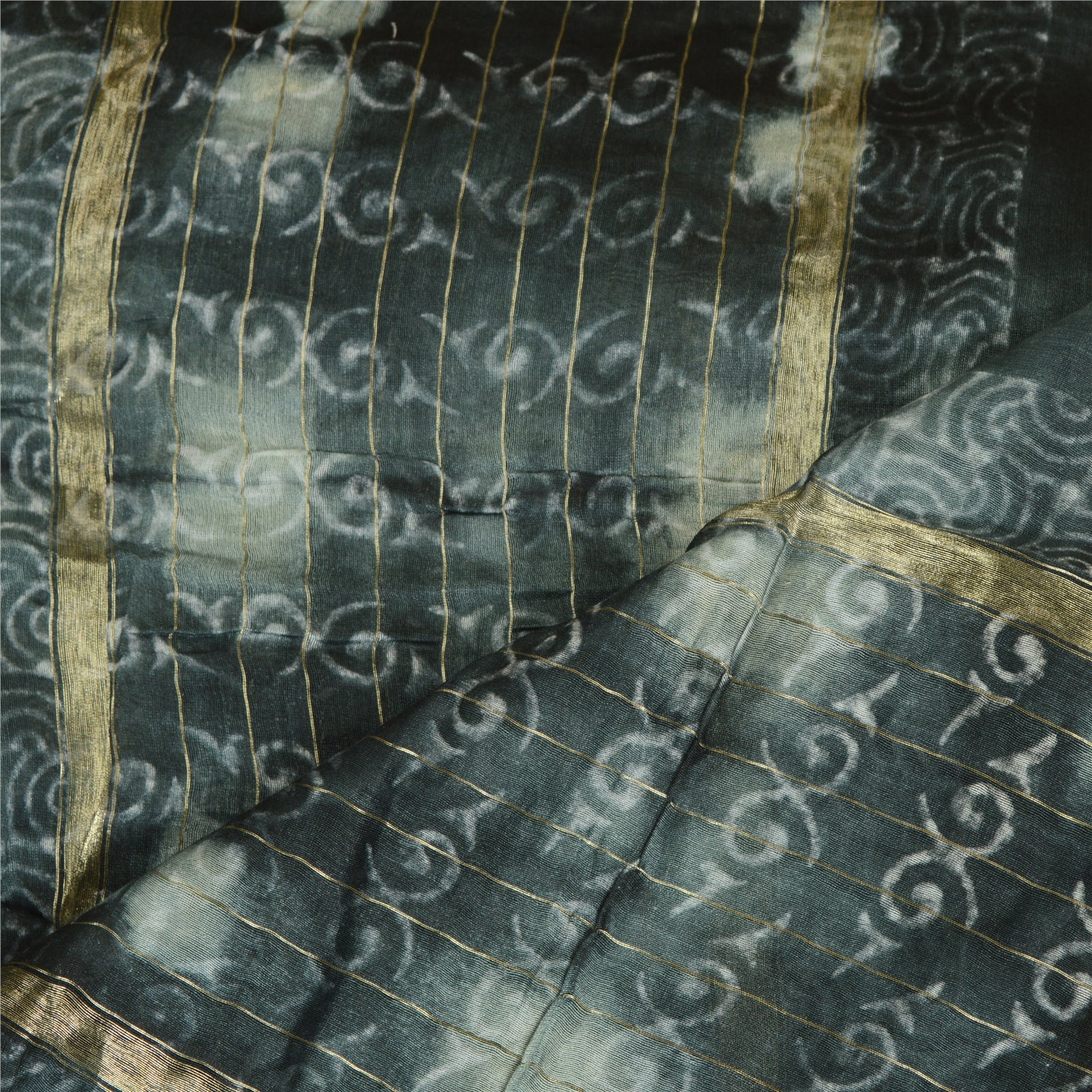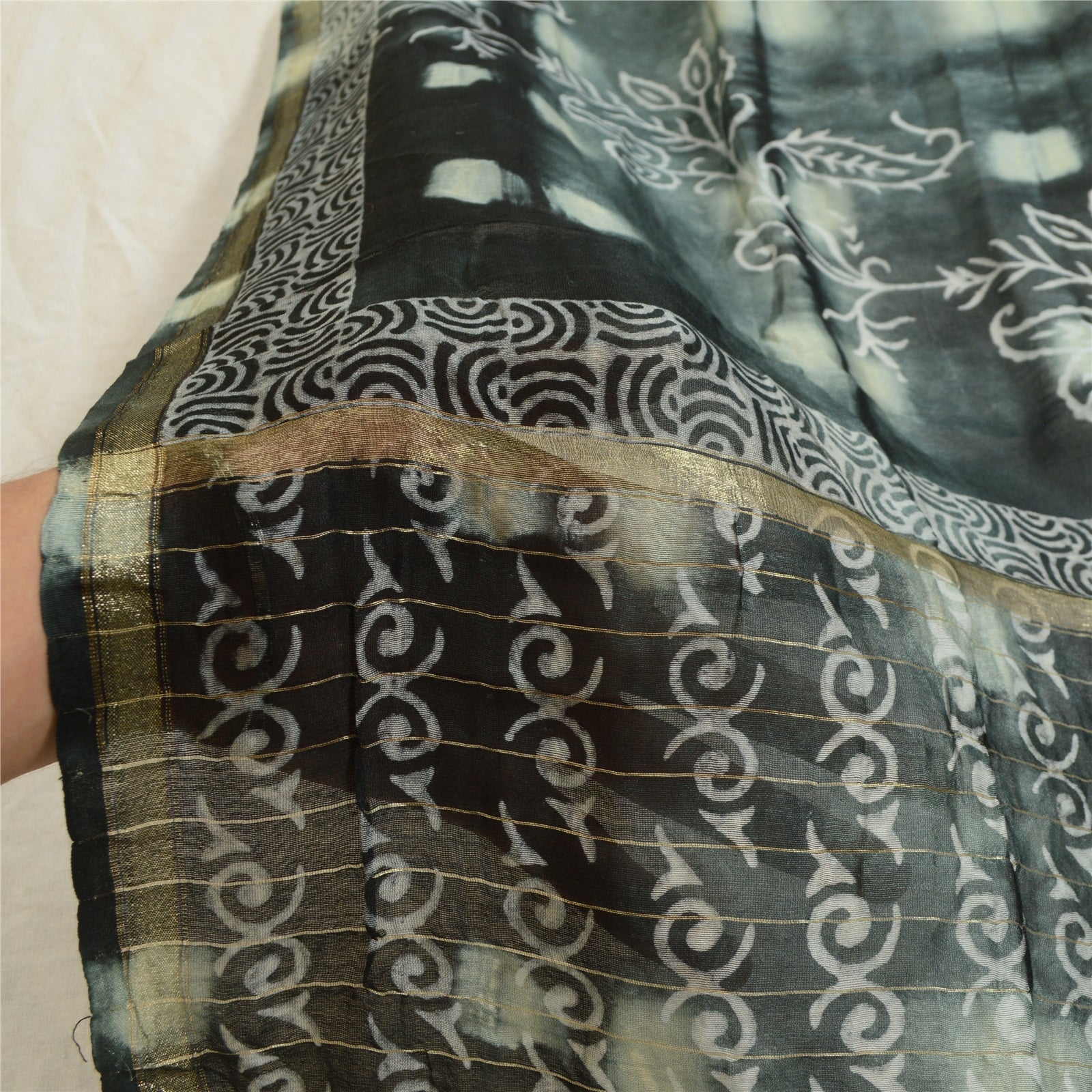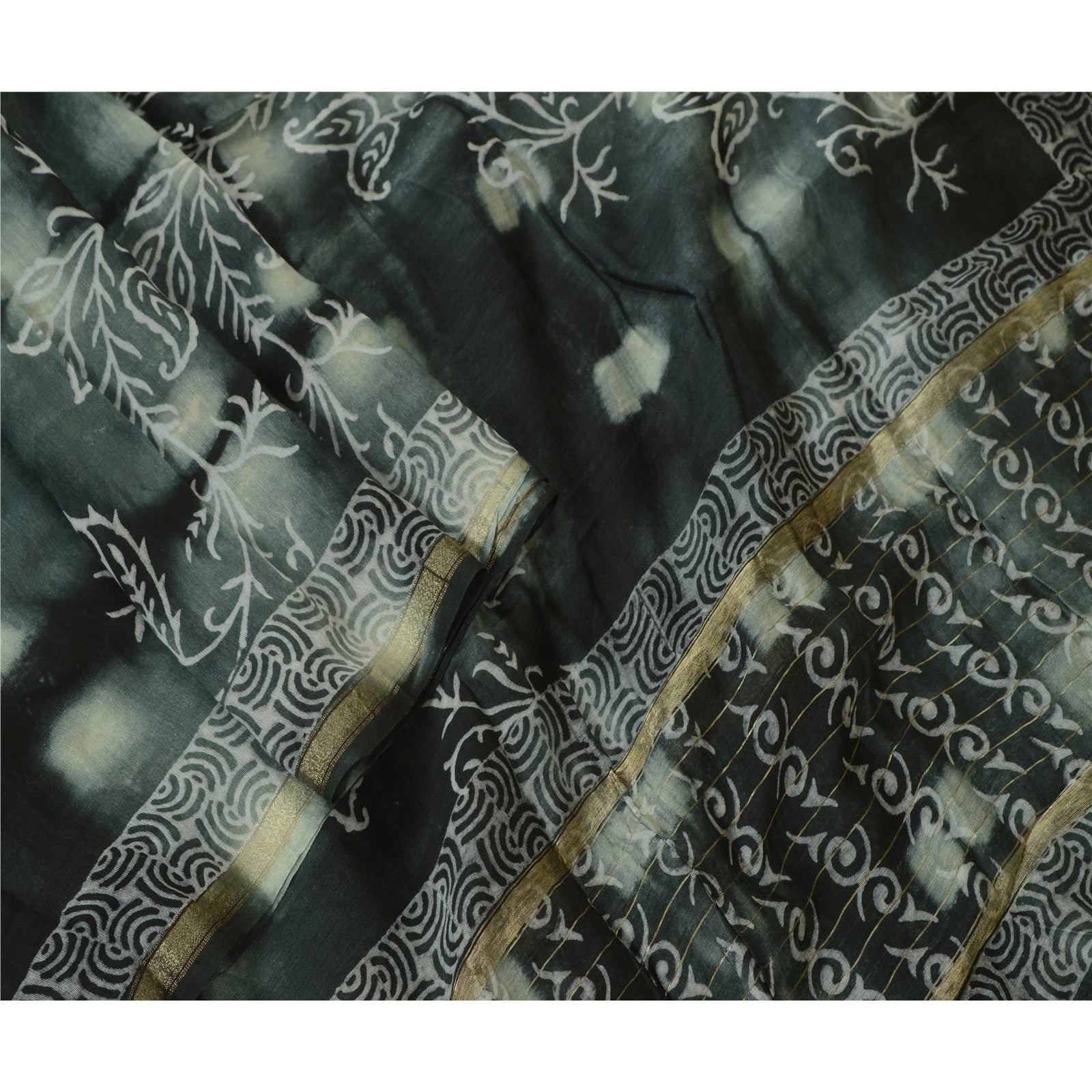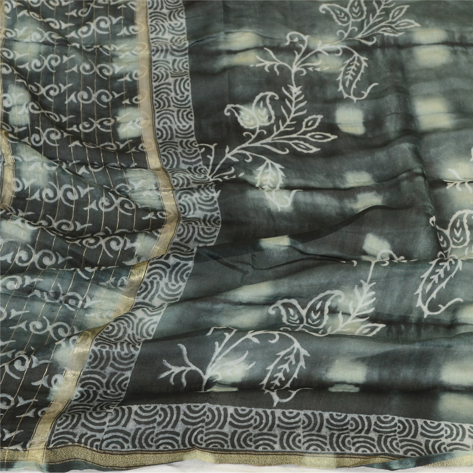 'THE ITEM COLOR OR SHADE MAY BE DARKER OR LIGHTER THAN THE PICTURE.' Beautiful shade of grey & black colored pure chanderi silk hand-block print & tie-dye dupatta/stole. Center portion of the dupatta printed gigantic floral design with tie- dye work. This dupatta is superb combination of dual work, you can see adorable hand-block printed floral design & tie-dye work with golden woven work is really enhancing beauty of the dupatta/stole. Dupatta has matching fringes on both ends of borders. This dupatta/stole can be used for various crafting ideas too. Use it for dress designing, as a throw, as window dressing, upholstery, table linen and much more. Let your creative juices flow. International buyers please note: Import duties, taxes, and charges are not included in the item price or postage cost. These charges are the buyer's responsibility. Please check with your country's customs office to determine what these additional costs will be prior to bidding or buying. Buyer will pay custom duty/tax. It is calculated and charged differently by every country. As a seller I do not have any control over it. VAT or sales tax is calculated by the platform at the time of checkout. Customs charge is payable at the time of delivery.'