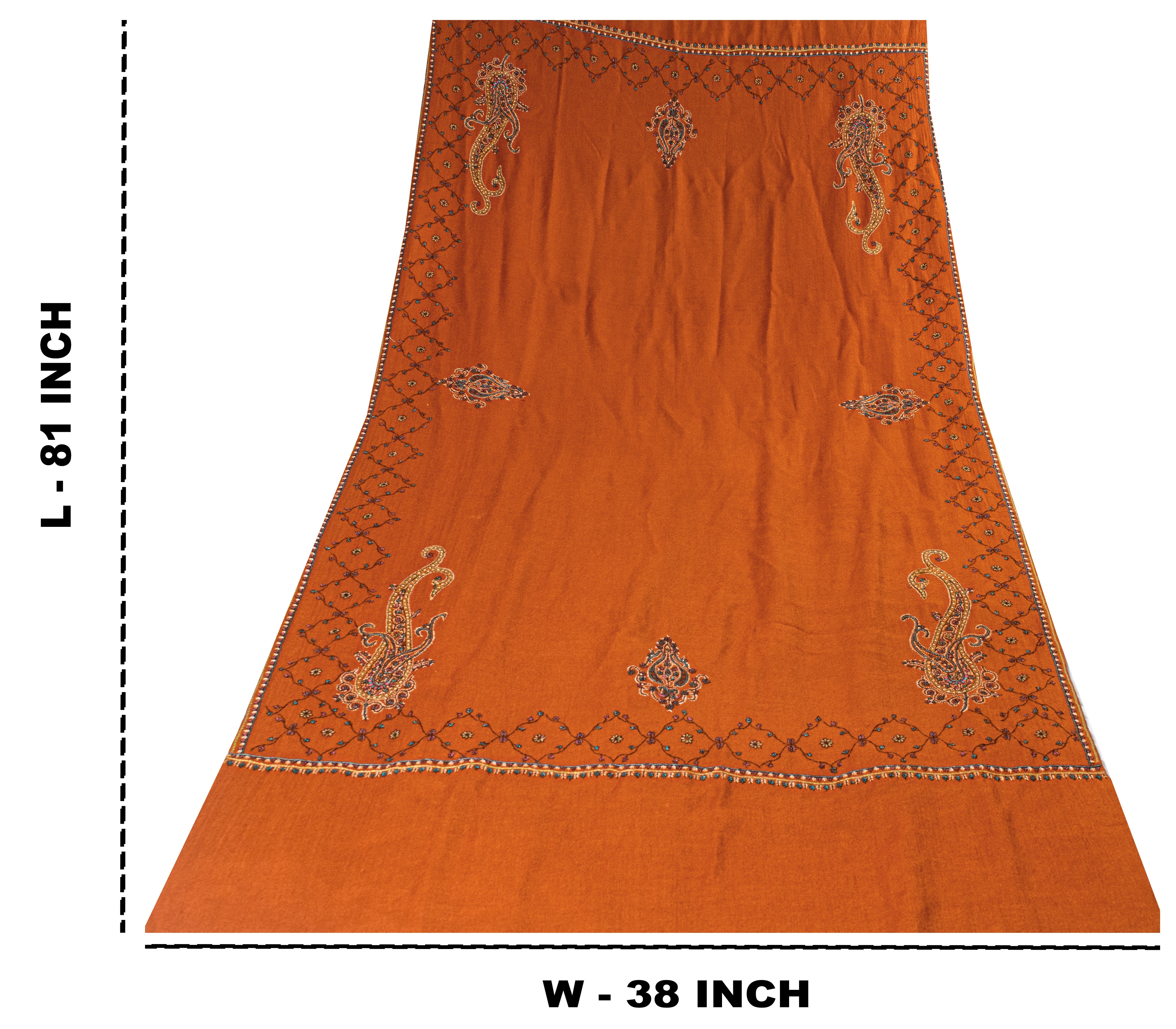 We Are Offering You A Vintage Orange Color 100% Pure Woolen Stole/Shawl Which Adorns Hand Embroidered Suzani Work. Center part has traditional handmade Suzani work with floral & paisley pattern. You can see similar embroidery with floral pattern on borders is really enhancing beauty of the shawl. Versatile Uses-Crafting, Repurpose, Creative Sewing Project, Dressmaking, Kaftans, Use It As A Stole Window Dressing, Upcycling, Sarongs, Throw,Table Linen,Decorative Fabric, Sustainable Indian Fabric. Wear this versatile piece as a scarf, stole or wrap with your favorite Jeans and top. THE ITEM COLOR OR SHADE MAY BE DARKER OR LIGHTER THAN THE PICTURE.' International buyers please note: Import duties, taxes, and charges are not included in the item price or postage cost. Buyer will pay custom duty/tax,VAT, and any applicable charges at the time of delivery. S-3013