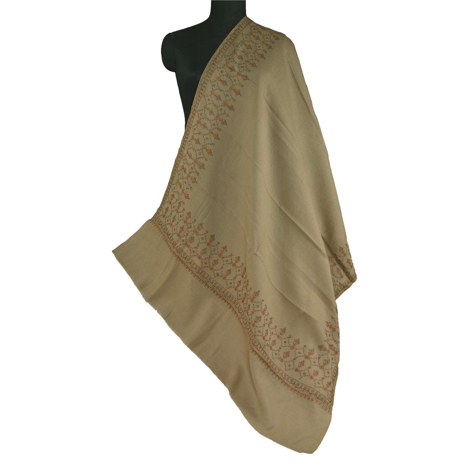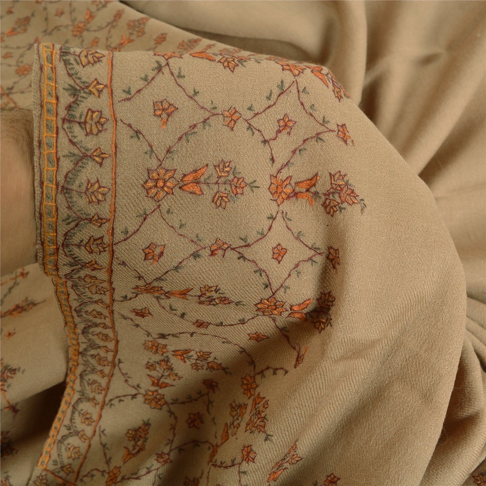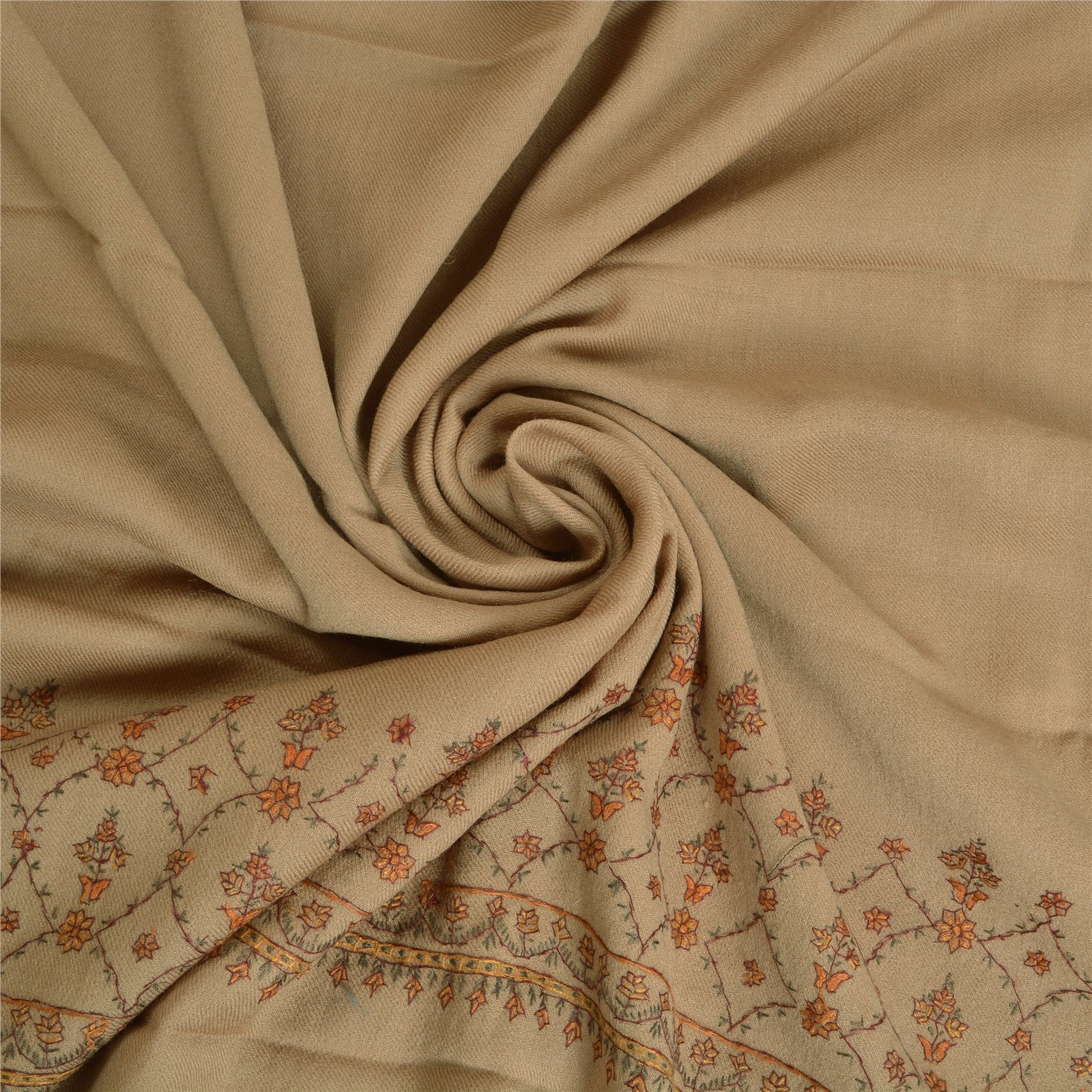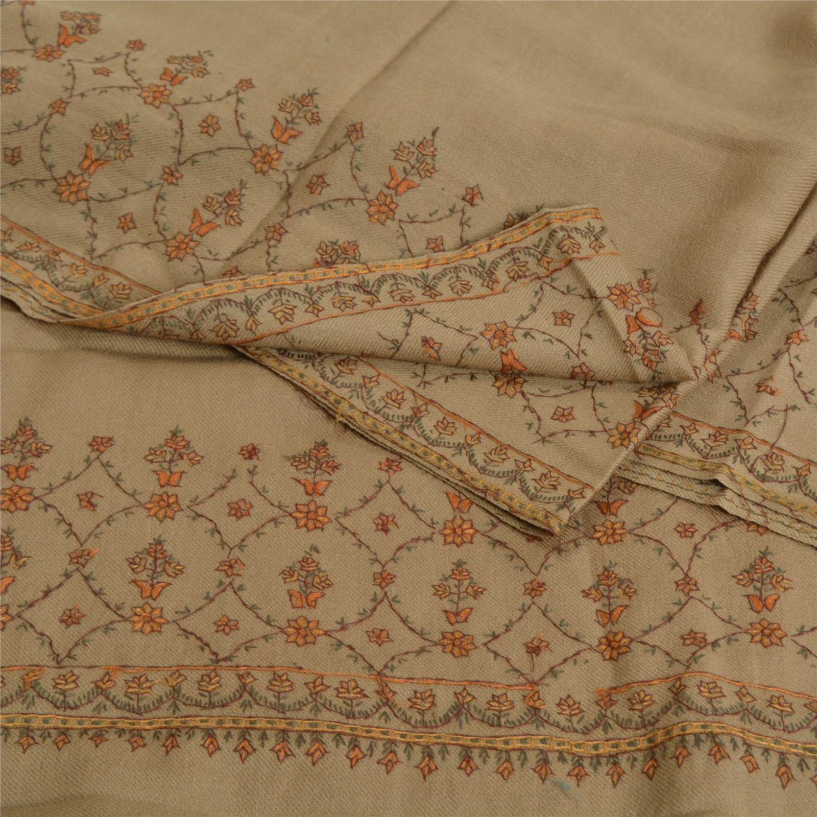 Sanskriti Vintage Long Pure Woollen Brown Shawl Handmade Suzani Scarf Stole