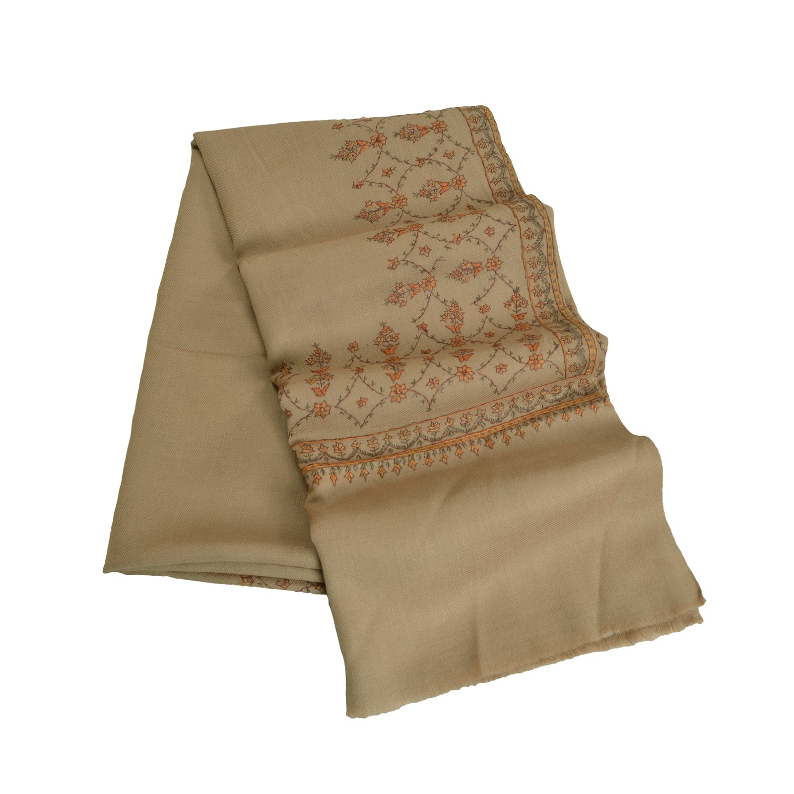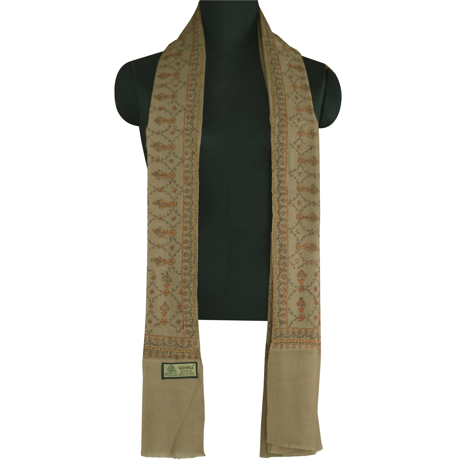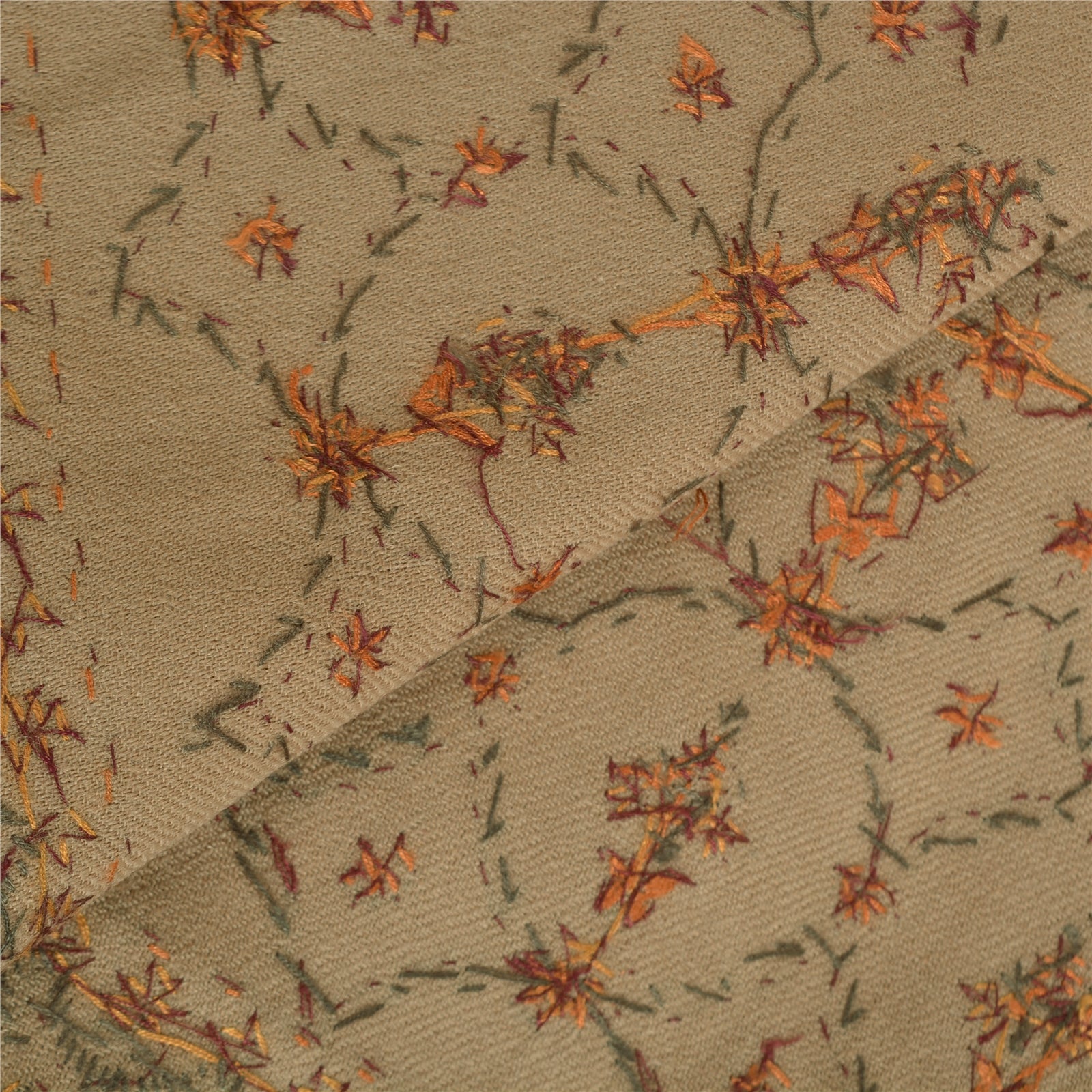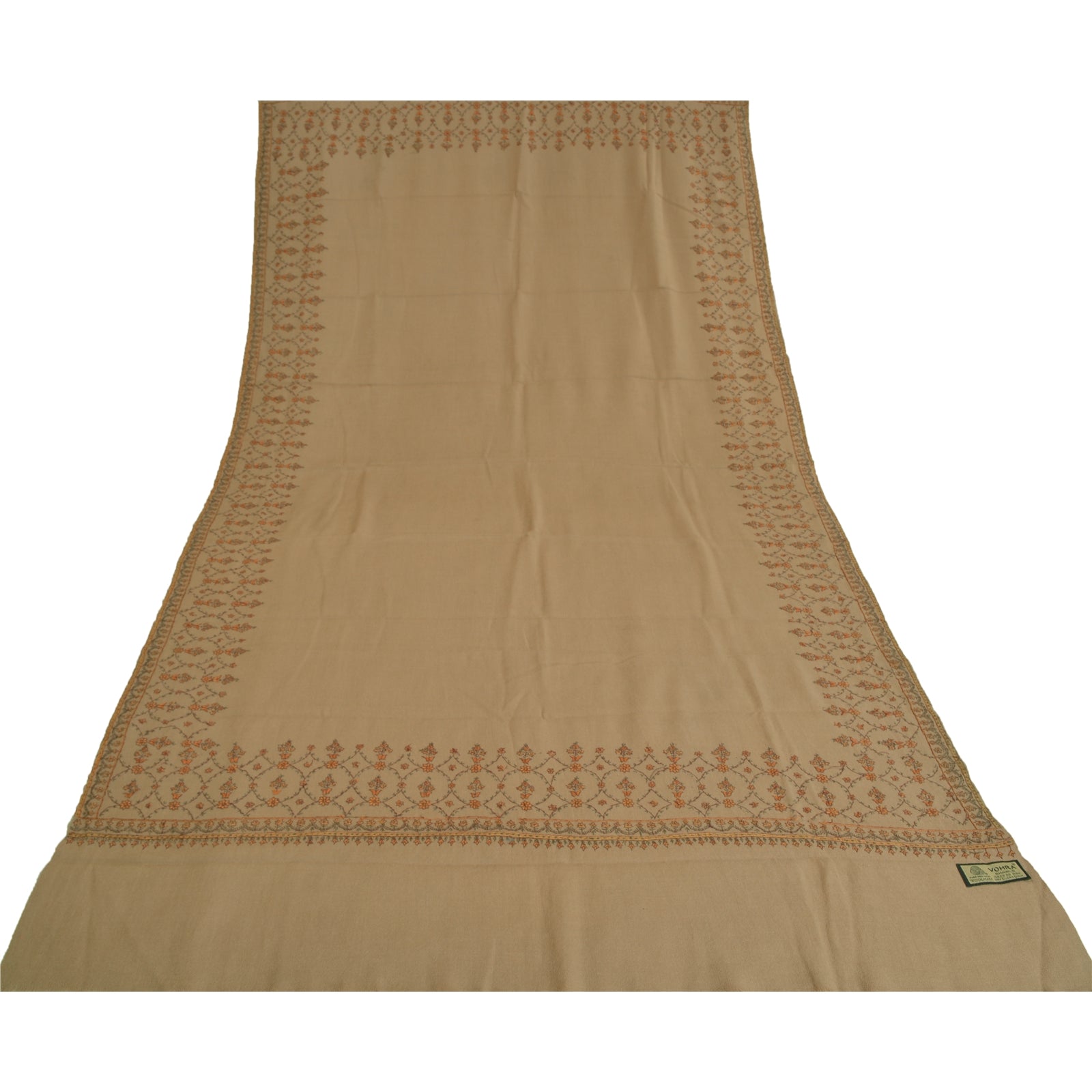 Sanskriti Vintage Long Pure Woollen Brown Shawl Handmade Suzani Scarf Stole