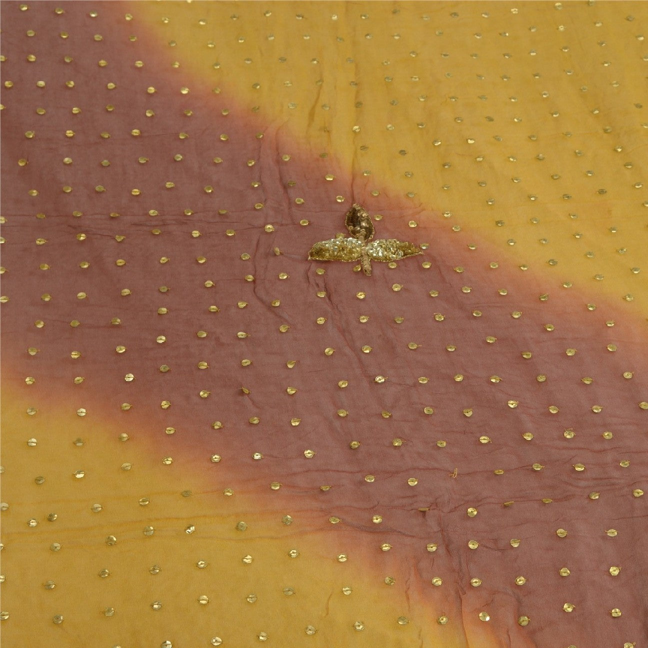 Sanskriti Vintage Long Saffron/Brown Dupatta/Stole Georgette Hand Beaded Brasso