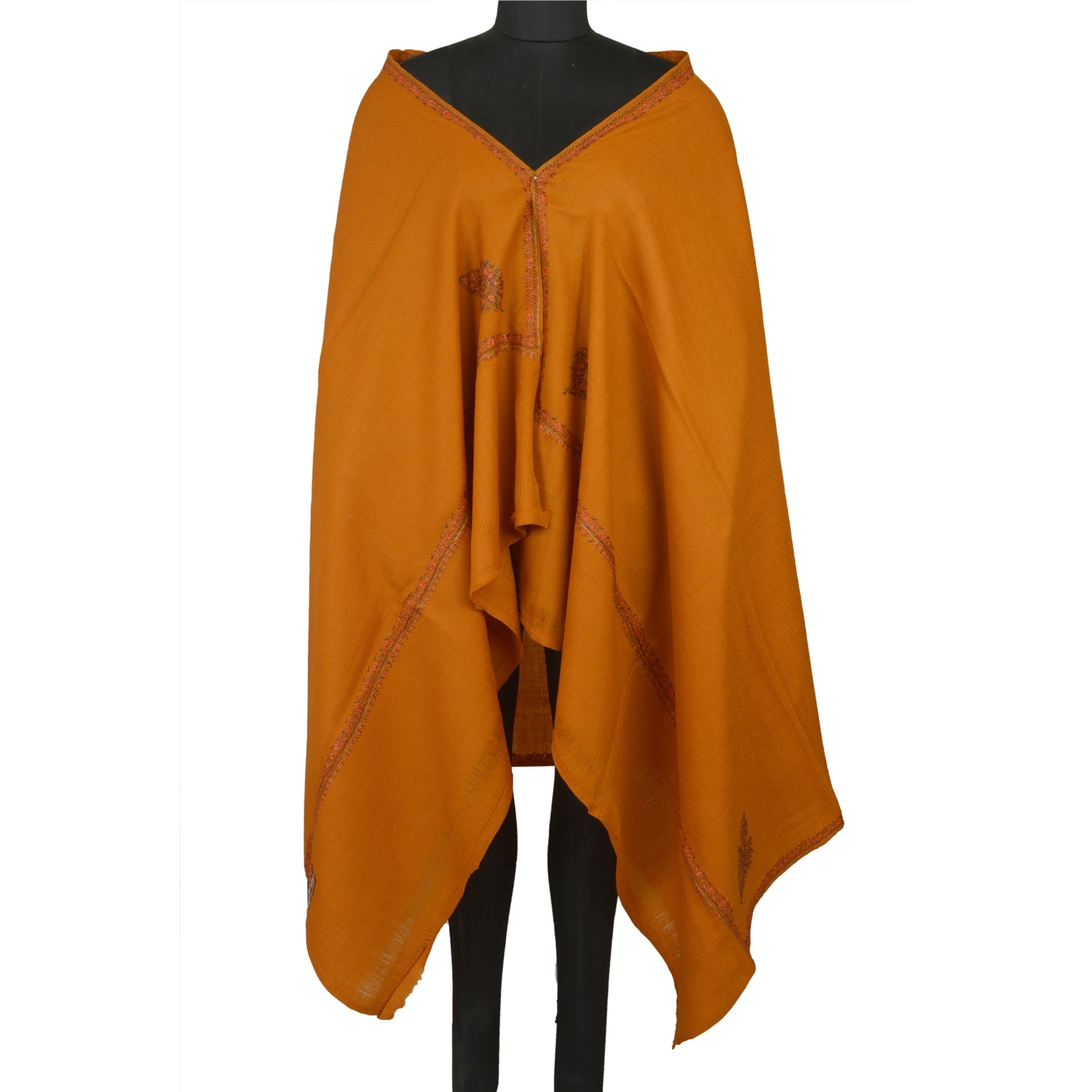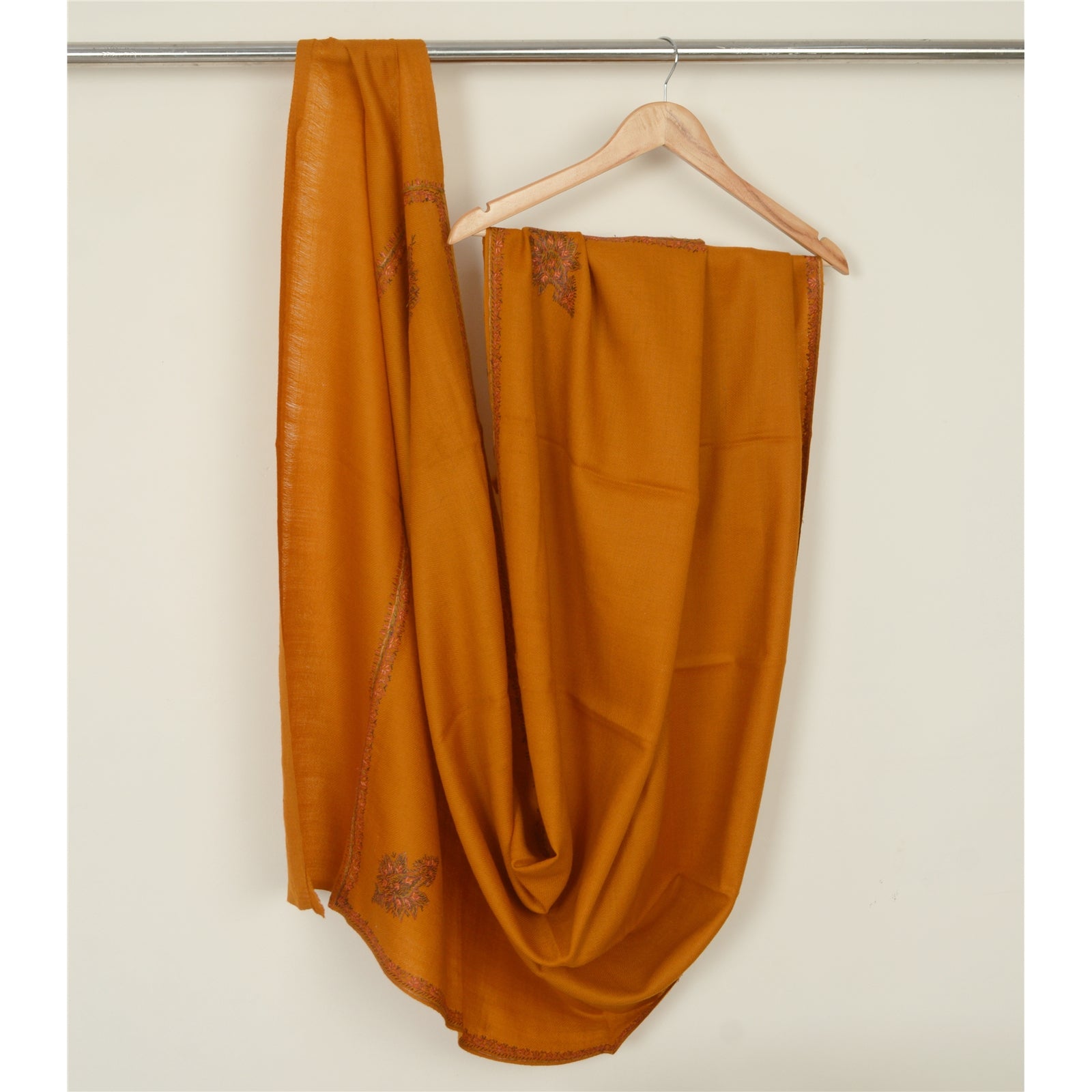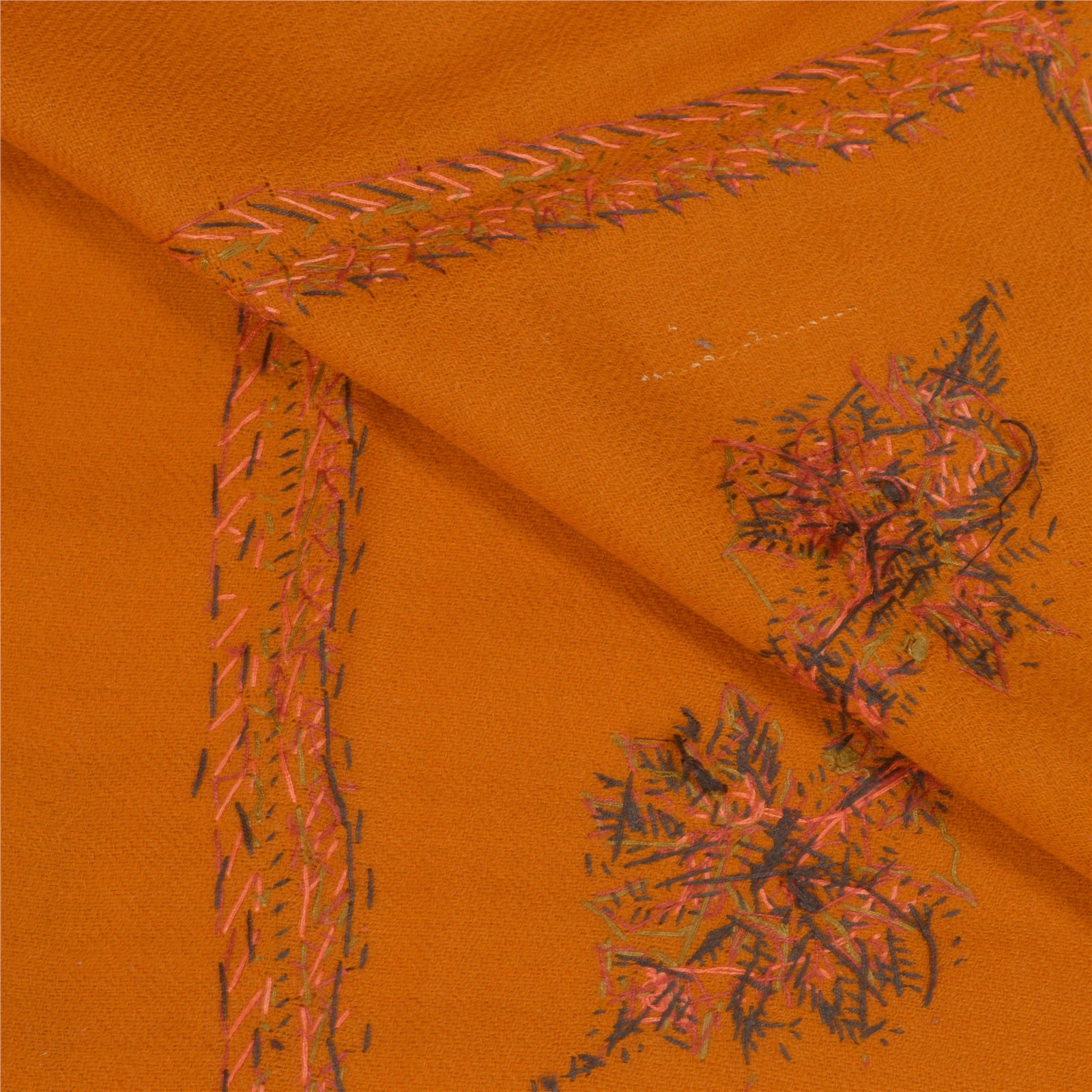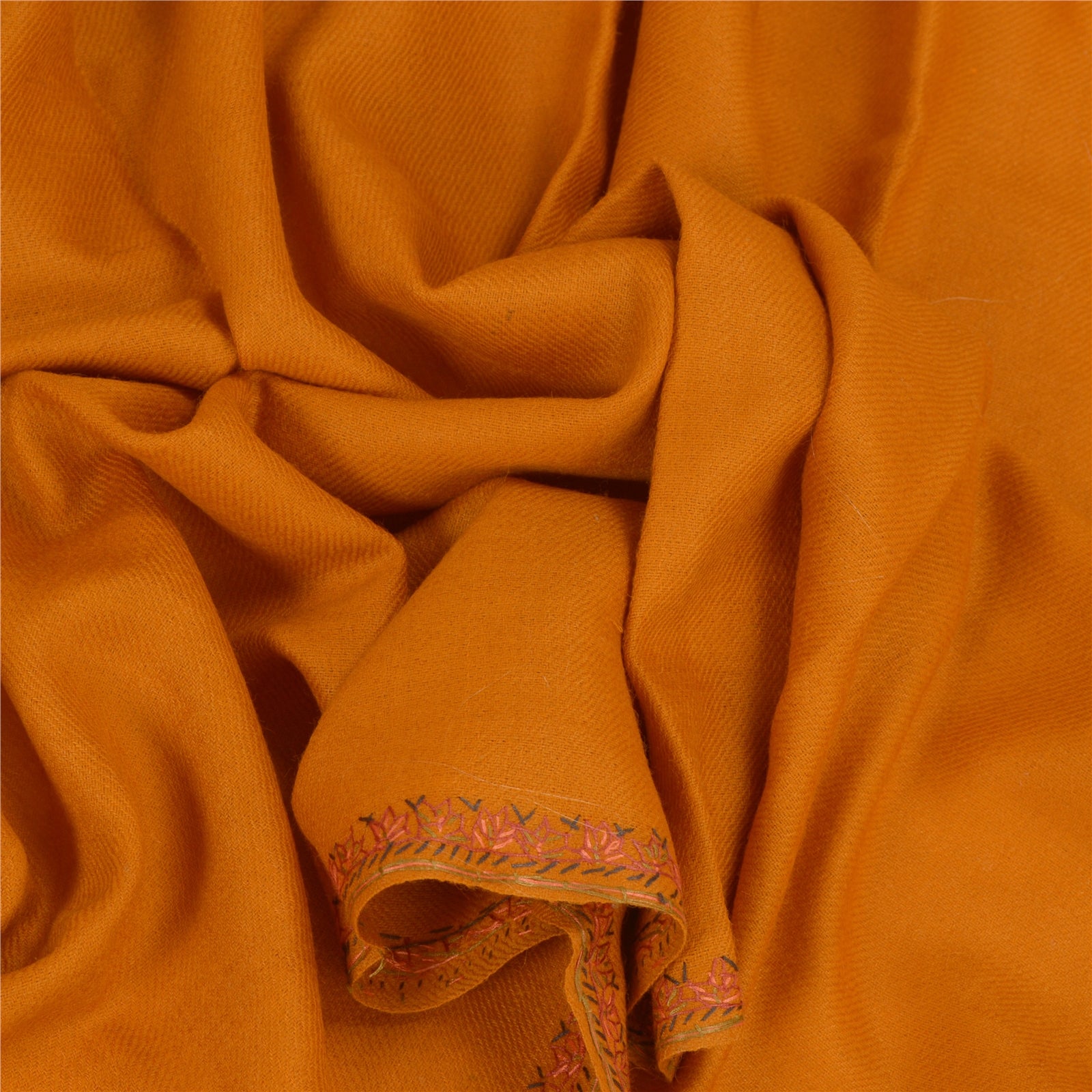 Sanskriti Vintage Long Saffron Pure Woolen Shawl Handmade Suzani Scarf Stole