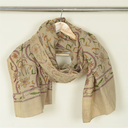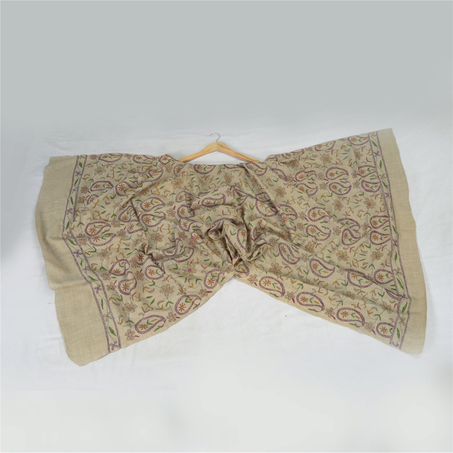 Sanskriti Vintage Long Stole Pure Woolen Shawl Handmade Kantha Work Scarf