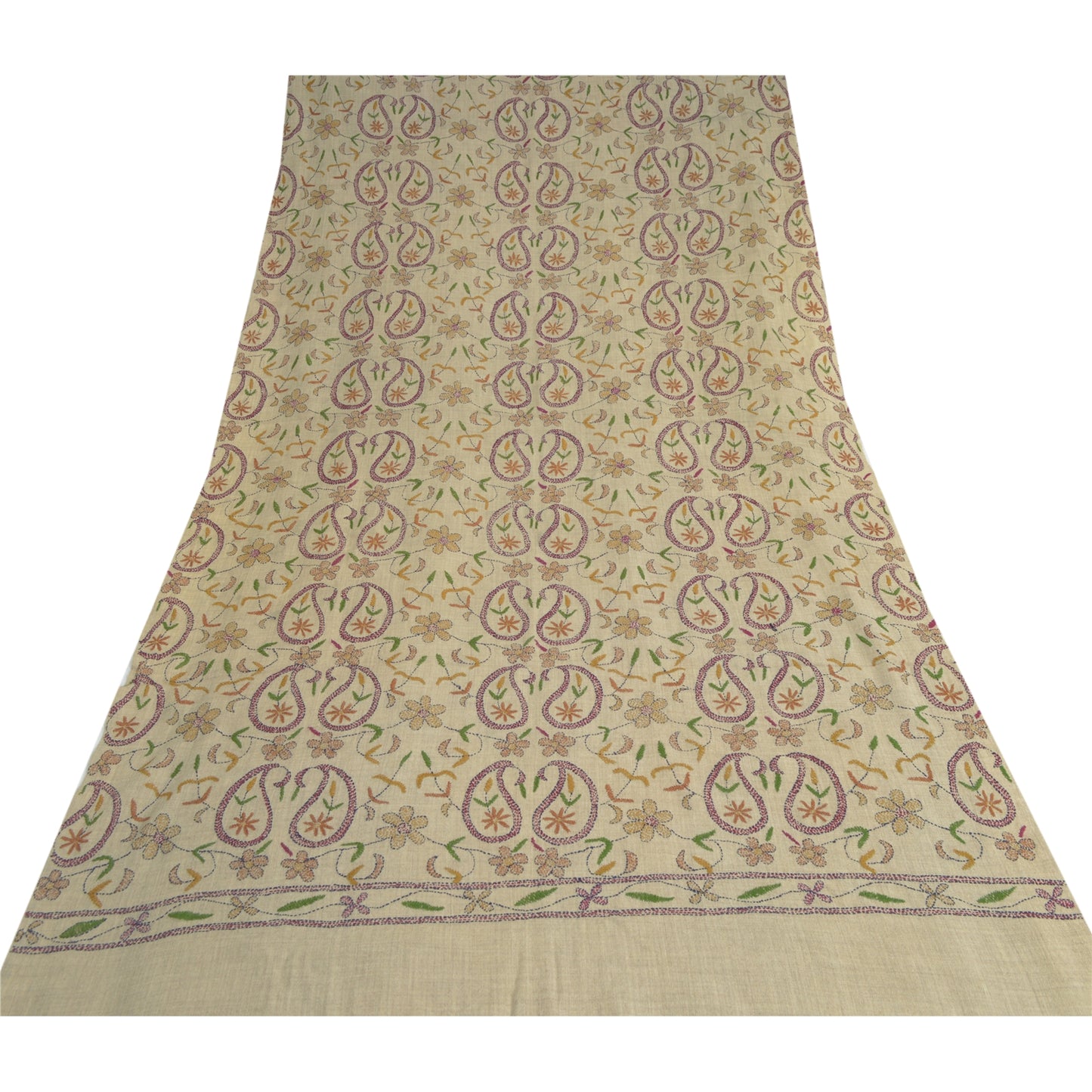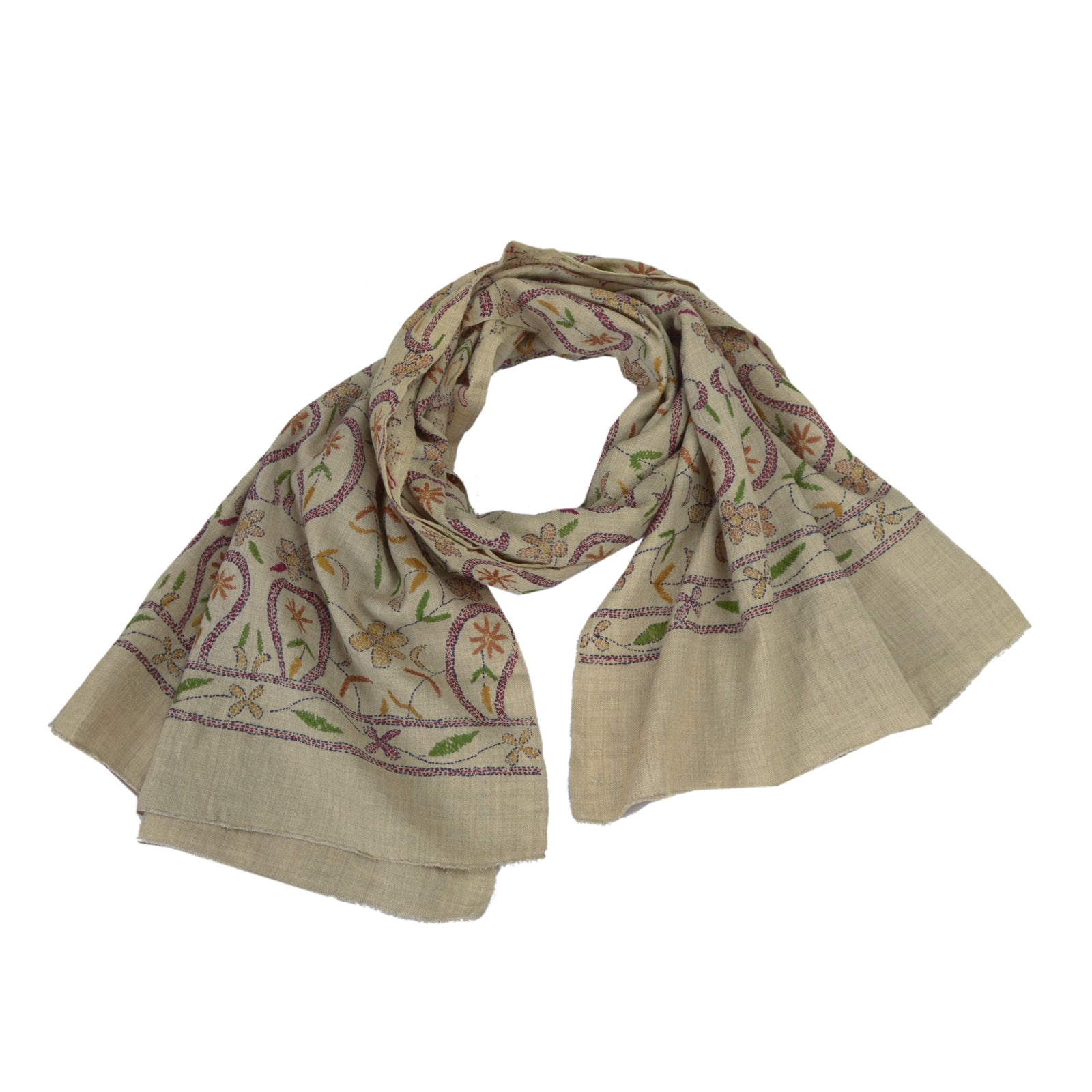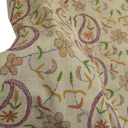 Fabulous hand embroidered pure woolen cream colored kantha shawl/scarf/stole. Cozy and gorgeously soft to touch, this shawl has a beautiful hand embroidered multi color floral design all over. Traditional kantha work is the highlight of this shawl. Wear this versatile piece as a scarf, stole or wrap. International buyers please note: Import duties, taxes, and charges are not included in the item price or postage cost. These charges are the buyer's responsibility. Please check with your country's customs office to determine what these additional costs will be prior to bidding or buying. Buyer will pay custom duty/tax. It is calculated and charged differently by every country. As a seller I do not have any control over it.VAT or sales tax is calculated by the platform at the time of checkout. Customs charge is payable at the time of delivery.