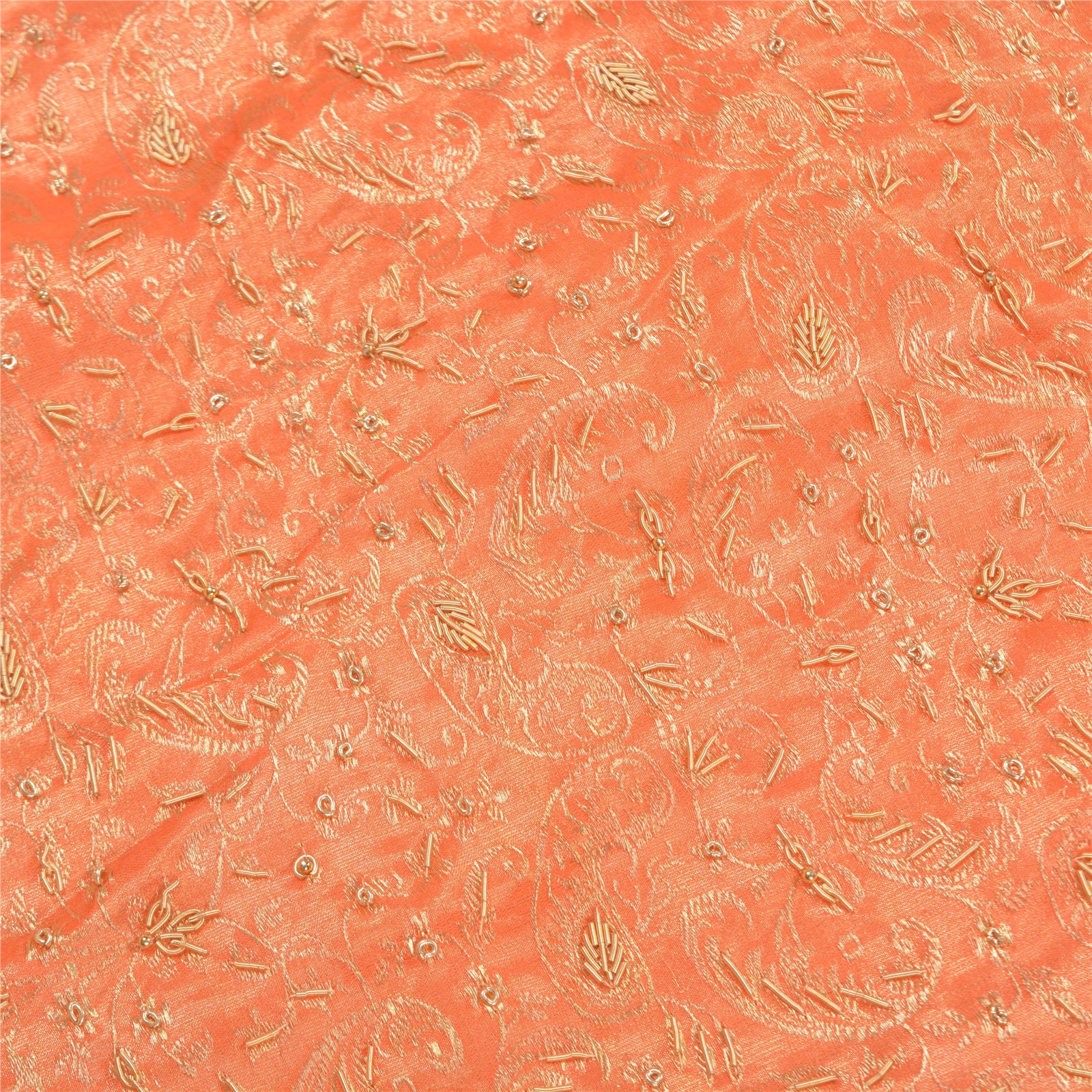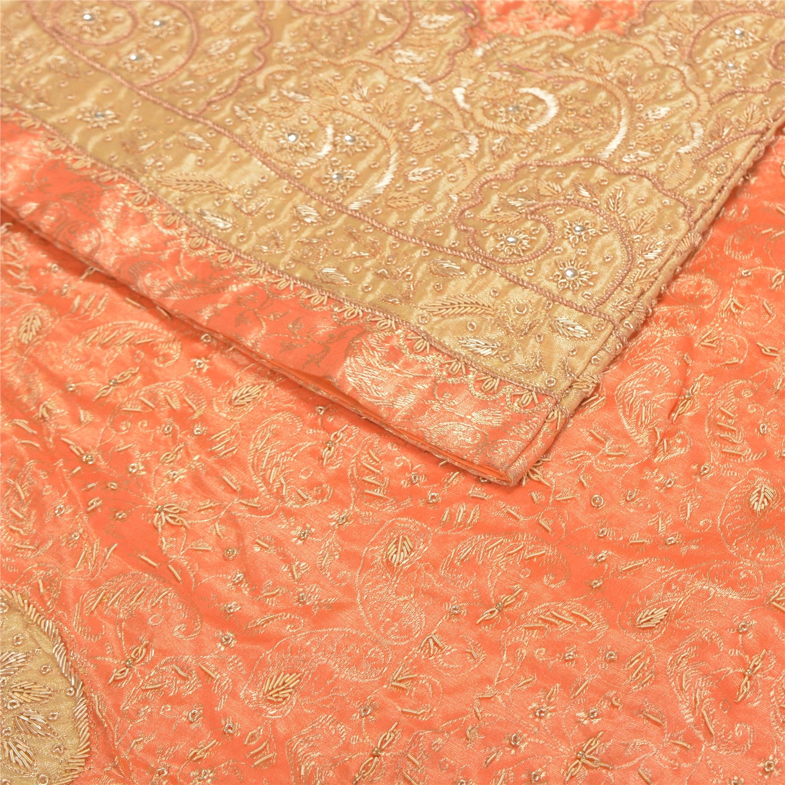 Sanskriti Offers This Vintage Peach Color hand Embroidered Stitched Woven Long Skirt Made With 100% Pure Silk Base Fabric. It is fully covered with zari woven work & zardozi work. Border has embroidered floral design with golden fabric patch work embellished with zari/zardozi work, white kundan stone work. Flaunt this heavy skirt with ethnic tops, blouses or kurtis at parties, weddings and other occasions. It is a Stitched skirt with a length of 41 inch, waist-34, flare of the skirt is 156 inch, hip- 40 inch. Outstanding hand embroidered work skirt with beautiful craftsmanship which I am sure you will truly appreciate. As the item is Vintage, some minor stains and defects are expected.