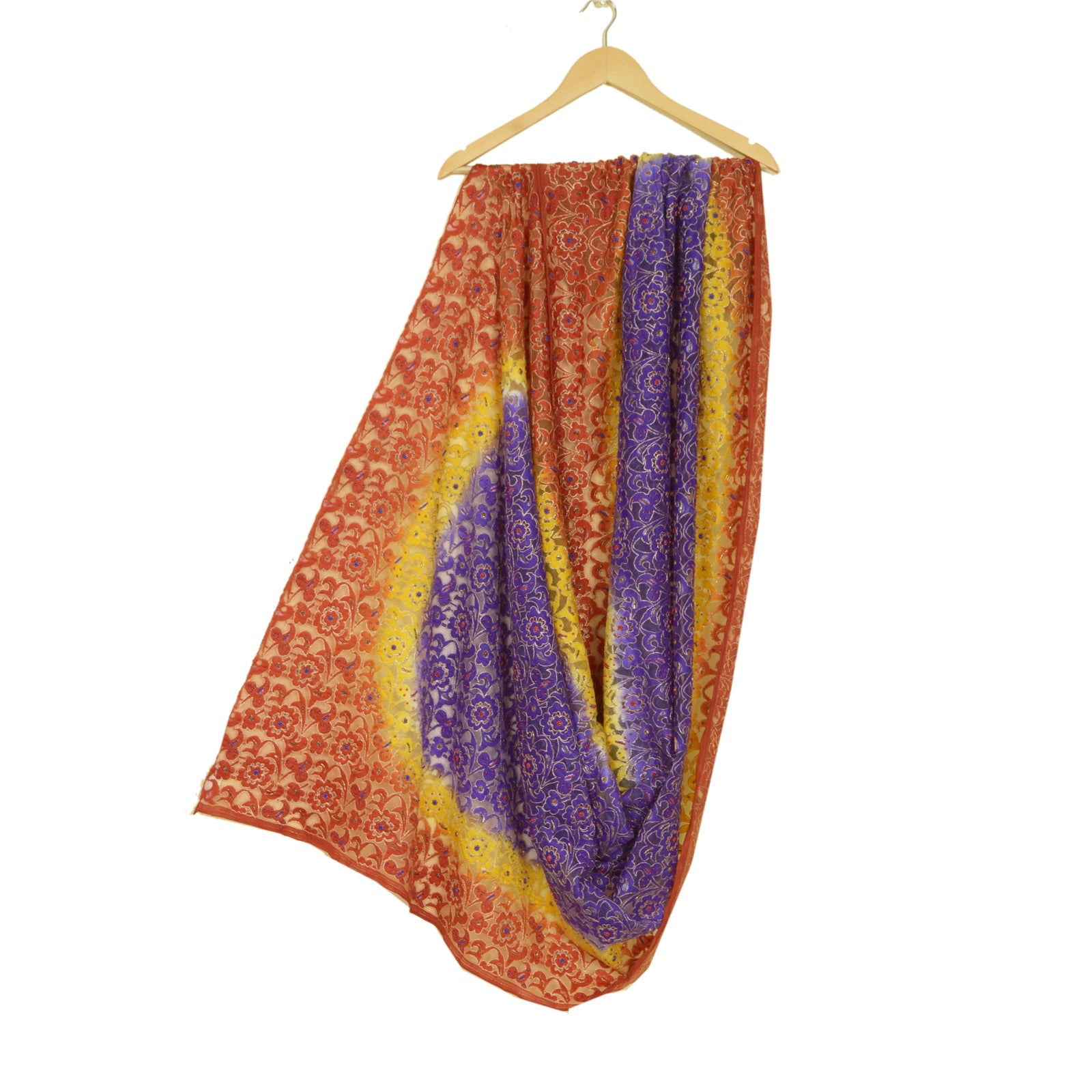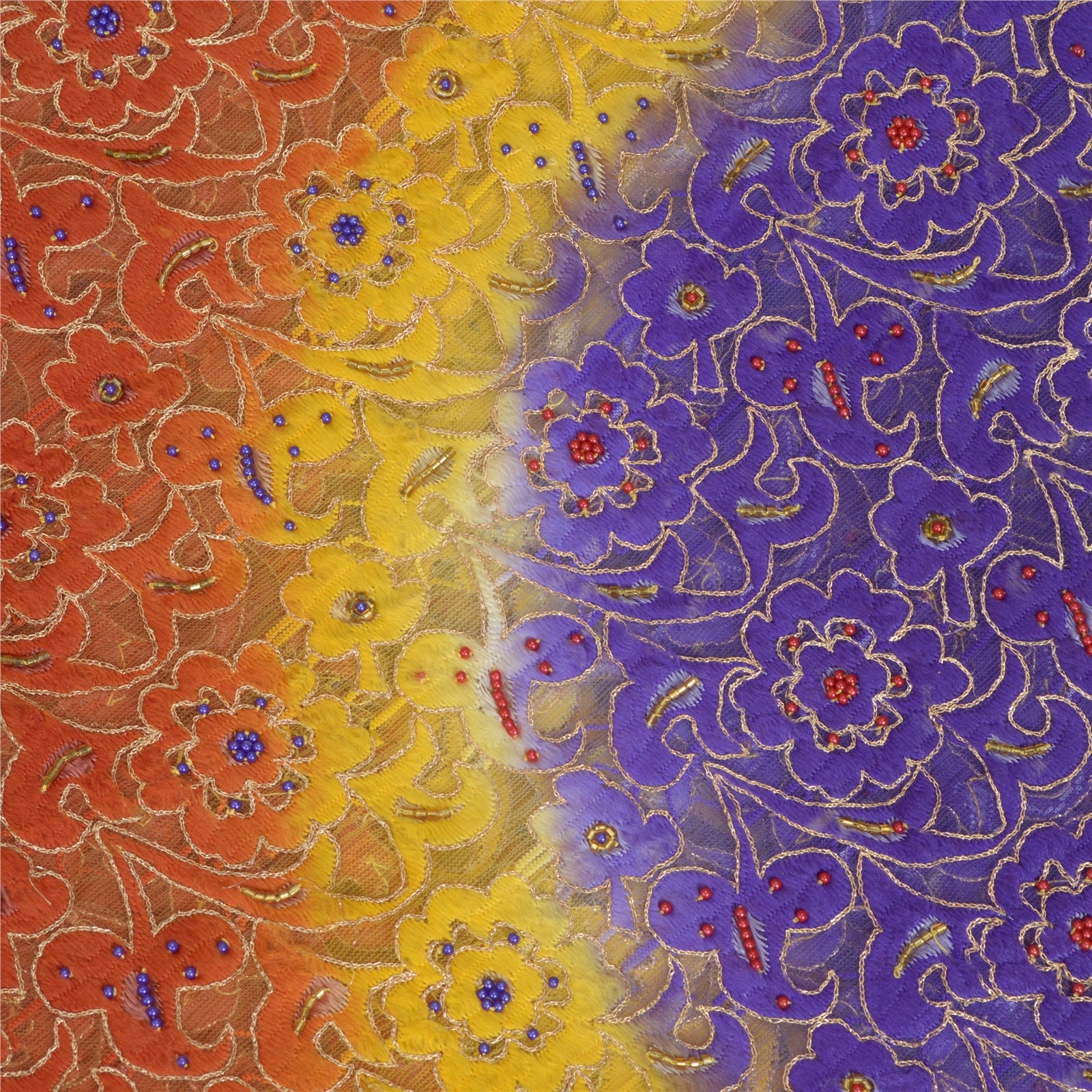 'THE ITEM COLOR OR SHADE MAY BE DARKER OR LIGHTER THAN THE PICTURE.' Beautiful multi colored net mesh hand embroidered woven long scarf/dupatta. Center portion of the dupatta woven floral design with sequins work. Border has multi color woven floral design embroidered golden zari work, yellow glass beads, purple/pearl like beads work are really enhancing beauty of the dupatta/stole. This dupatta/stole can be used for various crafting ideas too. Use it for dress designing, as a throw, as window dressing, upholstery, table linen and much more. Let your creative juices flow. International buyers please note: Import duties, taxes, and charges are not included in the item price or postage cost. These charges are the buyer's responsibility. Please check with your country's customs office to determine what these additional costs will be prior to bidding or buying. Buyer will pay custom duty/tax. It is calculated and charged differently by every country. As a seller I do not have any control over it. VAT or sales tax is calculated by the platform at the time of checkout. Customs charge is payable at the time of delivery.'