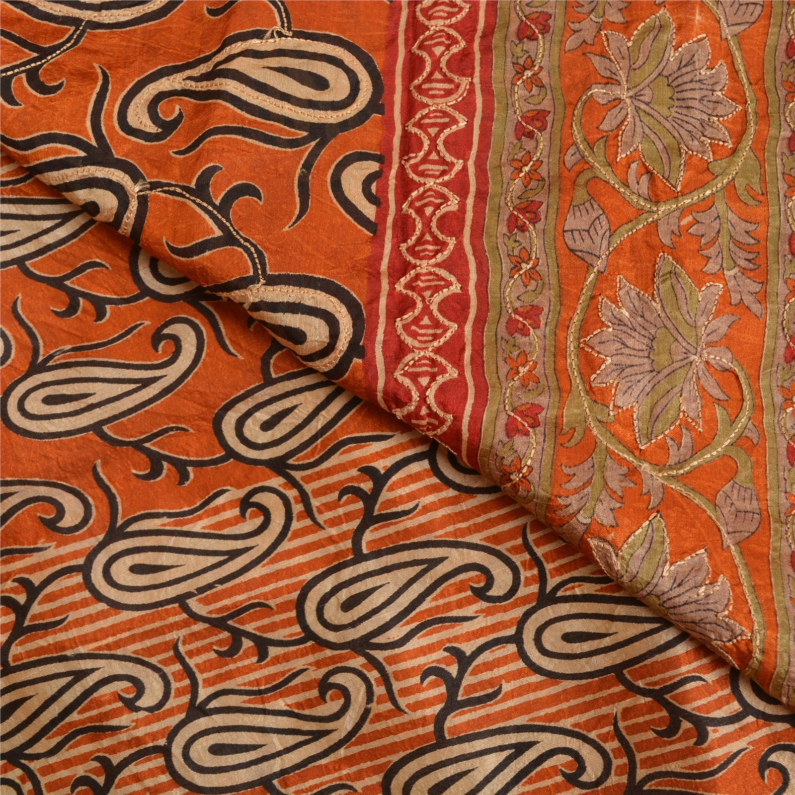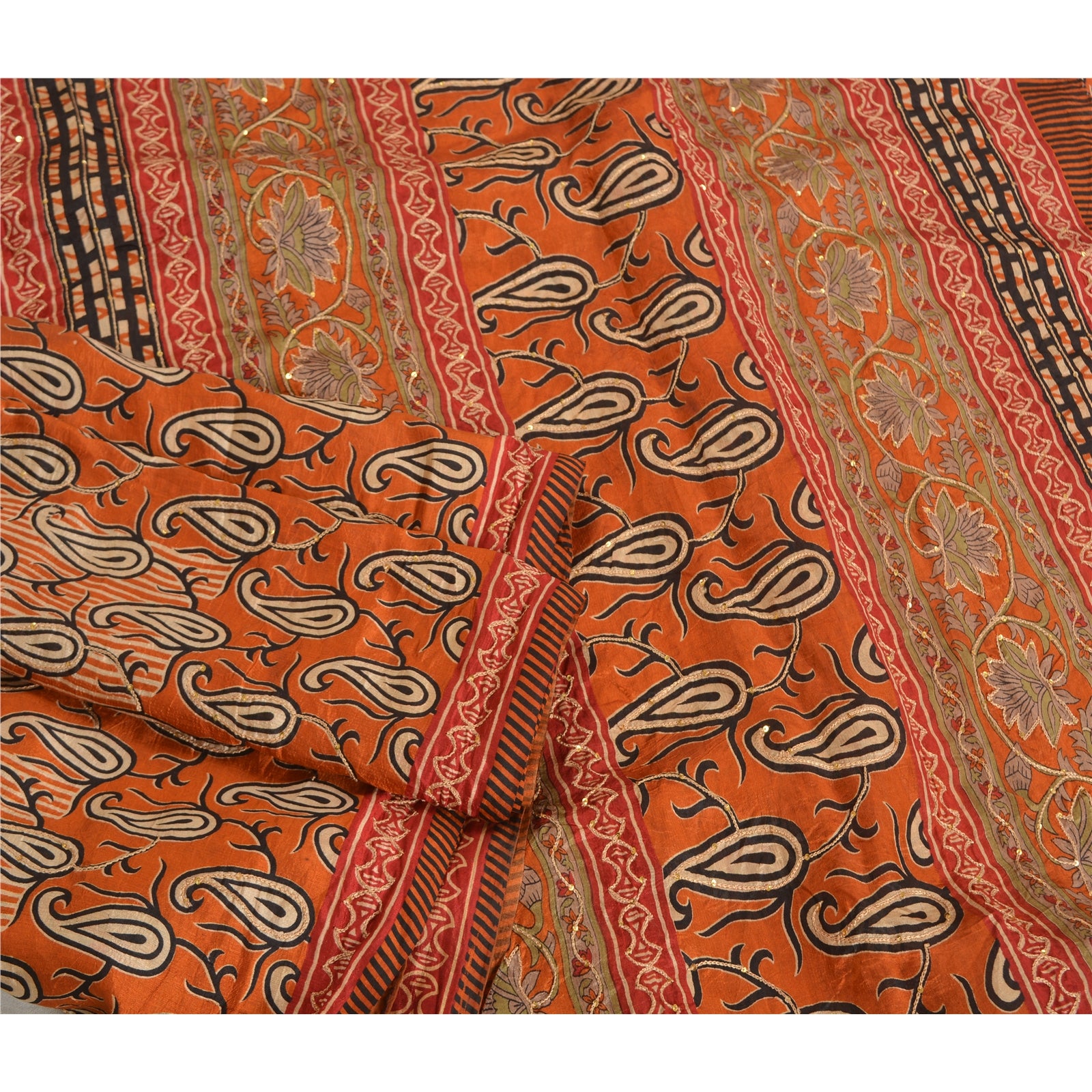 'THE ITEM COLOR OR SHADE MAY BE DARKER OR LIGHTER THAN THE PICTURE.' Beautiful orange colored pure silk hand embroidered printed sari. Pallu & border features printed floral & paisley design embroidered thread work, golden sequins work. The center of the saree has woven floral design. This saree can be used for various crafting ideas too. Use it for dress designing, as a throw, as window dressing, upholstery, table linen and much more. Let your creative juices flow. 'International buyers please note: Import duties, taxes, and charges are not included in the item price or postage cost. These charges are the buyer's responsibility. Please check with your country's customs office to determine what these additional costs will be prior to bidding or buying. Buyer will pay custom duty/tax. It is calculated and charged differently by every country. As a seller I do not have any control over it. VAT or sales tax is calculated by the platform at the time of checkout. Customs charge is payable at the time of delivery.'
