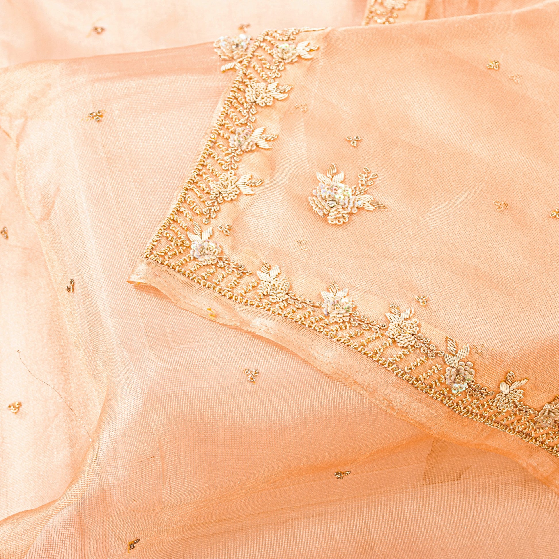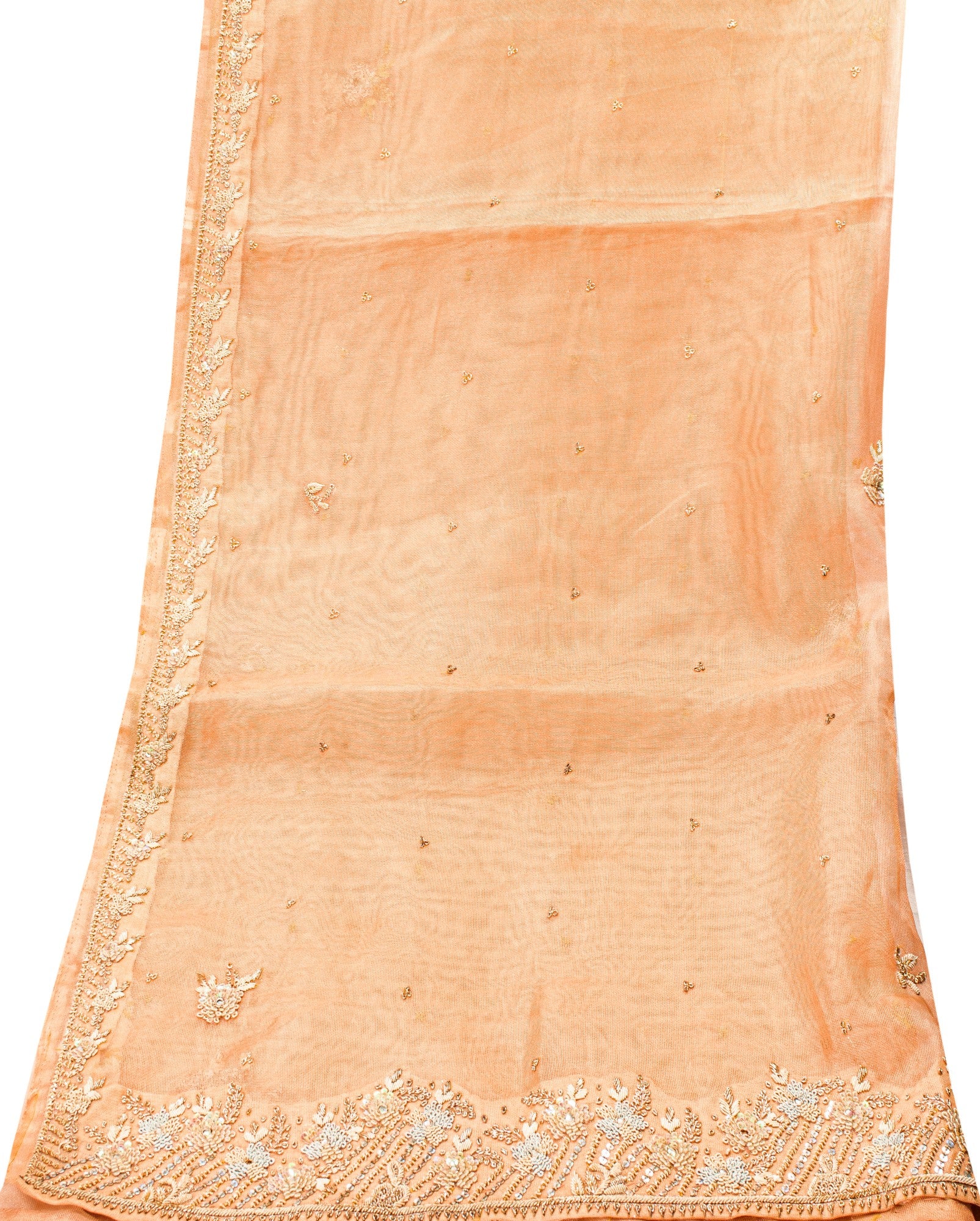 • Brand: • Product Type: Dupatta / Stole / Scarf / Veil • Fabric: Art Silk (Kota Silk) • Color: Peach • Work: Hand Beaded Embroidery With Golden Zardozi, Dabka, Sequins, Kundan Stone Work. • Design: All-Over Floral Embroidery With Decorative Borders • Texture: Lightweight, Sheer, Flowy Drape • Length: Long Dupatta / Stole (Approx. Standard Length) • Condition: Vintage / Pre-Owned • Usage: Neck Scarf, Head Veil, Bridal Styling, Festive Wear, Layering Piece • Occasion: Wedding, Party, Ethnic Wear, Special Occasions • Craft Use: Ideal For Upcycling, Fashion Design, Or Decor Projects • Origin: India The Item Color Or Shade May Be Darker Or Lighter Than The Picture.' International Buyers Please Note: Import Duties, Taxes, And Charges Are Not Included In The Item Price Or Postage Cost. Buyer Will Pay Custom Duty/Tax,Vat, And Any Applicable Charges At The Time Of Delivery. Hd-7873