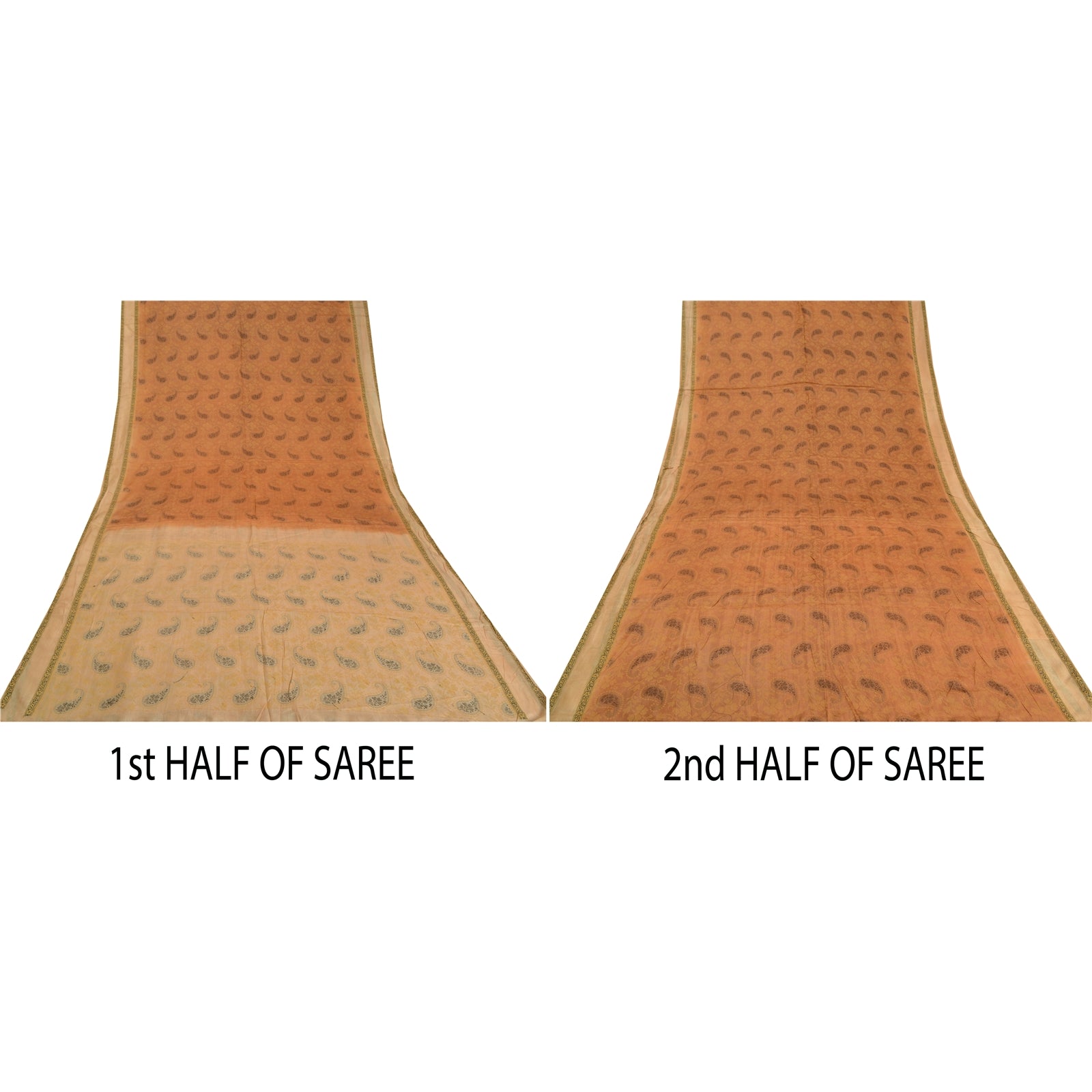 'THE ITEM COLOR OR SHADE MAY BE DARKER OR LIGHTER THAN THE PICTURE.' Beautiful shade of peach colored pure silk woven sari/Sustainable Fabric. Pallu & border has black/cream woven thread work with paisley & floral design . The center of the saree has woven paisley design. This saree can be used for various crafting ideas too. Use it for dress designing, as a throw, as window dressing, upholstery, table linen and much more. Let your creative juices flow. 'International buyers please note: Import duties, taxes, and charges are not included in the item price or postage cost. These charges are the buyer's responsibility. Please check with your country's customs office to determine what these additional costs will be prior to bidding or buying. Buyer will pay custom duty/tax. It is calculated and charged differently by every country. As a seller I do not have any control over it. VAT or sales tax is calculated by the platform at the time of checkout. Customs charge is payable at the time of delivery.'