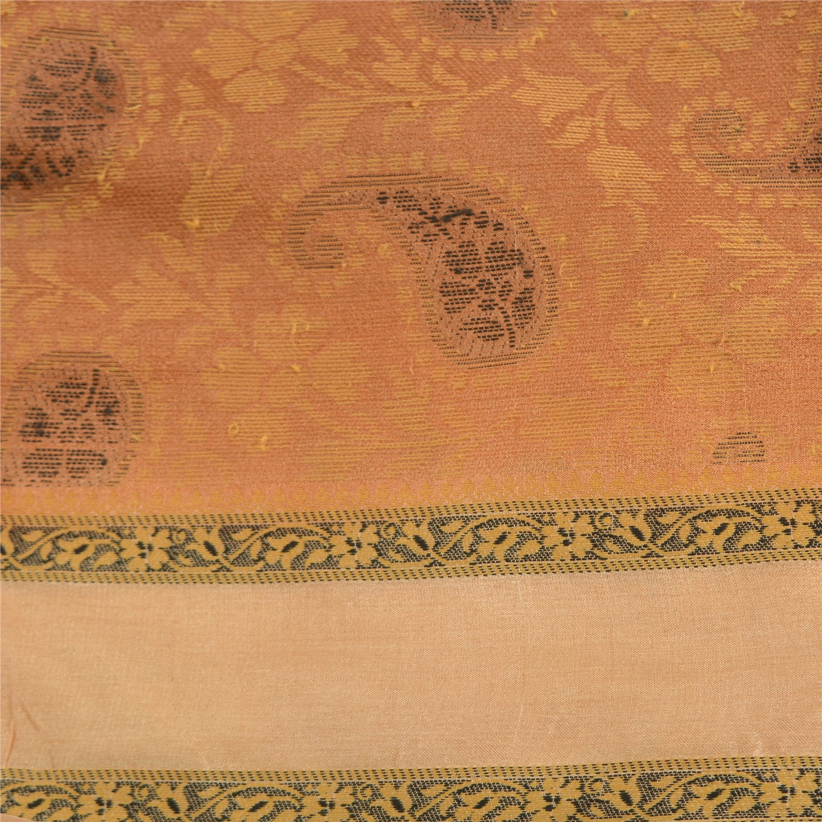 Sanskriti Vintage Peach Indian Sarees 100% Pure Silk Woven Sari Craft Sustainable Fabric
